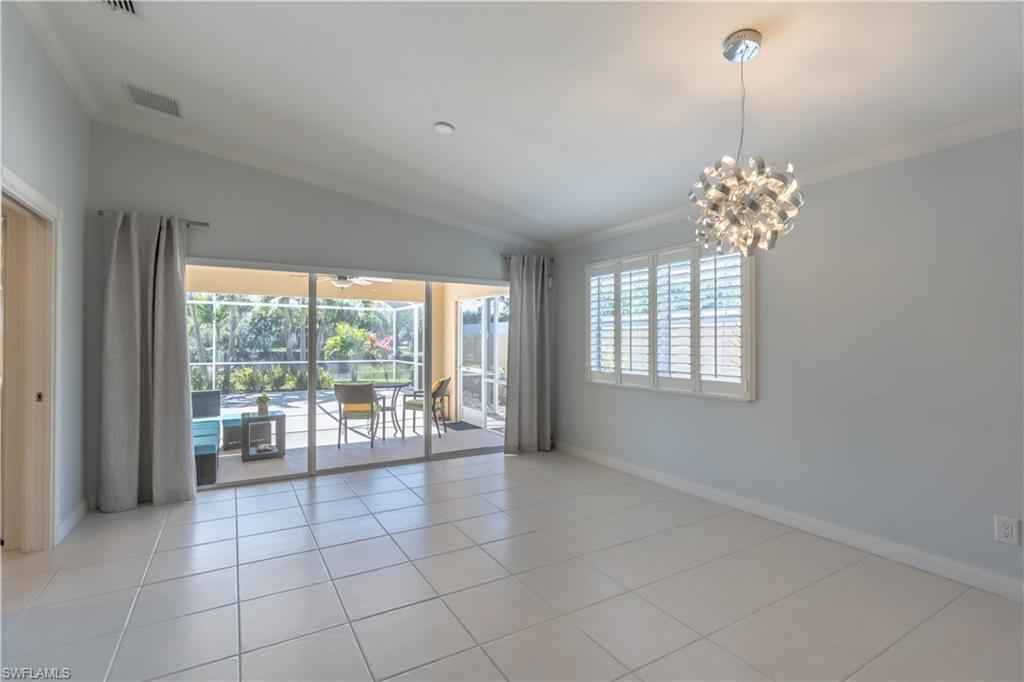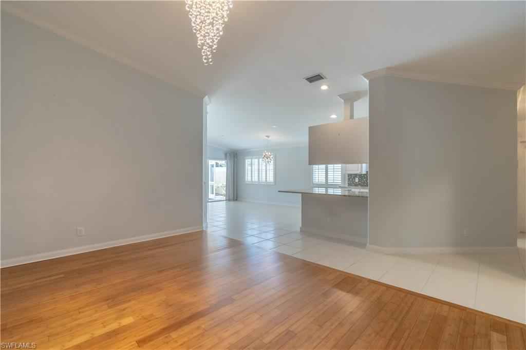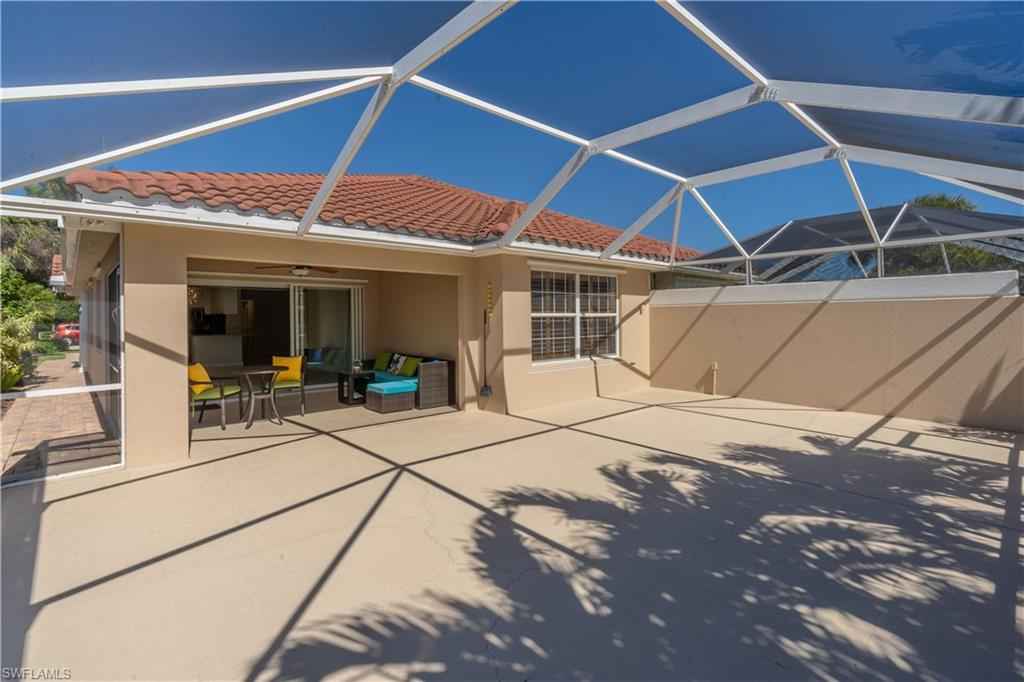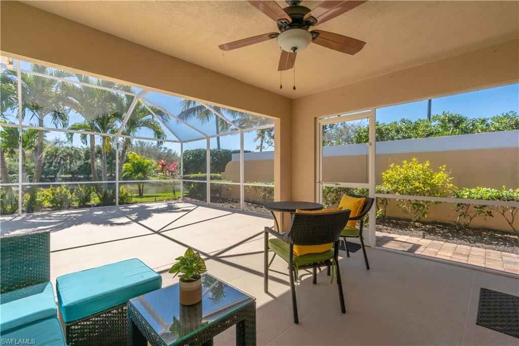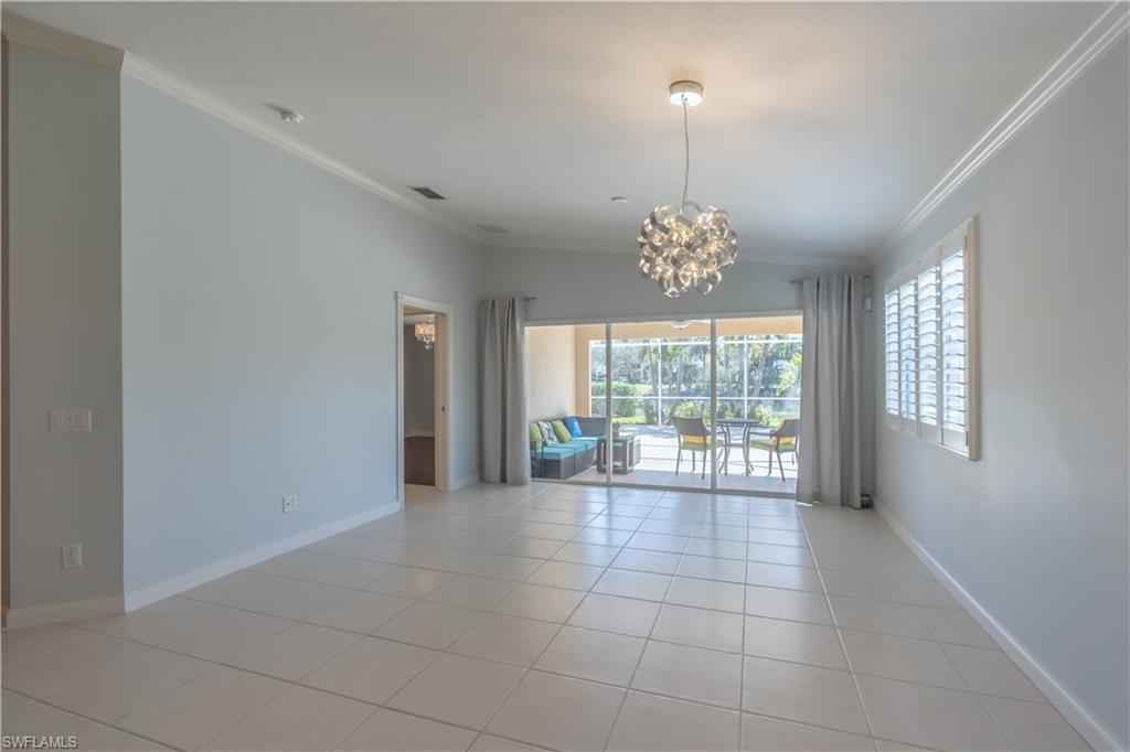 Being offered for annual rental is this unfurnished, two bedrooms/two bath with den attached Capri villa in the gated community of VeronaWalk. This clean, open concept unit with vaulted ceilings offers a split bedroom floorplan. A spacious two car garage leads directly into a full in house laundry room. Flooring is a mix of wood and tile. The centrally located kitchen has stainless appliances, bountiful cabinetry and expansive prep space, granite counters and plantation shutters. A large screened lani, surrounded by more patio space and a great deep water view. Shutters are in place for easy storm prep. VeronaWalk offers a vast assortment of amenities. Pickle ball/tennis courts, a full fitness center, a resort and lap pool and miles of jogging/walking trails can keep you active steps from your home. The community has its own post office, gas station and ice cream shop. A town hall building contains activities rooms and a ballroom for the many events the full time activities director arranges for the residents. All this and just a short driving distance to downtown Naples and Marco Island.