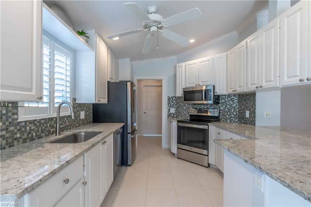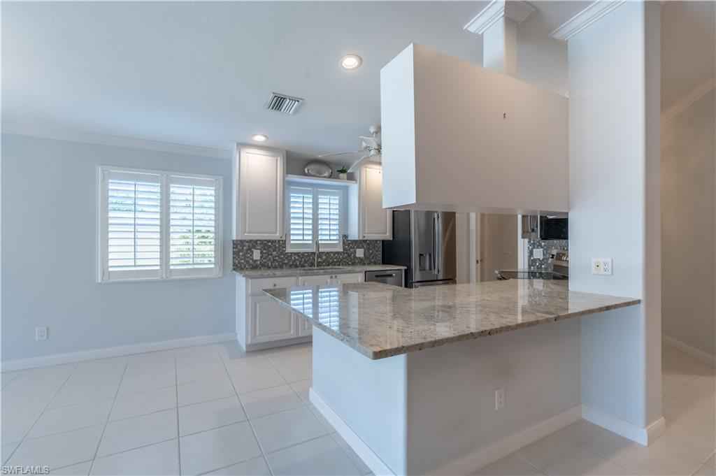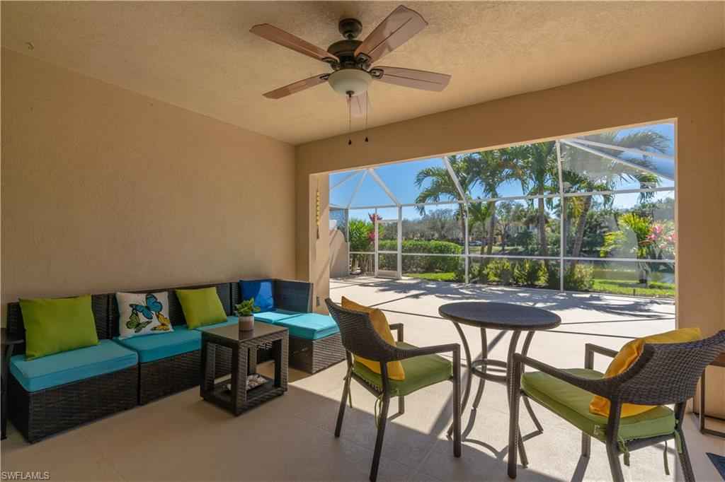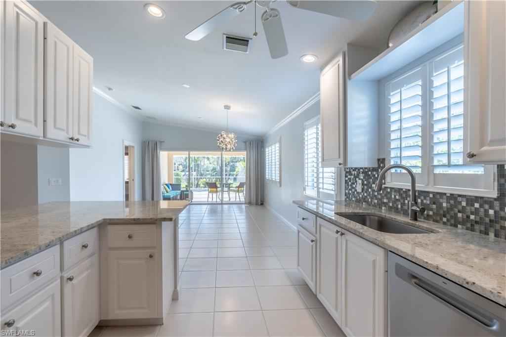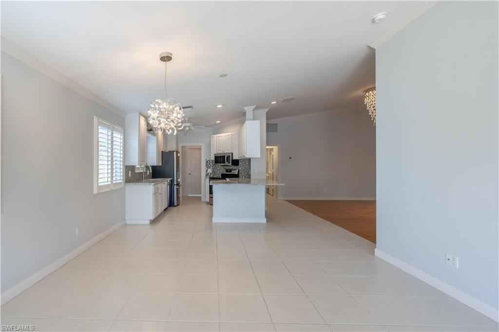 Being offered for annual rental is this unfurnished, two bedrooms/two bath with den attached Capri villa in the gated community of VeronaWalk. This clean, open concept unit with vaulted ceilings offers a split bedroom floorplan. A spacious two car garage leads directly into a full in house laundry room. Flooring is a mix of wood and tile. The centrally located kitchen has stainless appliances, bountiful cabinetry and expansive prep space, granite counters and plantation shutters. A large screened lani, surrounded by more patio space and a great deep water view. Shutters are in place for easy storm prep. VeronaWalk offers a vast assortment of amenities. Pickle ball/tennis courts, a full fitness center, a resort and lap pool and miles of jogging/walking trails can keep you active steps from your home. The community has its own post office, gas station and ice cream shop. A town hall building contains activities rooms and a ballroom for the many events the full time activities director arranges for the residents. All this and just a short driving distance to downtown Naples and Marco Island.
