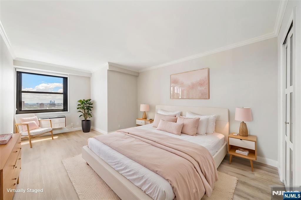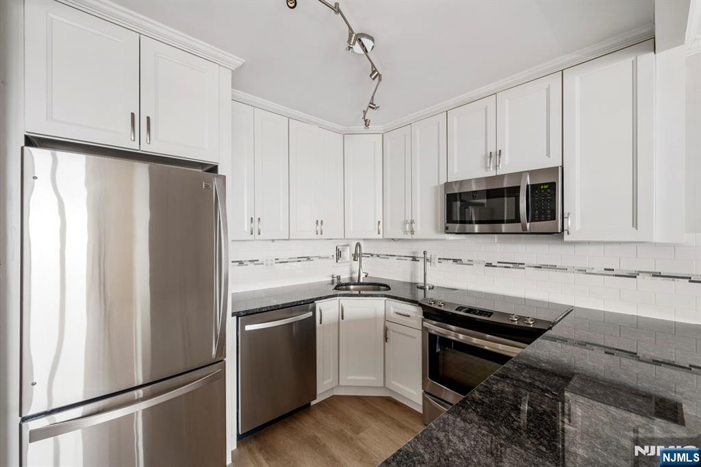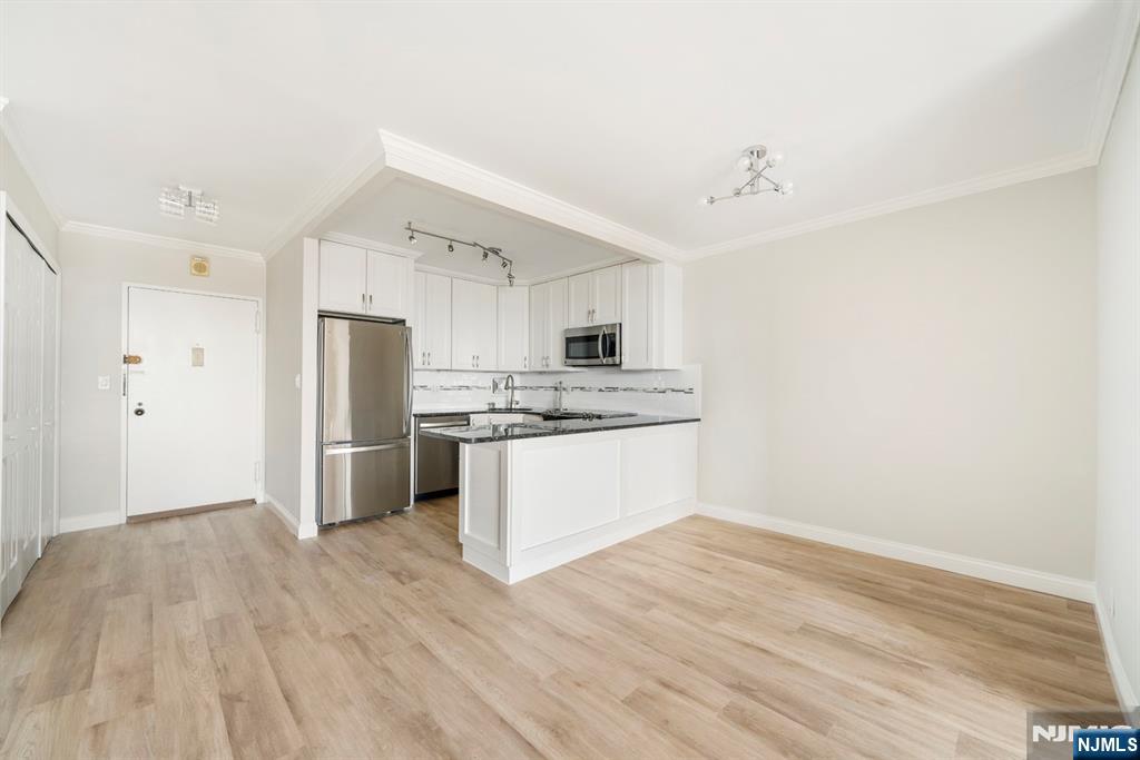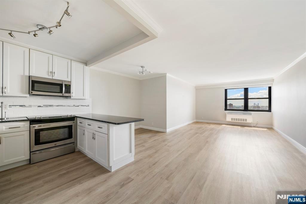 Move-In Ready 1 Bedroom K Line, 28th Floor Parker Imperial. Spectacular, deep southeast NYC and Hudson River views from both the spacious living room and the large bedroom of this beautifully remodeled 1-bedroom apartment on the 28th floor. Approximately 800 sq. ft. of modern living space. This home features an all-new open-concept kitchen with white wood cabinetry, Like-new stainless steel appliances, granite countertops, a peninsula/breakfast bar, updated fixtures, and new flooring throughout. Additional upgrades include new light fixtures, new doors, and a beautifully renovated bathroom. A must see! The large bedroom offers spectacular NYC views and a walk-in closet, plus there are multiple closets throughout the unit for excellent storage. Included in Rent: 1 assigned garage parking space Hot & cold water Pool & Fitness Center (Note: Pool is currently under renovation). The Parker Imperial is a full-service, 24-hour doorman luxury building with on-site management, a 24-hour garage attendant, fitness center with his/hers saunas and showers, outdoor pool with sun deck, a laundry room on every floor w 2 washers/dryers, a community room, 4 elevators, porters, and a full-time superintendent. (The lobby is currently under renovation). Enjoy free tennis, pickleball, and numerous recreational activities in the adjacent 167-acre Park w its lake and jogging/walking paths. Trans to NYC, Hoboken, and Jersey City is right at the doorstep.