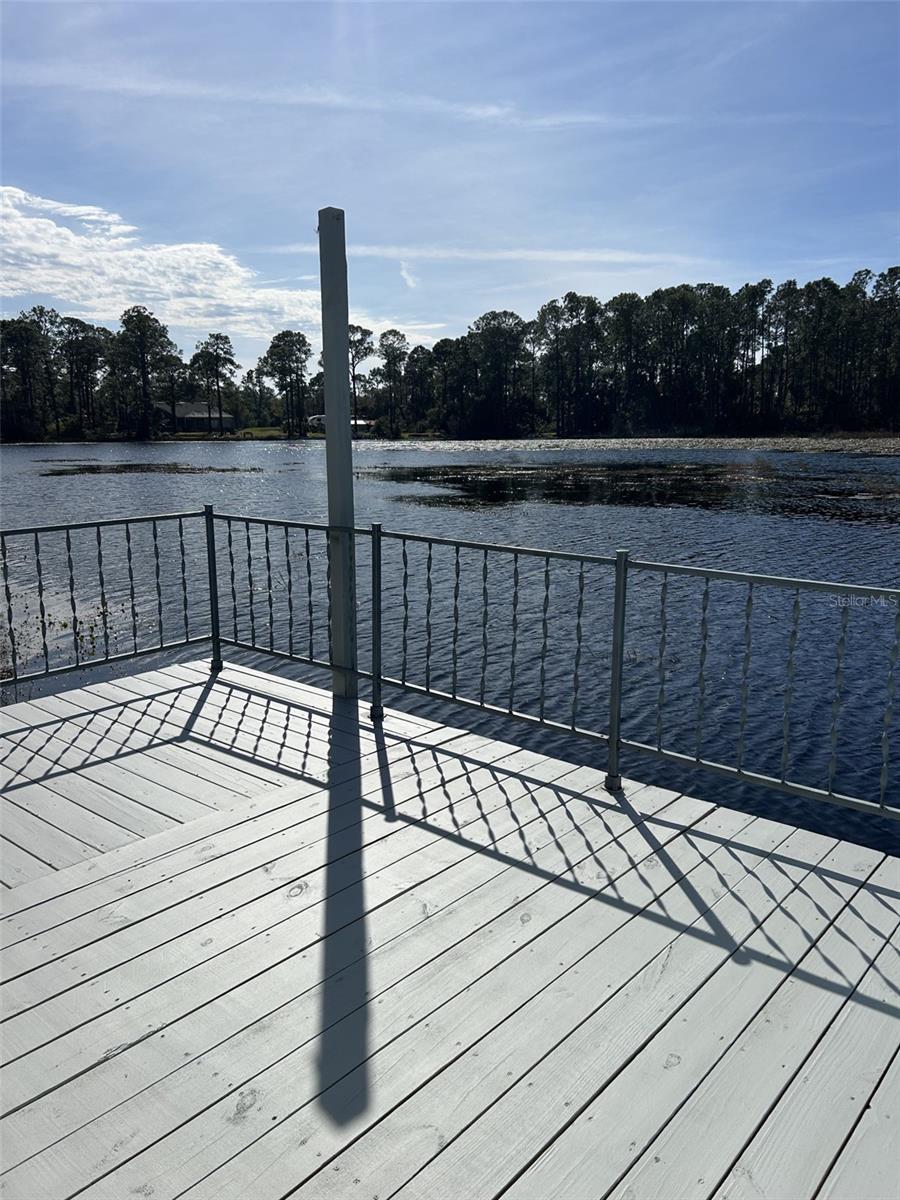 Welcome to Kove Estates a 55+ gated community located between Orlando and New Smyrna Beach. This home has 2 bedrooms and one bathroom. It is located on Little Lake for beautiful sunsets and serenity. The home has been beautifully renovated with new LVP flooring, decking, new roof and paint are a few of the improvements. The lot assessments are very low at $228 a month. Included in your assessments are trash, sewer and water. Kove Estates boasts 2 pools (one heated), 2 club houses, pickleball courts and free golf on the community's golf course.