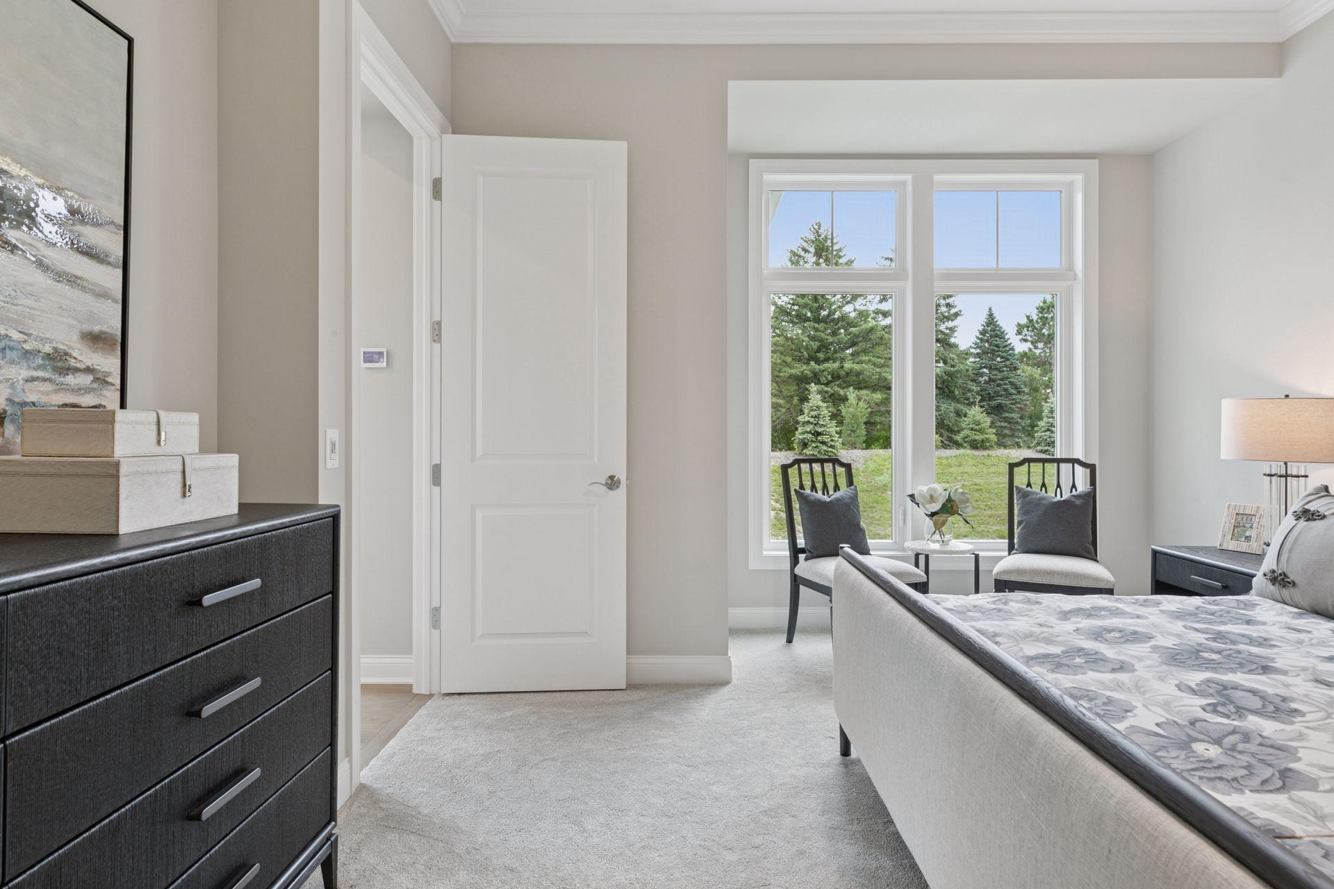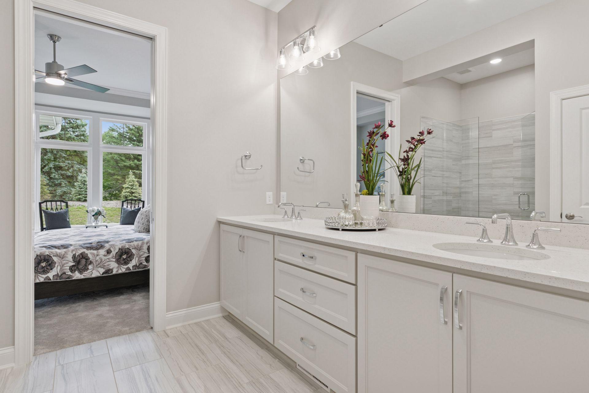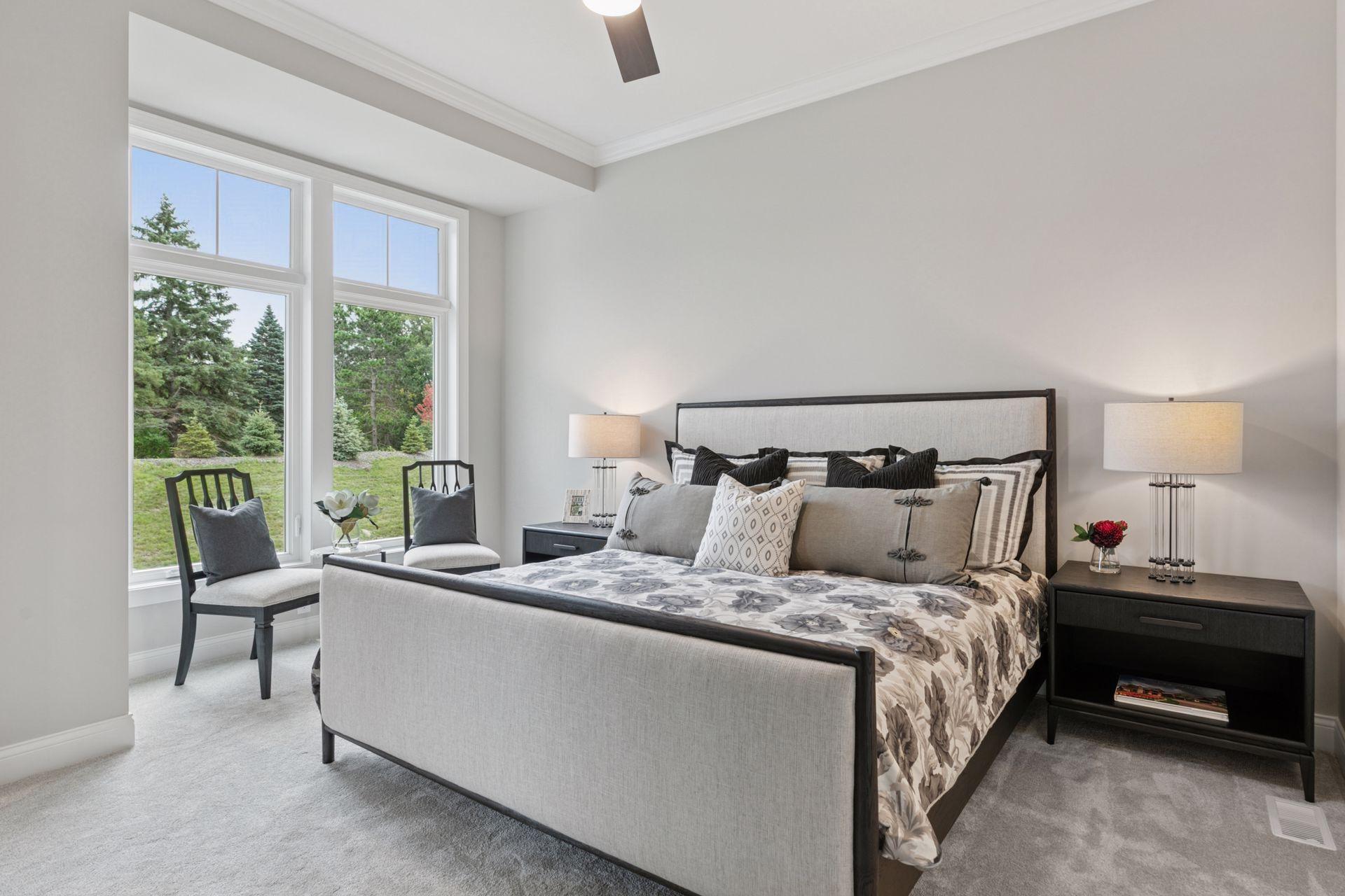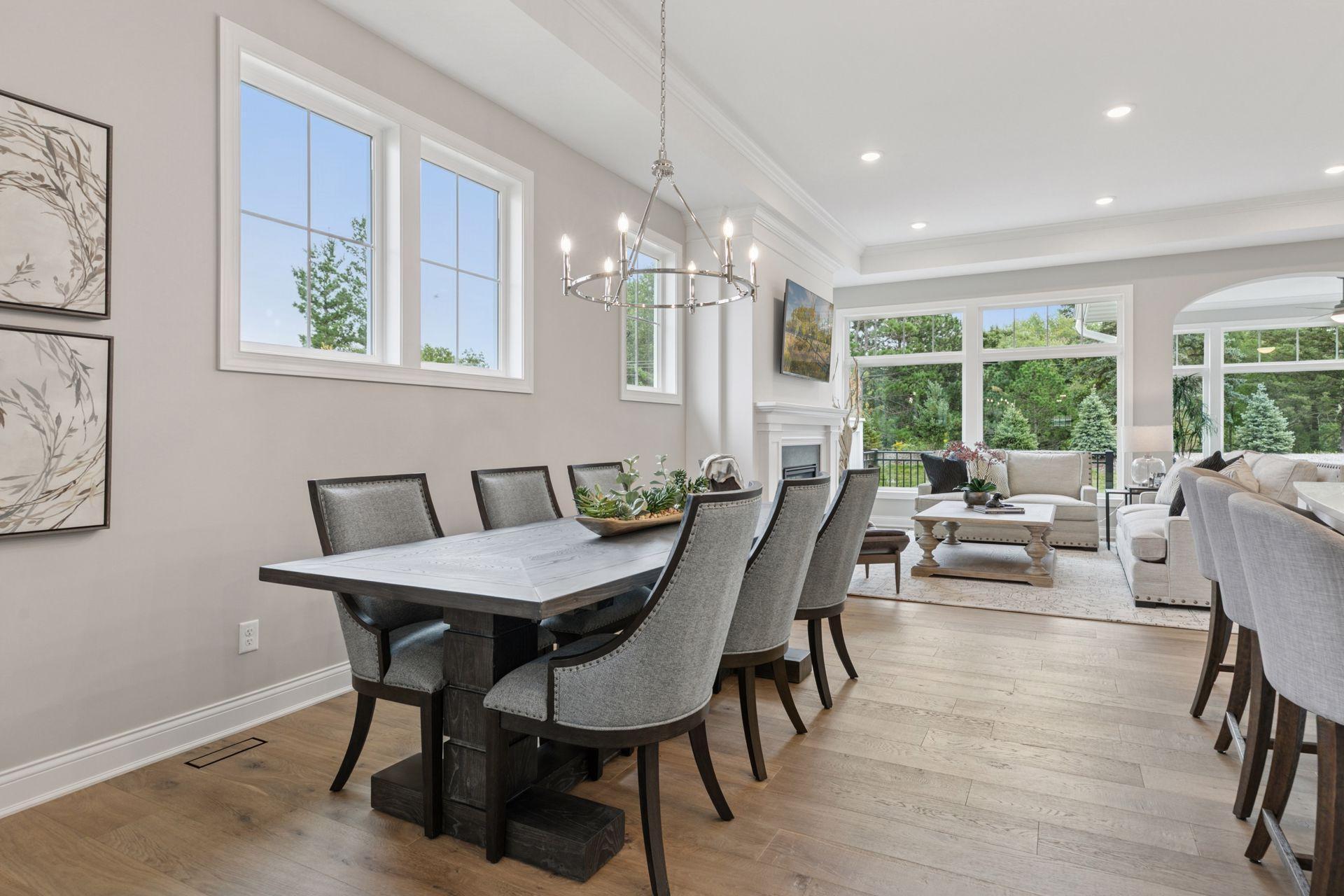 This newly built Charles Cudd Co. home offers a refined, low-maintenance lifestyle with an emphasis on thoughtful design, quality craftsmanship, and everyday ease. The open-concept main level is both spacious and functional, allowing for comfortable one-level living while still offering the flexibility to accommodate guests, with the lower level providing additional space when needed. Signature architectural details, including arched openings, add character and distinction throughout. The kitchen is well-appointed with quartz surfaces, abundant cabinetry, a walk-in pantry, and a built-in buffet with beverage refrigeratorenhancing both storage and entertaining. A dedicated main-level office with built-in desk provides an ideal space for organization or work-from-home needs. The owners suite serves as a private retreat with a spa-inspired bath featuring a walk-in shower with bench, along with an expansive custom closet that connects directly to the laundry. A sunroom and adjoining deck provide a peaceful extension of the home, offering privacy and a comfortable place to unwind. The walkout lower level expands the home with a spacious family room and flexible areas ideal for guests, hobbies, or a home office, along with direct access to the patio. Enjoy true lock-and-leave living with association-maintained lawn care, snow removal, and exterior roof and siding. Set within the North Oaks community with access to trails, parks, and natural surroundings. Additional homesites available.