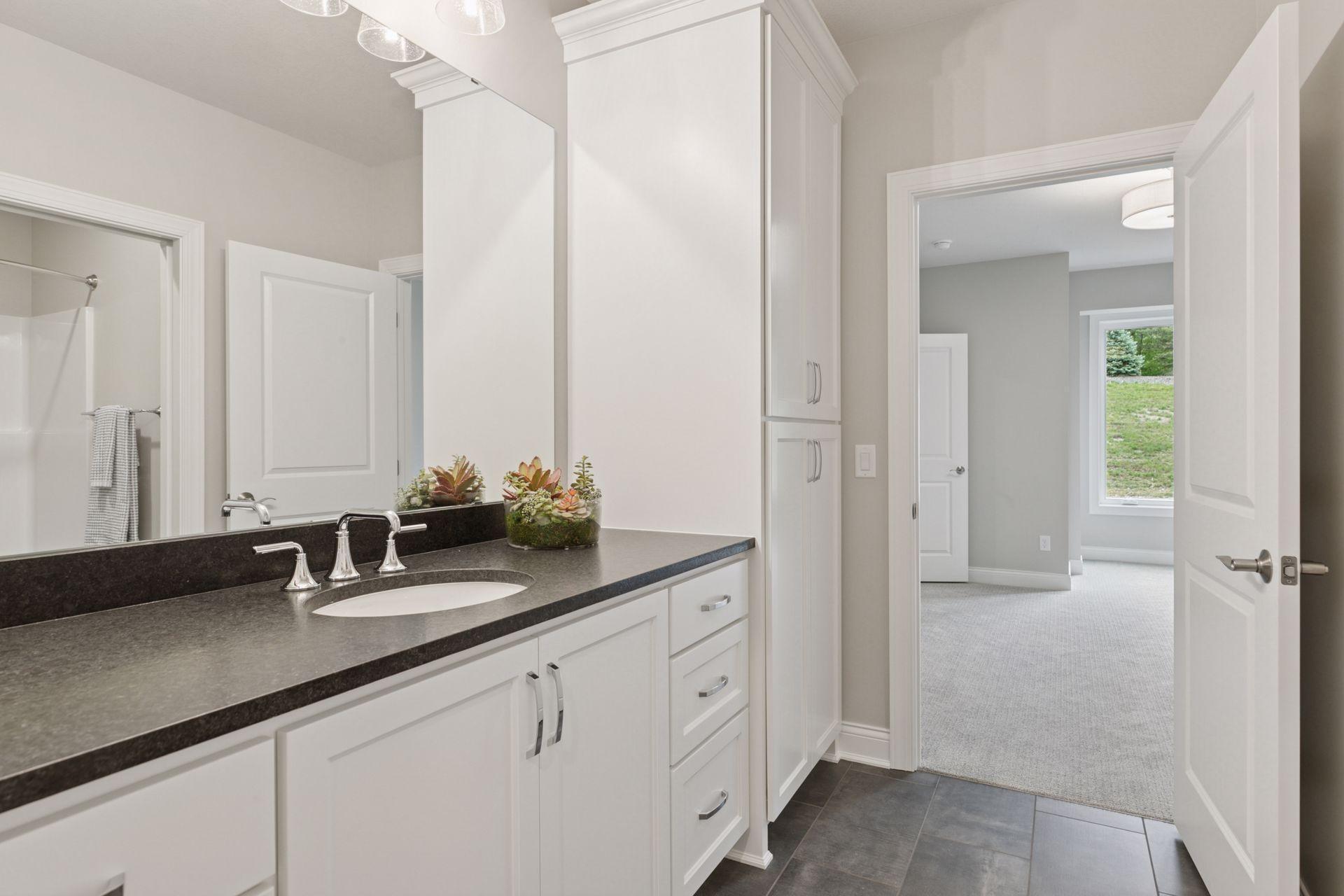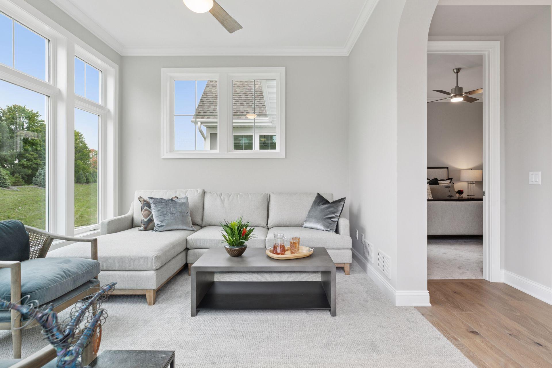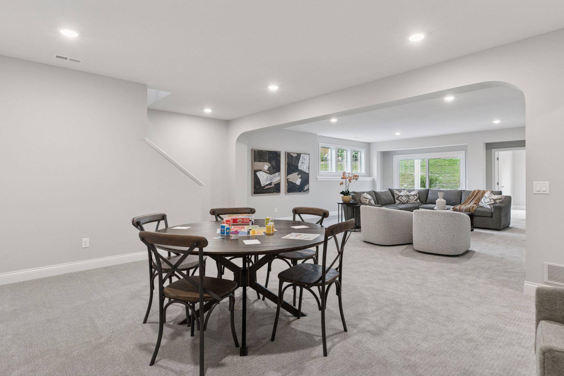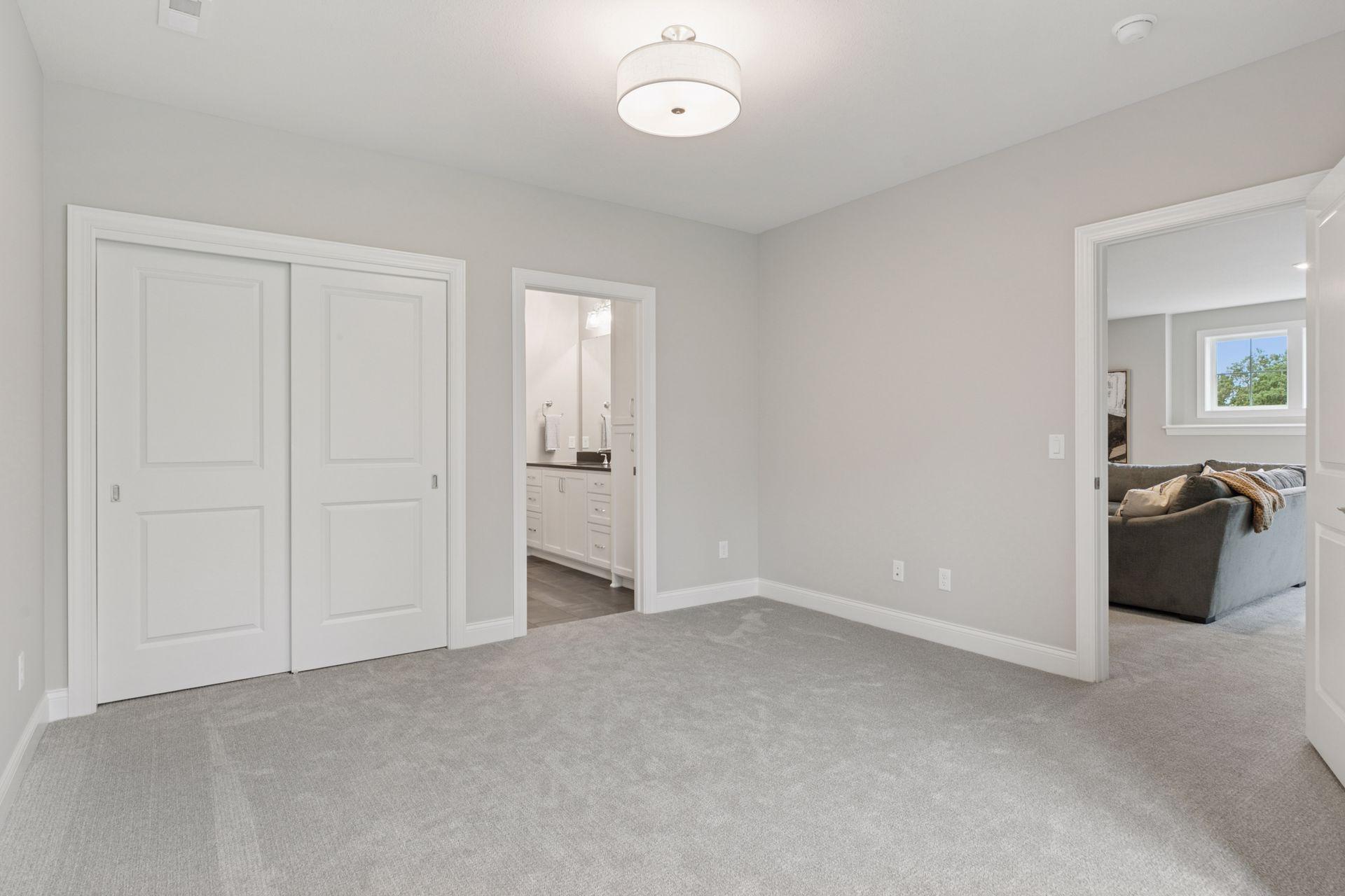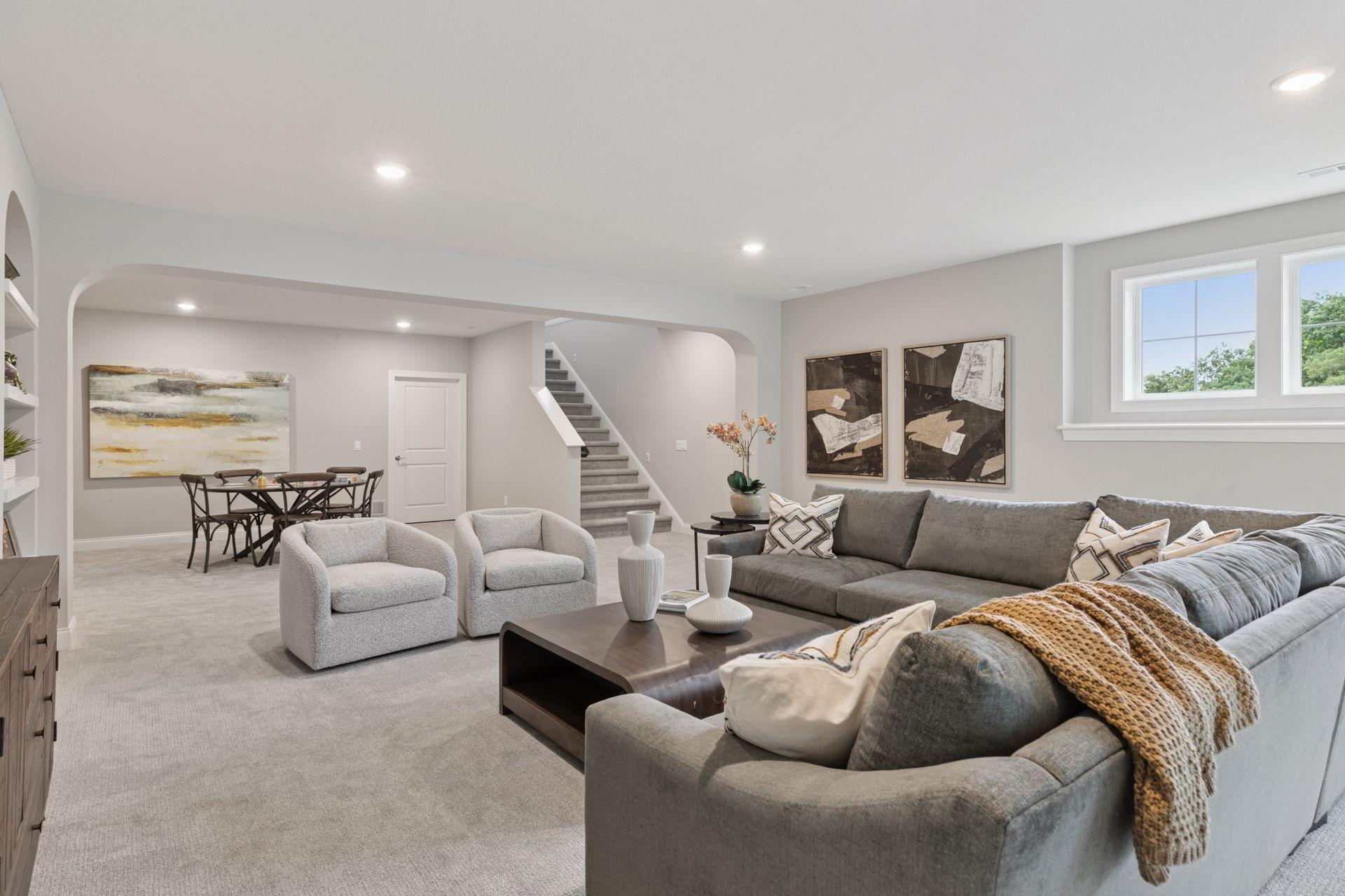 This newly built Charles Cudd Co. home offers a refined, low-maintenance lifestyle with an emphasis on thoughtful design, quality craftsmanship, and everyday ease. The open-concept main level is both spacious and functional, allowing for comfortable one-level living while still offering the flexibility to accommodate guests, with the lower level providing additional space when needed. Signature architectural details, including arched openings, add character and distinction throughout. The kitchen is well-appointed with quartz surfaces, abundant cabinetry, a walk-in pantry, and a built-in buffet with beverage refrigeratorenhancing both storage and entertaining. A dedicated main-level office with built-in desk provides an ideal space for organization or work-from-home needs. The owners suite serves as a private retreat with a spa-inspired bath featuring a walk-in shower with bench, along with an expansive custom closet that connects directly to the laundry. A sunroom and adjoining deck provide a peaceful extension of the home, offering privacy and a comfortable place to unwind. The walkout lower level expands the home with a spacious family room and flexible areas ideal for guests, hobbies, or a home office, along with direct access to the patio. Enjoy true lock-and-leave living with association-maintained lawn care, snow removal, and exterior roof and siding. Set within the North Oaks community with access to trails, parks, and natural surroundings. Additional homesites available.