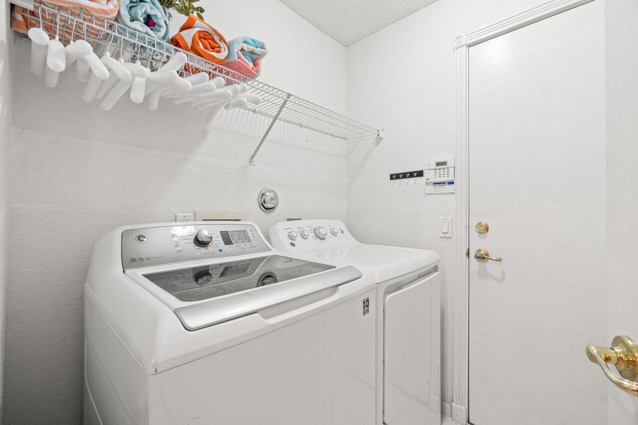 Beautifully updated 3 bedroom 2 bathroom home located in the highly sought-after active adult community of Valencia Lakes. This residence offers stunning curb appeal with professional landscaping and a 2-car garage. Step through the covered entry and double doors into a bright, open layout filled with natural light. The eat-in kitchen features charming bay windows, while the spacious living area with high ceilings flows seamlessly to a screened-in patio--perfect for outdoor entertaining. Enjoy peaceful garden views with no rear neighbors. The home boasts tile flooring throughout with wood-like laminate in the bedrooms, updated bathrooms, and an indoor laundry room with full-sized washer and dryer. The primary suite is a true retreat with a walk-in closet and an en-suite bath featuring