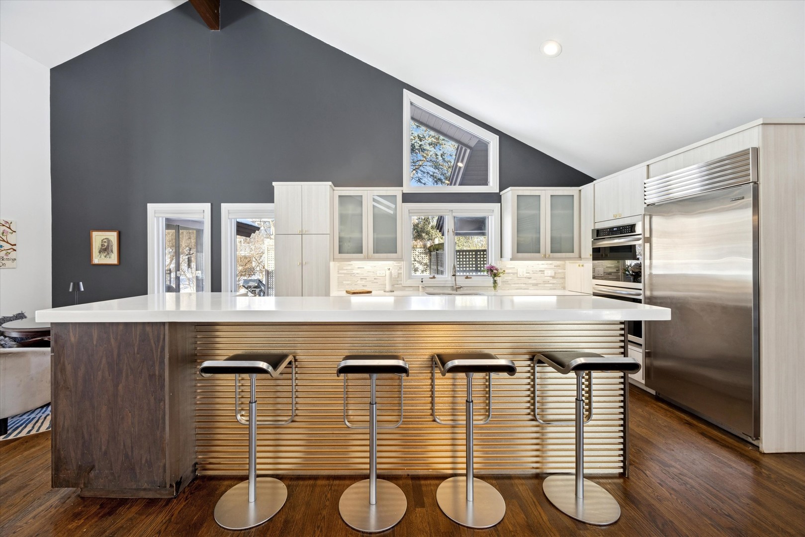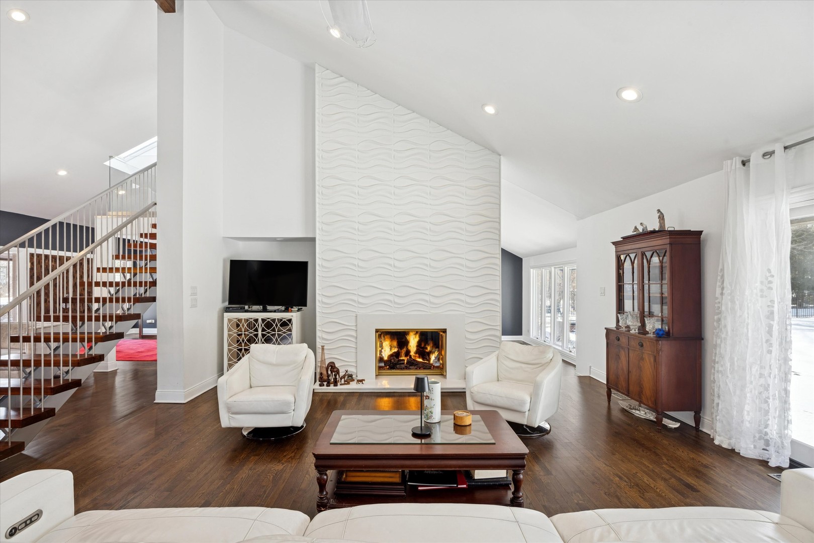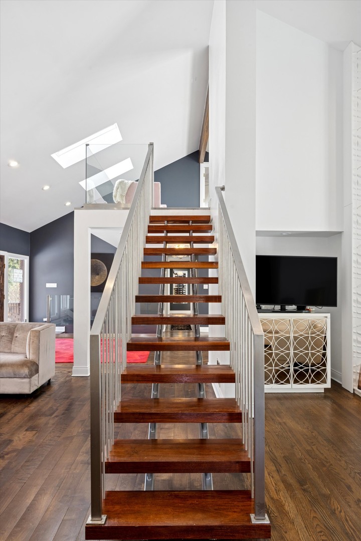Gorgeously updated sprawling brick and cedar contemporary on 1 acre of resort like grounds in highly rated Pleasantdale/Lyons Township school district. This sun lit home features an open concept layout, sky high ceilings, impressive 2 story double sided fireplace, remodeled modern kitchen, grand dining room, upgraded high-end Visual Comfort light fixtures, spacious master suite with sliding doors to the pool, 2 more spacious bedrooms and full bath on the main floor, one upstairs with a large loft area and 1/2 bath, lovely screened in porch for taking in the gorgeous views of the fully professionally landscaped perennial gardens. beautiful private pond with water feature. The fully finished basement with bar, kitchenette, recreation area, brick fireplace, bedroom and full bath makes for a great entertaining space or in-law suite. Easy access to I-55, I-294, and just minutes to Burr Ridge Village Center for shopping, dining and entertainment. Easy commute to downtown Chicago! This is a WOW property!