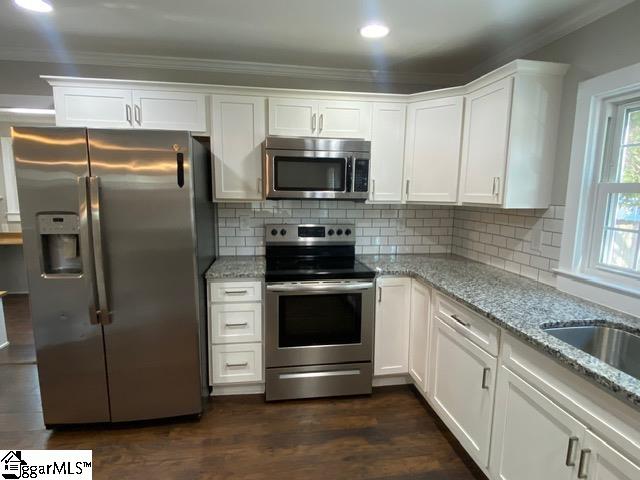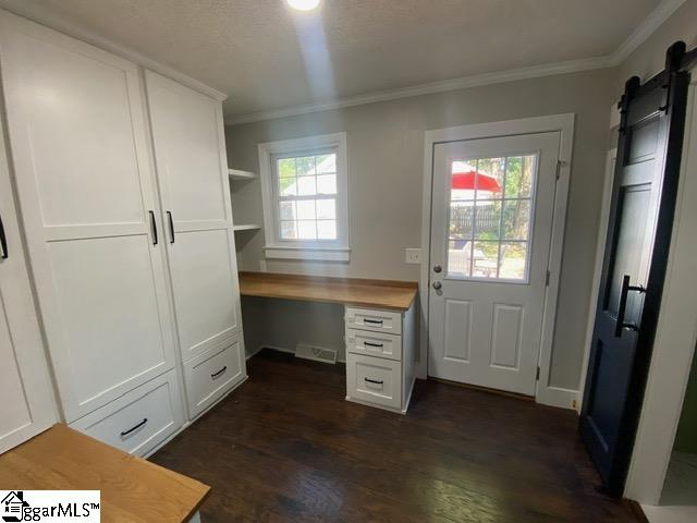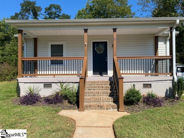 This beautiful renovated and updated home is for rent only. Two bedrooms and two full baths. Enjoy the open kitchen and family room and eating area. New kitchen cabinets, granite counter tops, Stainless steel refrigerator, dishwasher, smooth top stove/oven and built-in microwave enhance this updated kitchen. Even a built-in buffet in the dining area. The landlord is also supplying a washer and dryer. A wonderful office area off the kitchen with extra storage cabinets. Enjoy gathering and relaxing on the huge back deck 24'x20' within the fenced backyard. The shade in the summer time provided by a mature tree. There is a 30'x15' outbuilding with electricity for your convenience as an extra storage room or workshop or workout area . This location is convenient to Travelers Rest, downtown Greenville and the Cherrydale shopping center. This is a great rental opportunity for you at just $1895 per month. One month security deposit required. $75 application fee per adult over 18.