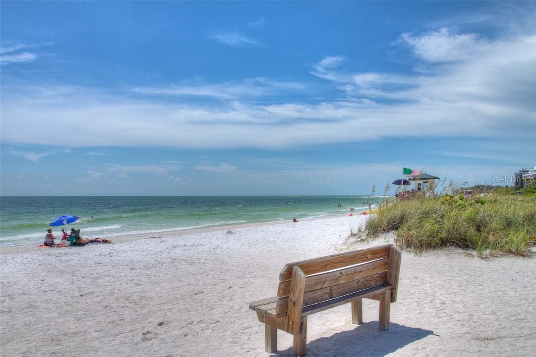 Beautiful beach condo located on Lido Key at the Lido Ambassador. This turnkey furnished condo has one bedroom and one and a half bathrooms. BRAND NEW KITCHEN AND PRIMARY BATHROOM PLUS NEW PAINT THROUGHOUT. Wood floors and tile throughout the condo. The kitchen has stainless appliances, quartz countertops and an open counter to living room/dining room with stools for eating and entertaining. Bedroom has a king sized bed, large walk in closet and an en suite bathroom with large tiled walk in shower, new cabinetry and flooring. Half bathroom has a granite counter top. The comfortable lanai looks directly out to the Gulf of Mexico for breathtaking sunset views. The community offers private access to Lido Beach. No pets and no smoking allowed. LIDO BEACH, CLOSE TO ST. ARMNAD'S CIRCLE, BEAUTIFUL SUNSETS, BEACH LIVING AT IT'S FINEST!!!