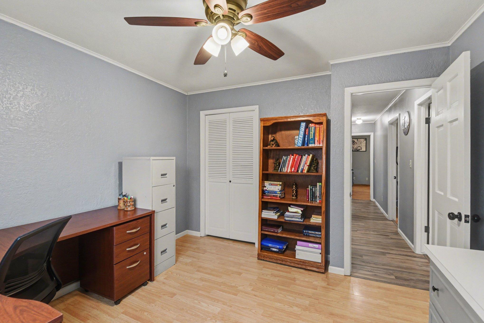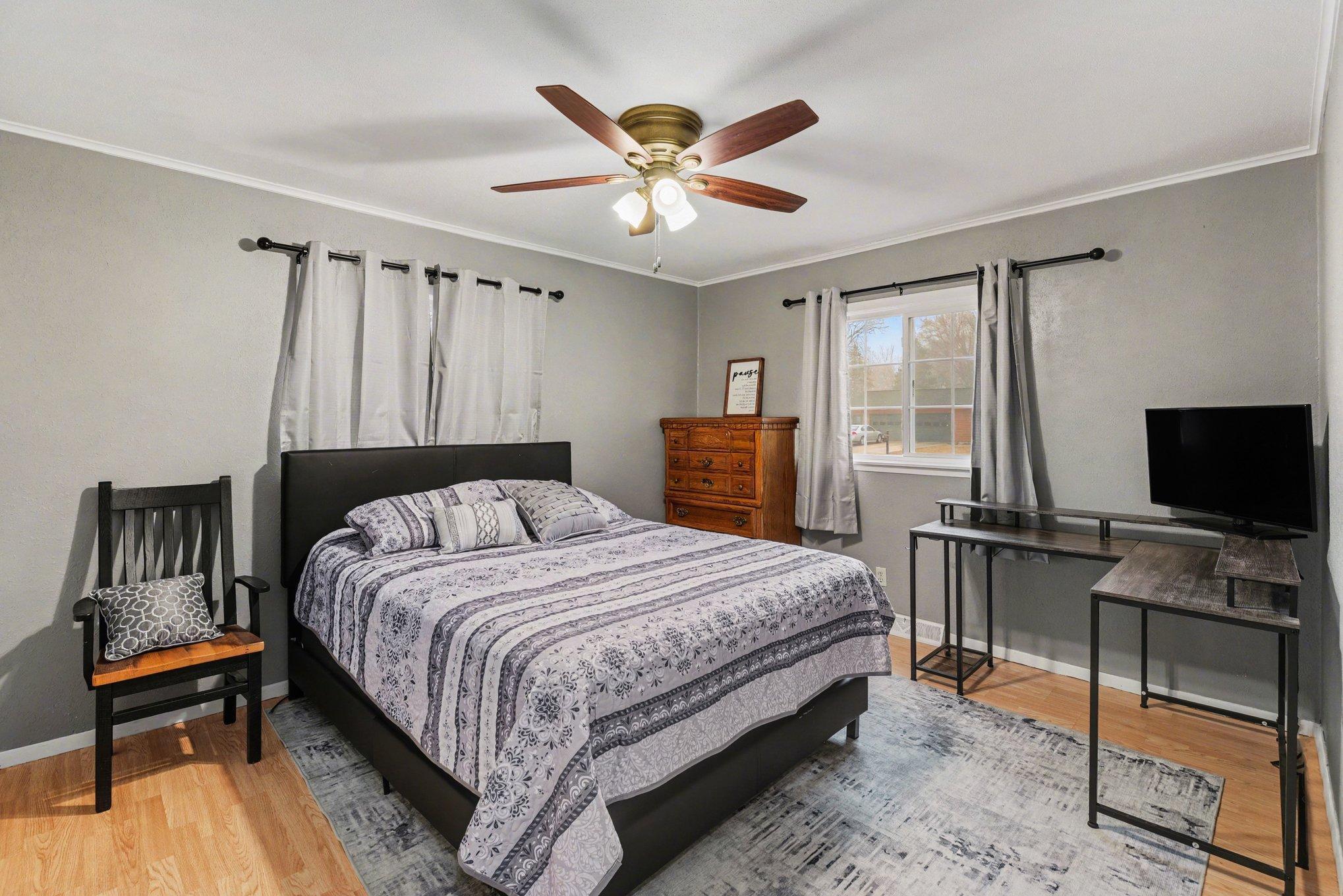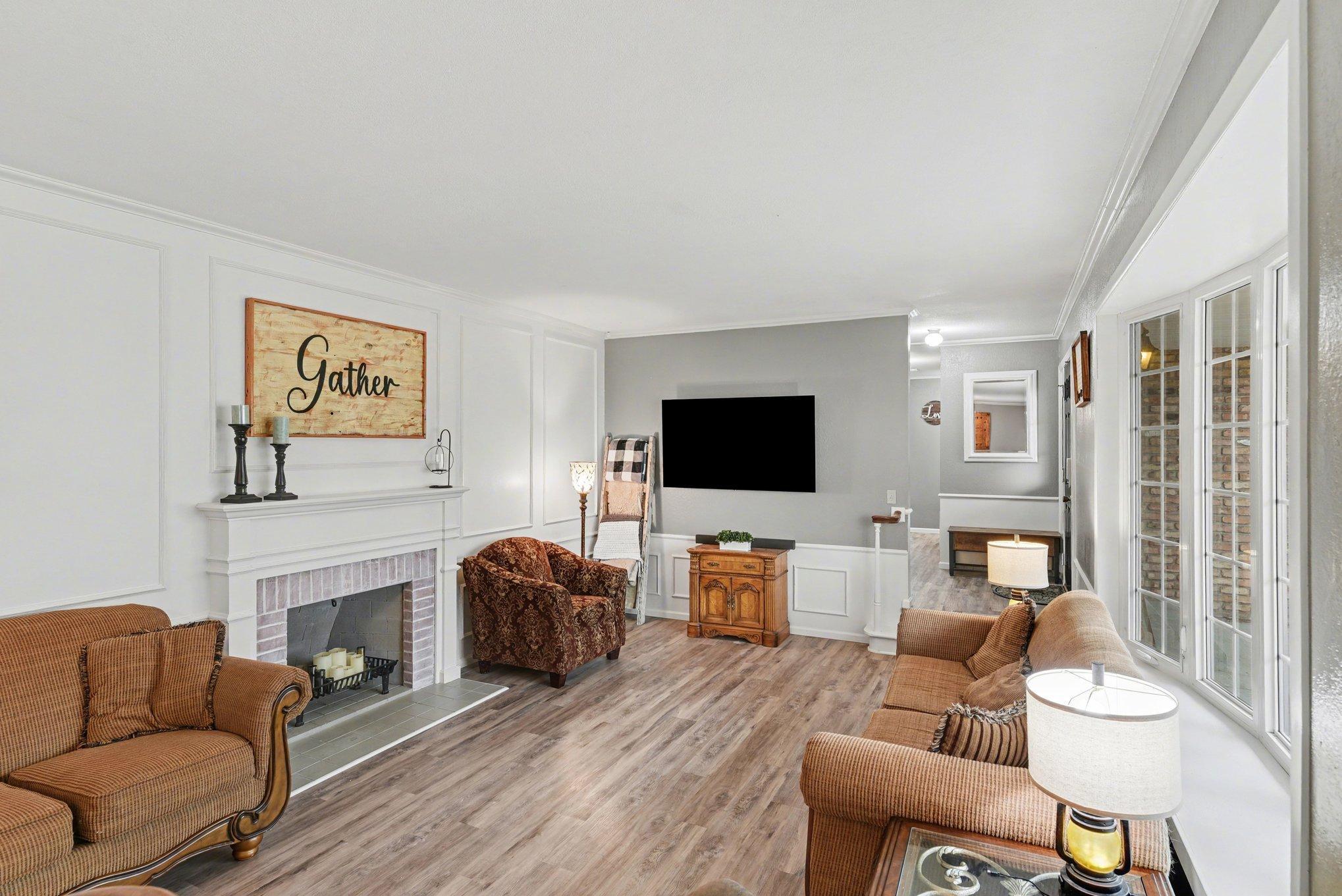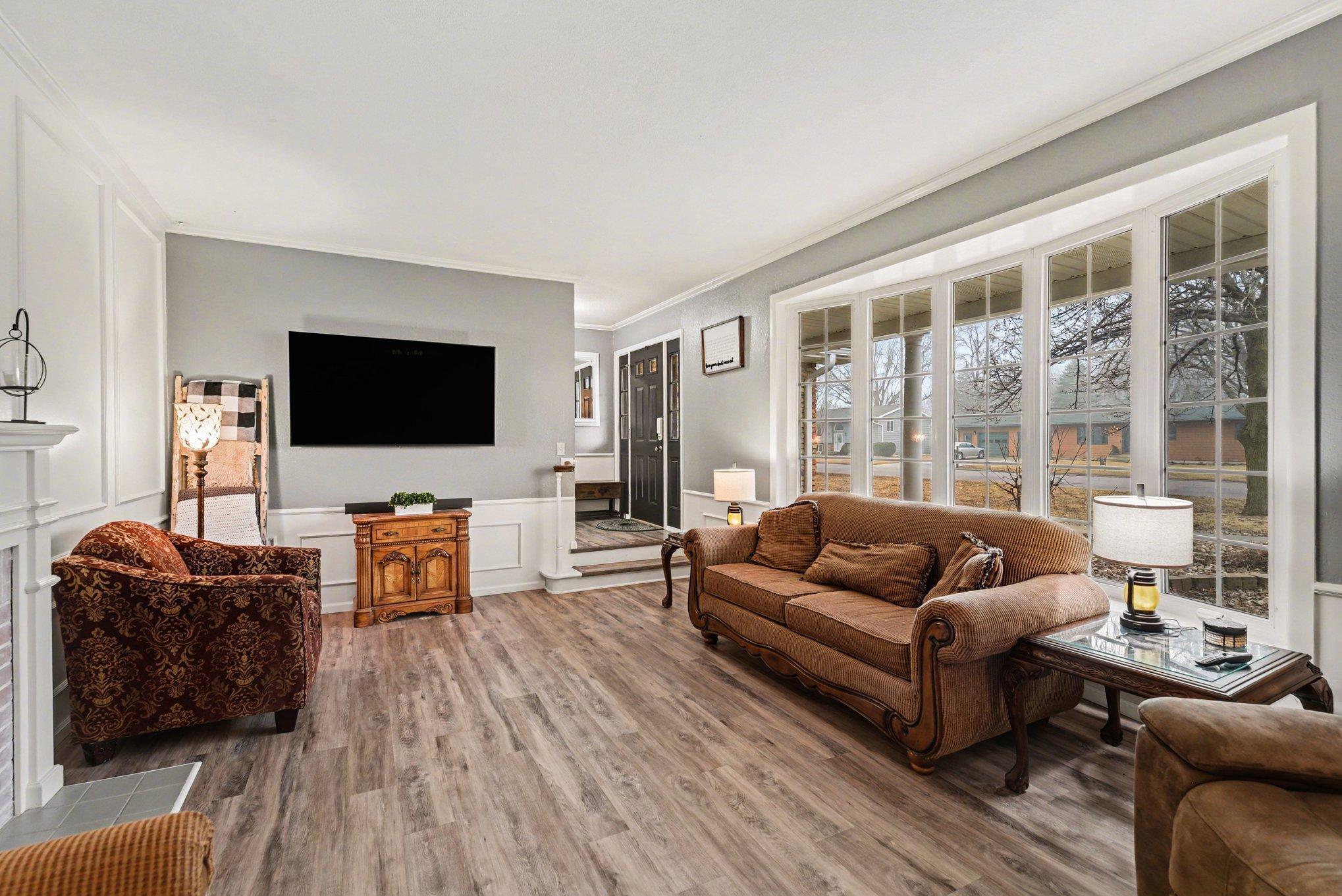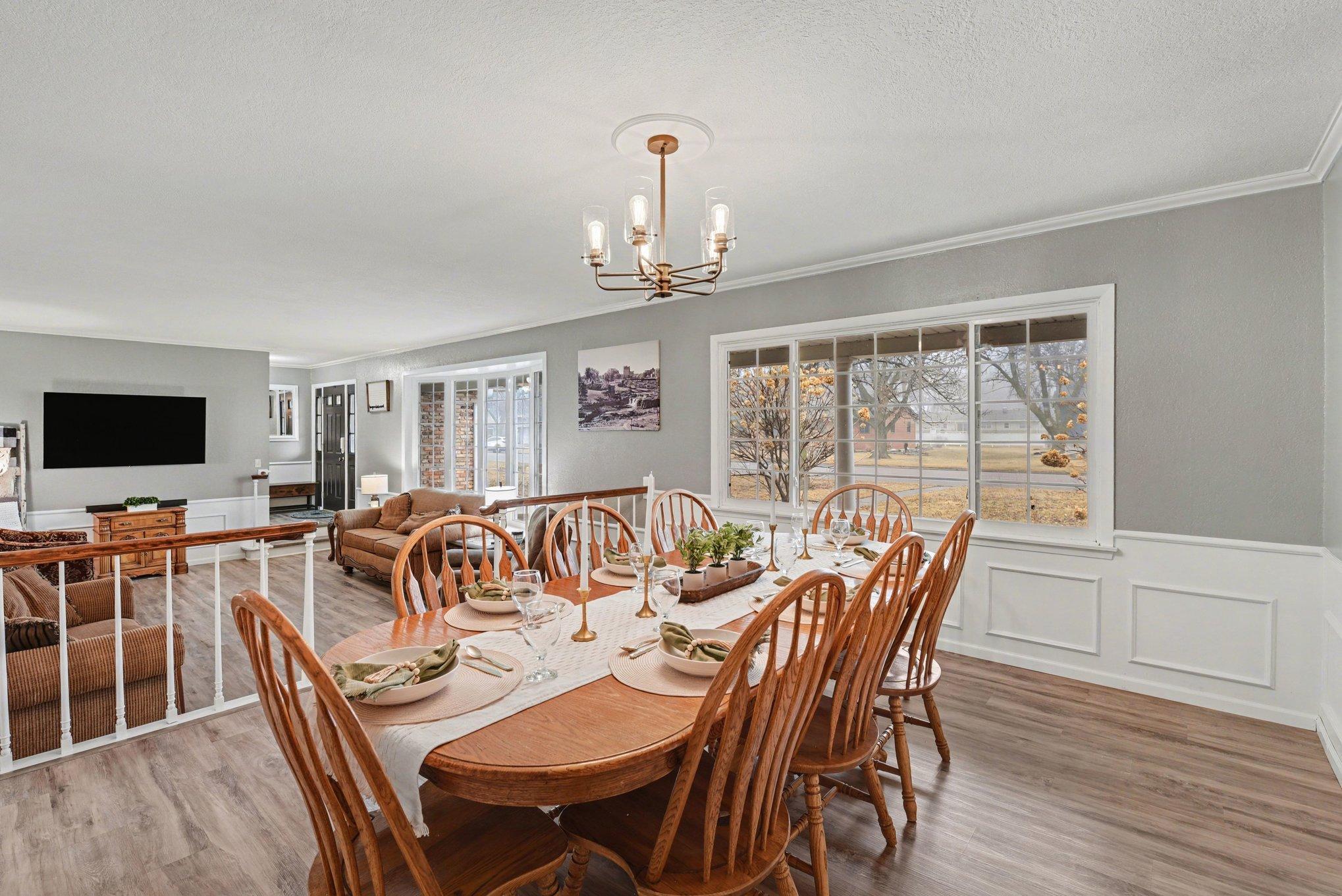 Stunning 5+ Bedroom Home with Exceptional Space & Features!Step through the front door and immediately experience the wow factor in this spacious, move-in-ready family home. Offering 5 bedrooms and 3 bathrooms on the main level, plus a convenient, main-floor laundry, this home provides comfort, flexibility, and room for everyone. With its spacious and inviting layout, this home is perfectly suited for entertaining family and guests. The living room and formal dining room feature elegant board-and-batten wainscoting, while the step-down living room showcases a charming brick fireplace and a large bow window that fills the space with natural light. The kitchen is truly a cooks dream, featuring: a double oven, a JennAir downdraft gas cooktop, and an additional glass cooktop in the peninsula in the kitchen. There is an abundance of cabinetry and countertops. This kitchen has backyard views and space for informal dining.Just steps away, the main floor family room offers another cozy fireplace, built-in bookcases along the south wall, and patio doors leading to the fenced backyard.The private bedroom wing includes four bedrooms and two bathrooms. The primary suite is a spacious retreat with its own bath, double closets, and windows overlooking the backyard. All bedrooms feature laminate flooring, ceiling fans, and ample closet space. An additional private bedroom sits conveniently near the laundry room.Downstairs, you'll find a large, carpeted family room, a bath, and another finished room that could easily become a 6th bedroom with the addition of an egress window.The generous lot extends beyond the fenced backyard, offering plenty of space for outdoor living, gardening, or future projects. The 2-stall garage has a floor drain and openers. There is an additional parking area and storage shed. All appliances stay, making this beautiful home truly move-in ready.Schedule your private tour or live video showing today to experience the updates, space, and thoughtful layout this home has to offer!