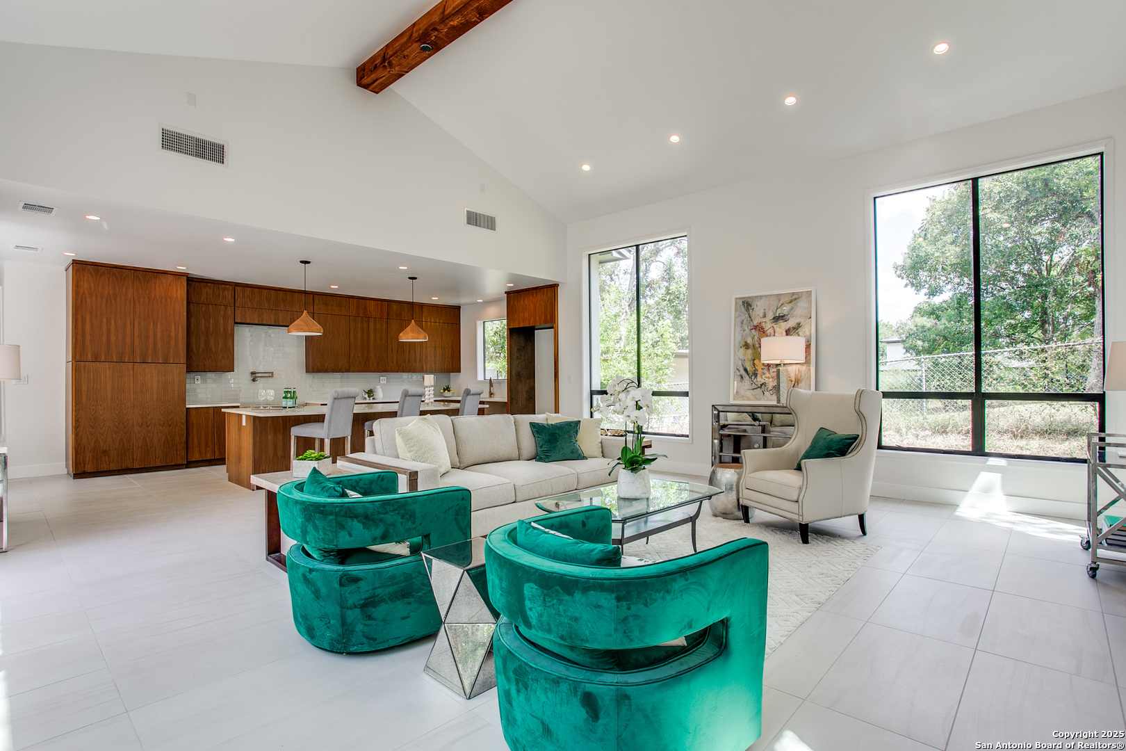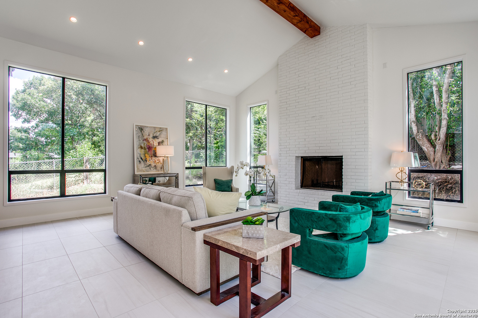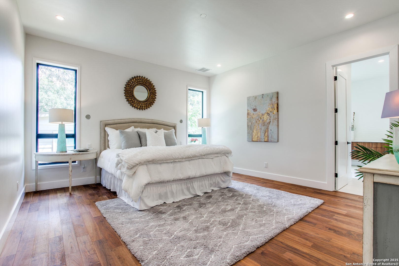 Experience redefined luxury in this stunning California contemporary nestled in the heart of Terrell Hills. Designed with clean lines and resort-style living in mind, this modern bungalow offers an effortless blend of comfort and sophistication. Step inside to soaring, light-filled spaces ideal for both intimate family moments and stylish entertaining. The chef s kitchen, complete with top-of-the-line appliances and seamless access to the outdoors, will delight both the culinary enthusiast and the consummate host. The first-floor primary suite is a true retreat, featuring a spa-like bath with an oversized glass-enclosed shower, freestanding vessel tub, dual quartz vanities, and a massive walk-in closet. A private guest suite with full bath completes the main level. Upstairs, two additional bedrooms each feature en-suite baths, alongside a spacious game/media room for gatherings. Thoughtful touches include utility rooms on both levels and an attached two-car garage, adding convenience to everyday living.