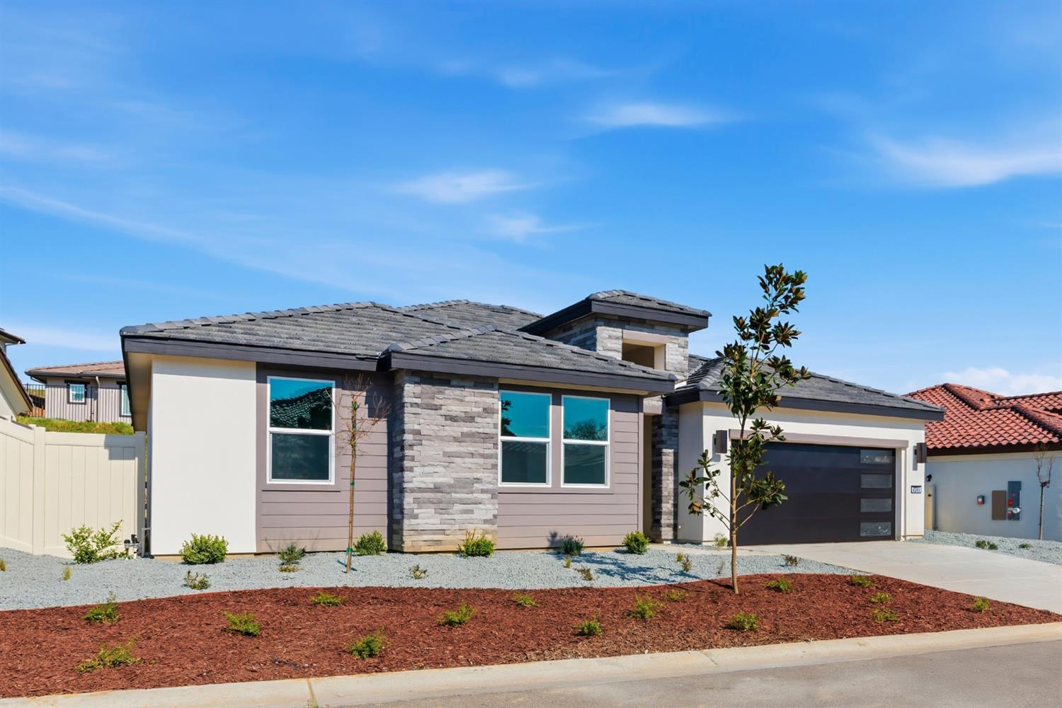 Discover elevated living at Chaparral Ranch at The Preserve, a thoughtfully planned new community where location and lifestyle align. With convenient access to major commuter routes, plus nearby dining, shopping, schools, and outdoor recreation, this neighborhood is designed to simplify busy days while enriching your downtime. The beautifully crafted Aberdeen plan offers 3 spacious bedrooms and 2 well-appointed baths, finished in warm Farmhouse-inspired selections that blend timeless charm with modern practicality. An open layout welcomes you with abundant natural light, creating an inviting great room that flows seamlessly into the dining area and gourmet kitchen, ideal for entertaining or relaxed evenings at home. At the center of it all, the kitchen impresses with grey cabinetry, Arctic White quartz countertops, a generous island with beautiful pendant lighting, and a suite of GE Profile stainless-steel appliances that deliver both performance and polish. The split floorplan enhances privacy, with a serene Primary Suite tucked away as a peaceful retreat. Enjoy a spa-like bath featuring dual vanities, a freestanding soaking tub, and a sleek glass-enclosed shower. A versatile HovHub adds flexible space for a home office, study zone, or creative nook. This is where comfort meets sophistication for your next chapter. ***Prices subject to change.