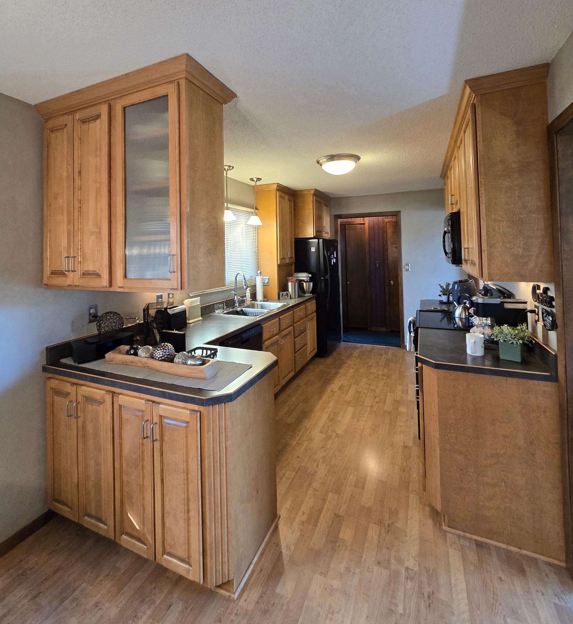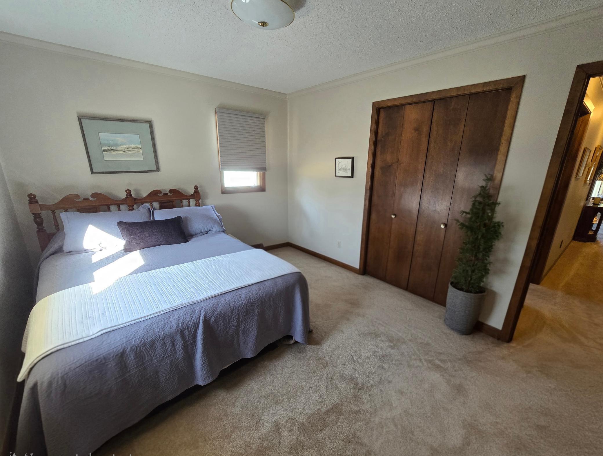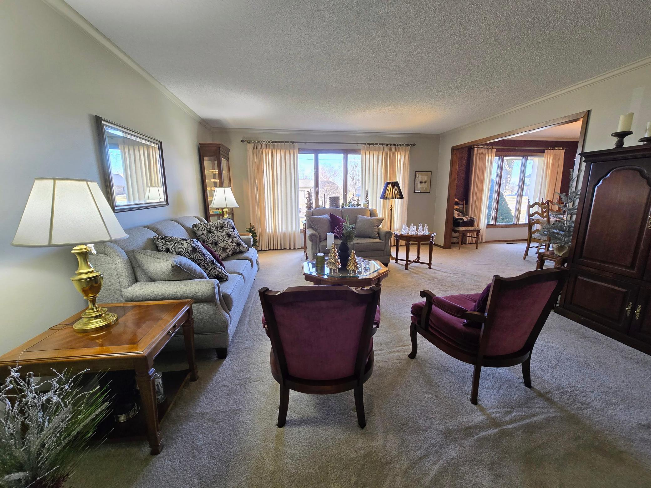 Custom-built in 1972 and proudly maintained by its original owner, this solid ranch-style home is situated on a spacious 135 x 140 lot in a desirable location near the golf course, offering convenient access from both the front and back of the property.The main level features three bedrooms, including a private primary suite with dual closets and a bath with shower. Two additional guest bedrooms are carpeted and served by a full guest bath.Designed for comfortable everyday living and entertaining, the home offers a large formal living room, formal dining room, and a dedicated office with French doors and a built-in bookcase. The remodeled kitchen showcases beautiful birch cabinetry, laminate flooring, and an eat-in dining area. Main-floor laundry includes additional cabinetry, washer, dryer, and a large upright deep freeze that will remain. A convenient half bath is tucked behind a pocket door.On the east side of the home, a comfortable sitting room features patio doors leading to an aggregate patio and attractively landscaped backyard. The hallway provides generous pantry and storage closets for excellent organization.The unfinished basement offers outstanding potential for future finishing. Constructed with poured concrete walls (12-inch north wall and 8-inch remaining walls), it includes a storage room with shelving, sump pump discharging underground to the municipal storm sewer system, forced air furnace, and central air ( both installed in 2010).The property also features an oversized 24 x 28 attached two-stall garage with built-in extra storage space, providing ample room for vehicles, tools, and hobbies. Gutters also have gutter guards with transferable warranty. Additional features include original Andersen windows and shingles replaced in 2012.Solid construction, spacious layout, and a prime location make this one-owner home a rare opportunity with room to grow.