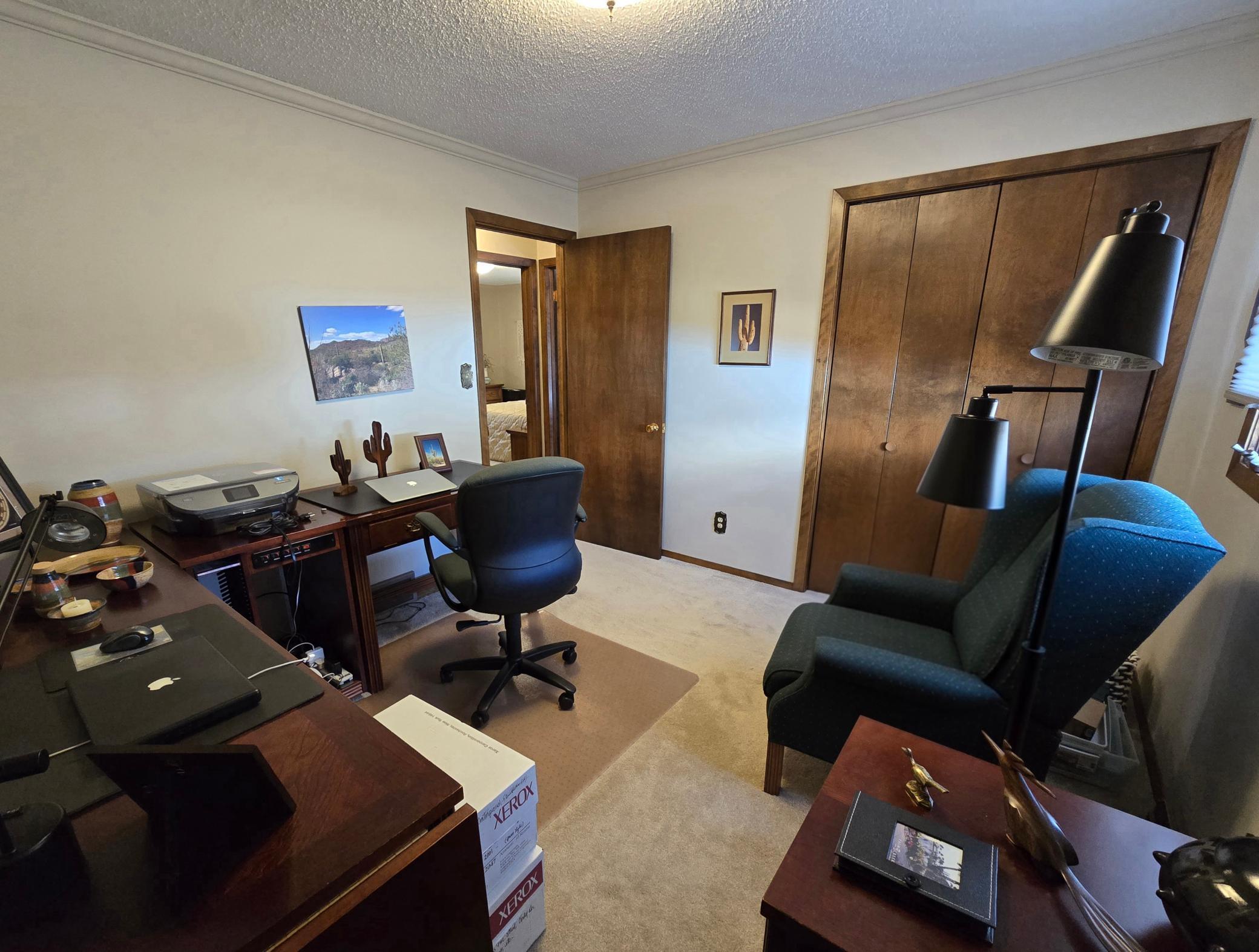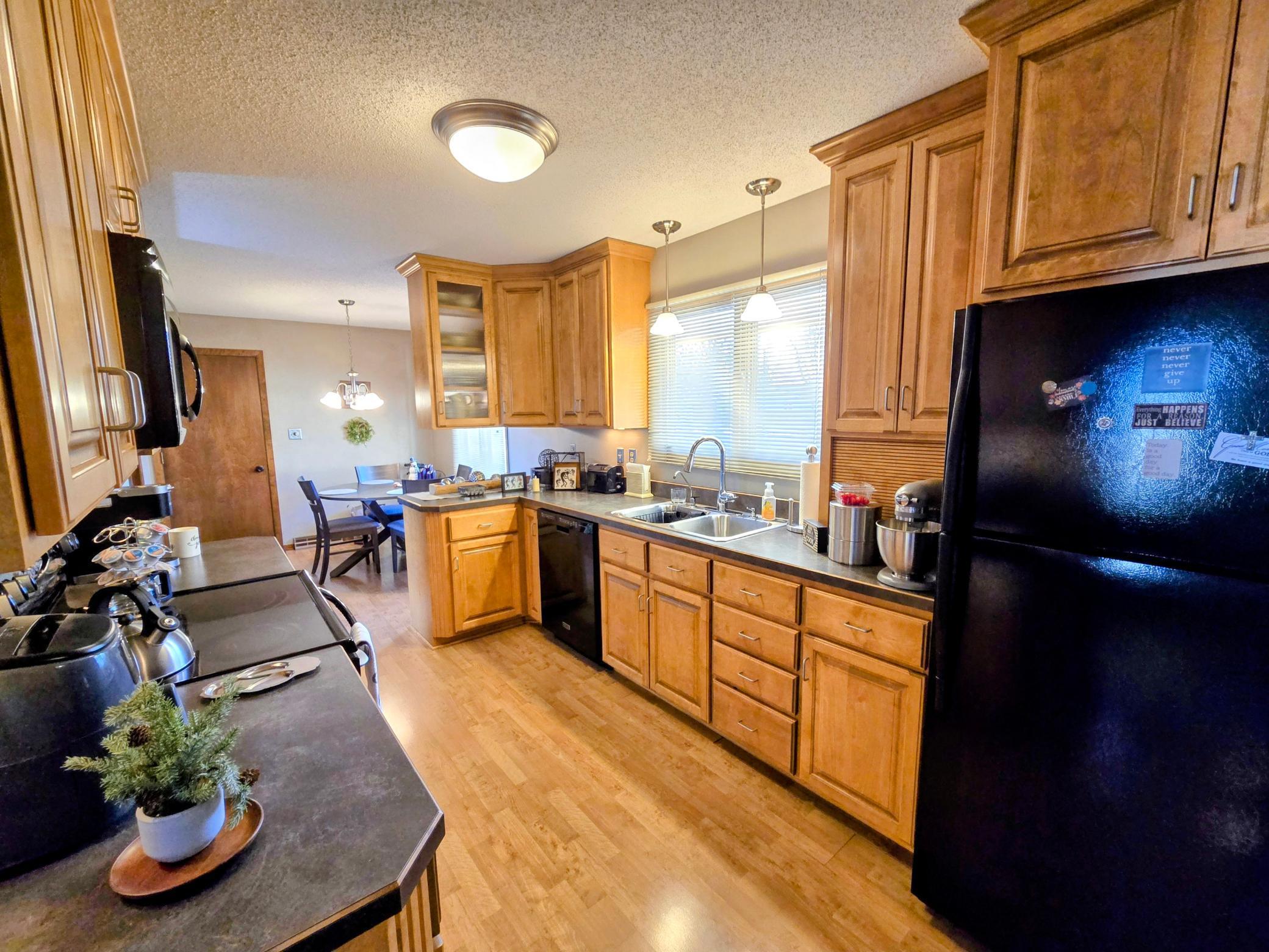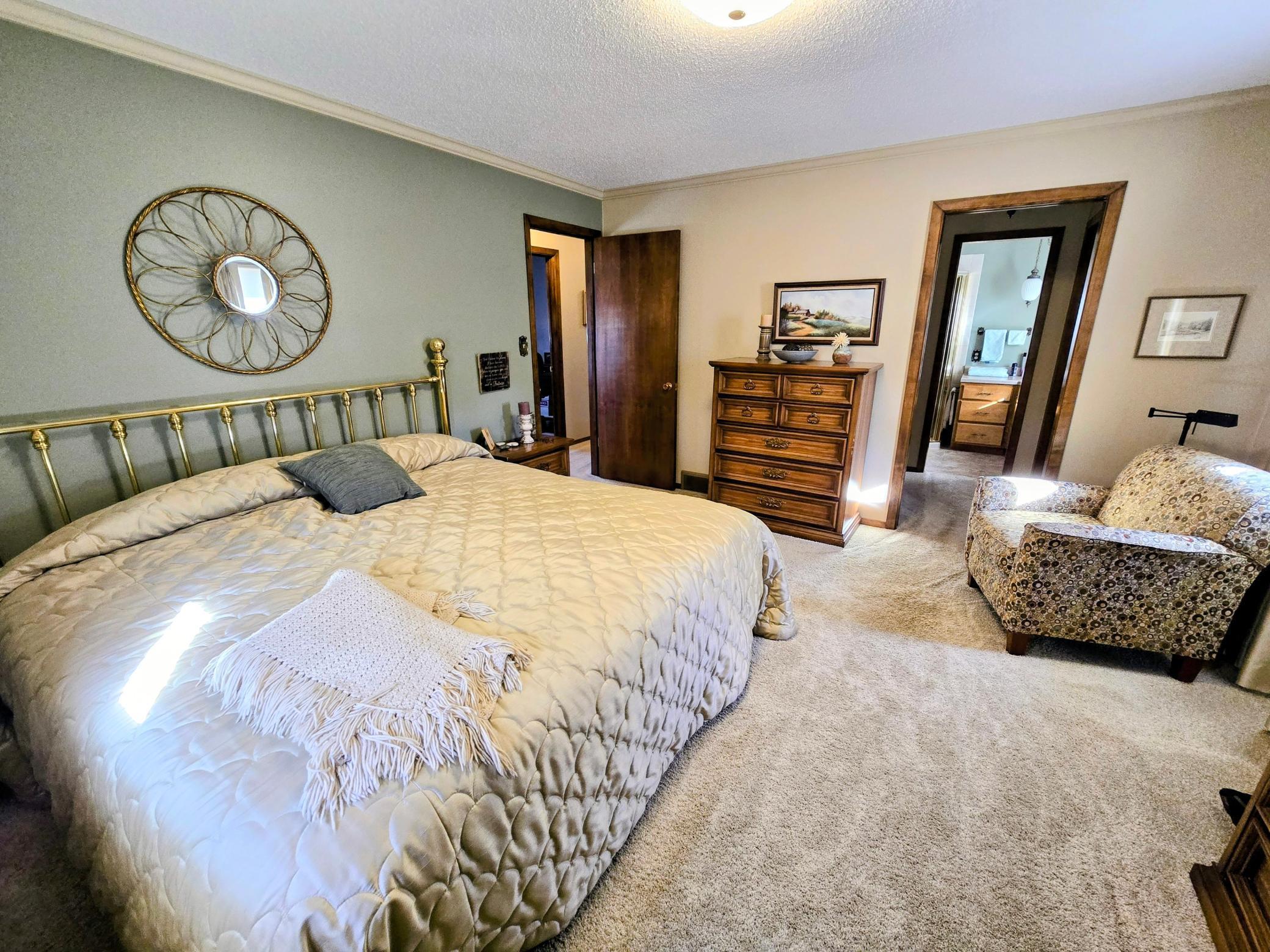 Custom-built in 1972 and proudly maintained by its original owner, this solid ranch-style home is situated on a spacious 135 x 140 lot in a desirable location near the golf course, offering convenient access from both the front and back of the property.The main level features three bedrooms, including a private primary suite with dual closets and a bath with shower. Two additional guest bedrooms are carpeted and served by a full guest bath.Designed for comfortable everyday living and entertaining, the home offers a large formal living room, formal dining room, and a dedicated office with French doors and a built-in bookcase. The remodeled kitchen showcases beautiful birch cabinetry, laminate flooring, and an eat-in dining area. Main-floor laundry includes additional cabinetry, washer, dryer, and a large upright deep freeze that will remain. A convenient half bath is tucked behind a pocket door.On the east side of the home, a comfortable sitting room features patio doors leading to an aggregate patio and attractively landscaped backyard. The hallway provides generous pantry and storage closets for excellent organization.The unfinished basement offers outstanding potential for future finishing. Constructed with poured concrete walls (12-inch north wall and 8-inch remaining walls), it includes a storage room with shelving, sump pump discharging underground to the municipal storm sewer system, forced air furnace, and central air ( both installed in 2010).The property also features an oversized 24 x 28 attached two-stall garage with built-in extra storage space, providing ample room for vehicles, tools, and hobbies. Gutters also have gutter guards with transferable warranty. Additional features include original Andersen windows and shingles replaced in 2012.Solid construction, spacious layout, and a prime location make this one-owner home a rare opportunity with room to grow.