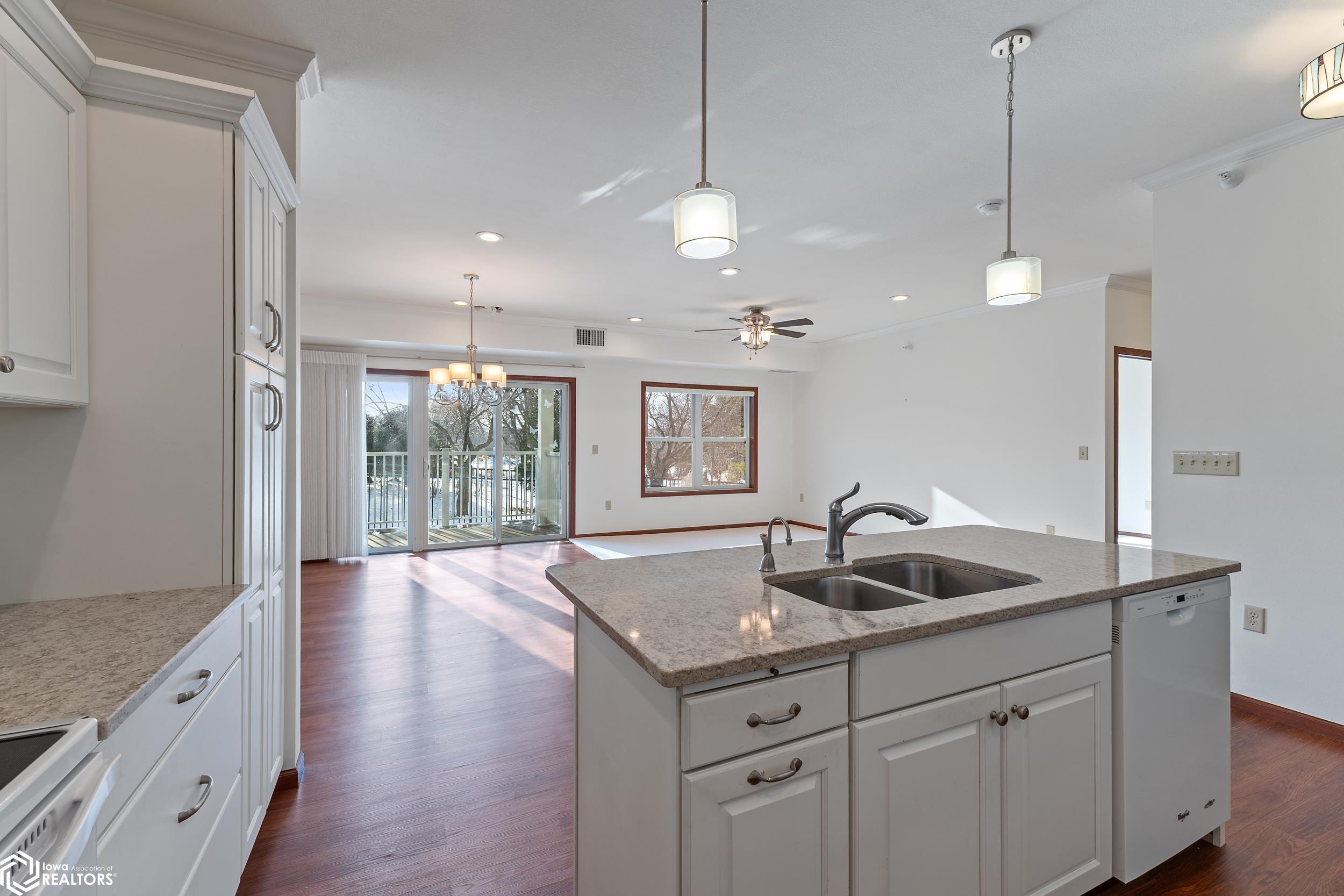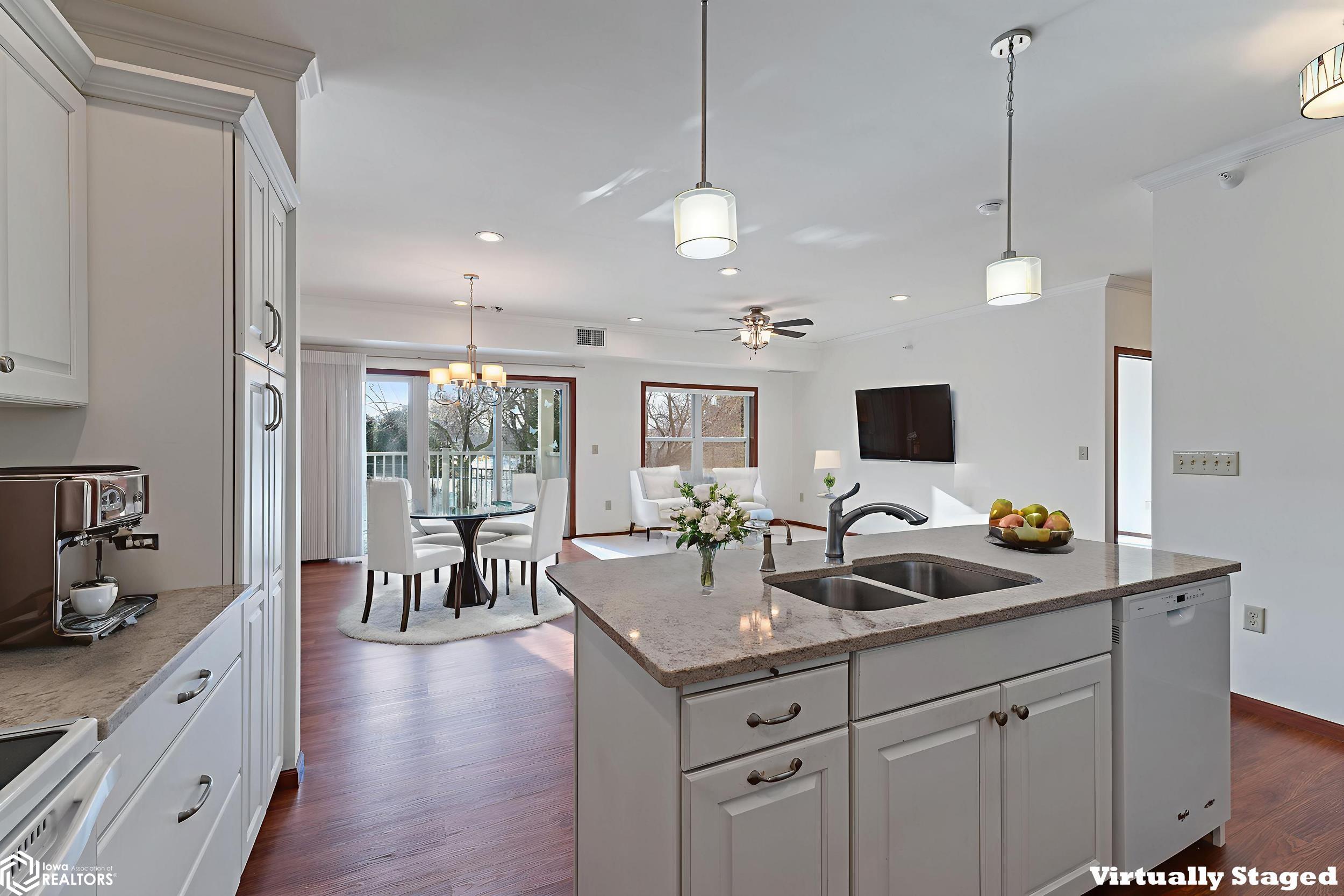 Welcome to this beautifully appointed main-level condo in Garden Park Village, offering peaceful views overlooking Central Gardens.This 1,348 sq ft residence features two generously sized bedrooms and two baths, including a private primary suite. The open-conceptkitchen, dining, and living space is designed for comfortable daily living and effortless entertaining. The kitchen showcases Coriancountertops, custom cabinetry, and a convenient eat-up island. The dining area opens to a covered balconyan ideal spot to relax andenjoy the garden views. This unit includes two garage stalls. This 55+ community offers exceptional amenities including a community/party room, library/club room, heated underground parking with additional storage, a rentable guest suite, and an exercise room. Enjoyleisurely strolls through Central Gardens just steps away. A refined blend of comfort, convenience, and community living. Call to set up aprivate viewing and make this your HOME! Listing agent is related to the seller.