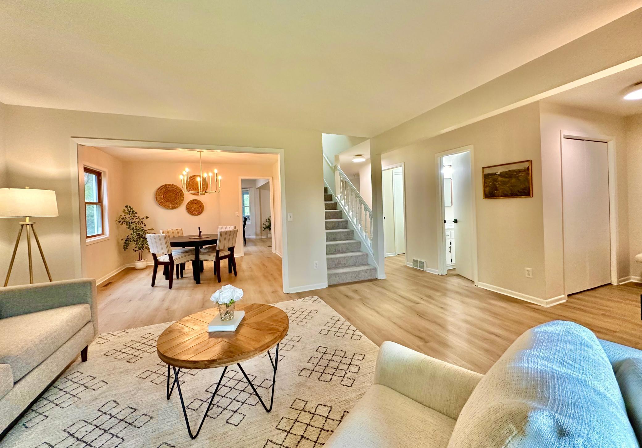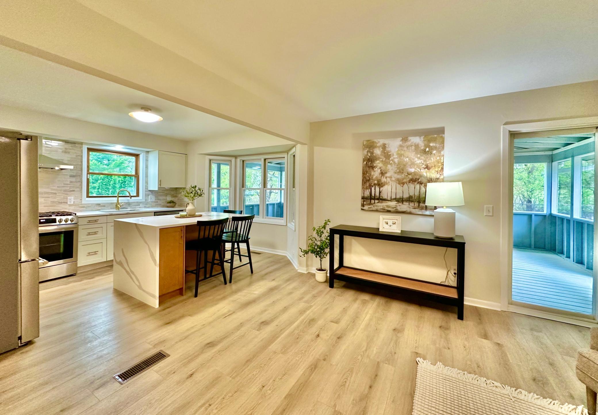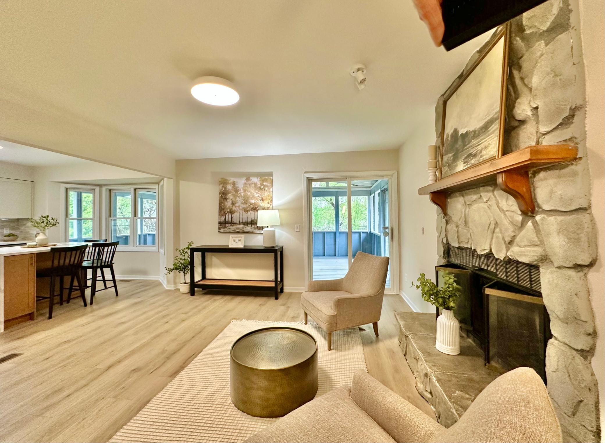 This spectacular home is an entertainer's dream, and is nestled on a private 1/3 acre lot in an exceptional Mendota Heights location; just steps from Rogers Lake and Mendakota Country Club! Curb appeal to spare, you are greeted by a lovely sitting porch as you drive up. Spacious main level features a chef's kitchen with two-toned custom cabinets, waterfall quartz counters, custom backsplash, center island with bar seating, and high-end SS appliance suite. Open concept has this area opening into a family room with a fireplace. This area also opens up to a massive screened in porch (all screens just replaced!) with vaulted ceilings ... PERFECT for summer gatherings. There is another large family room towards the front of the house, along with a formal dining room off the kitchen, as well as main floor powder room. Upstairs features 4 spacious bedrooms, including a wonderful primary suite with luxurious 3/4 bath and walk-in closet with custom closet solution. A spacious full bathroom is also on this level, with double vanity. Basement features 8 foot ceilings, and includes a rec room, additional bedroom, and full bathroom with jetted soaking tub. Laundry/utility area is finished and spacious, and can double as an exercise area, more storage, etc! Luxury plank flooring/new carpet throughout. Exceptional garage with epoxy floor, heater, and windows. Flat, functional yard with fire pit, with backyard fully fenced, and the side yard as flat/open area for games, etc! Updated roof, updated vinyl windows, updated waterheater ... just move in and enjoy!