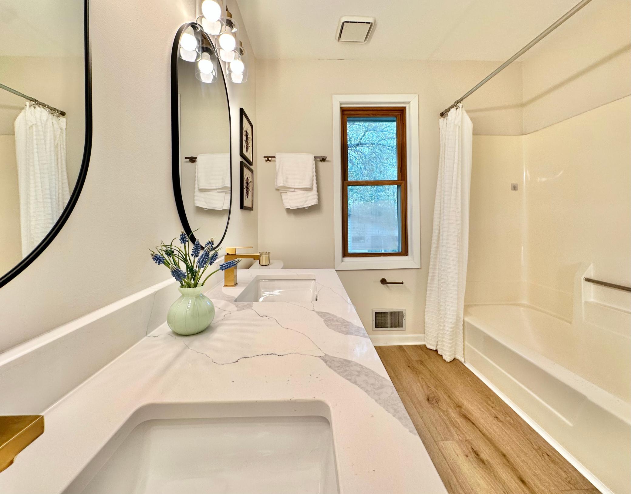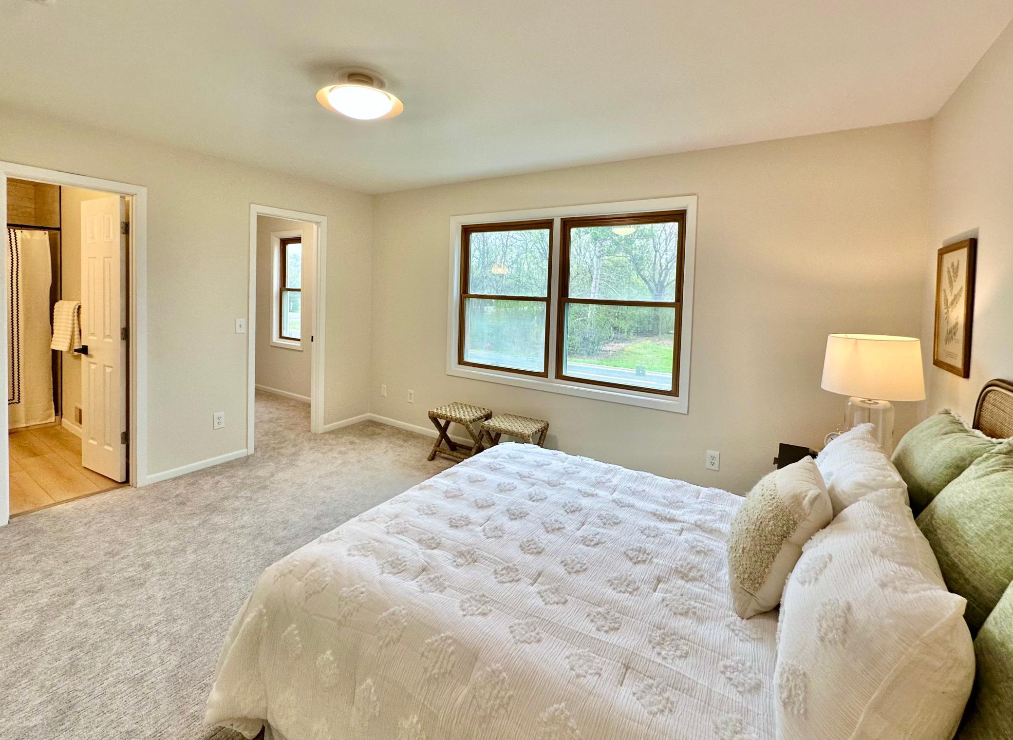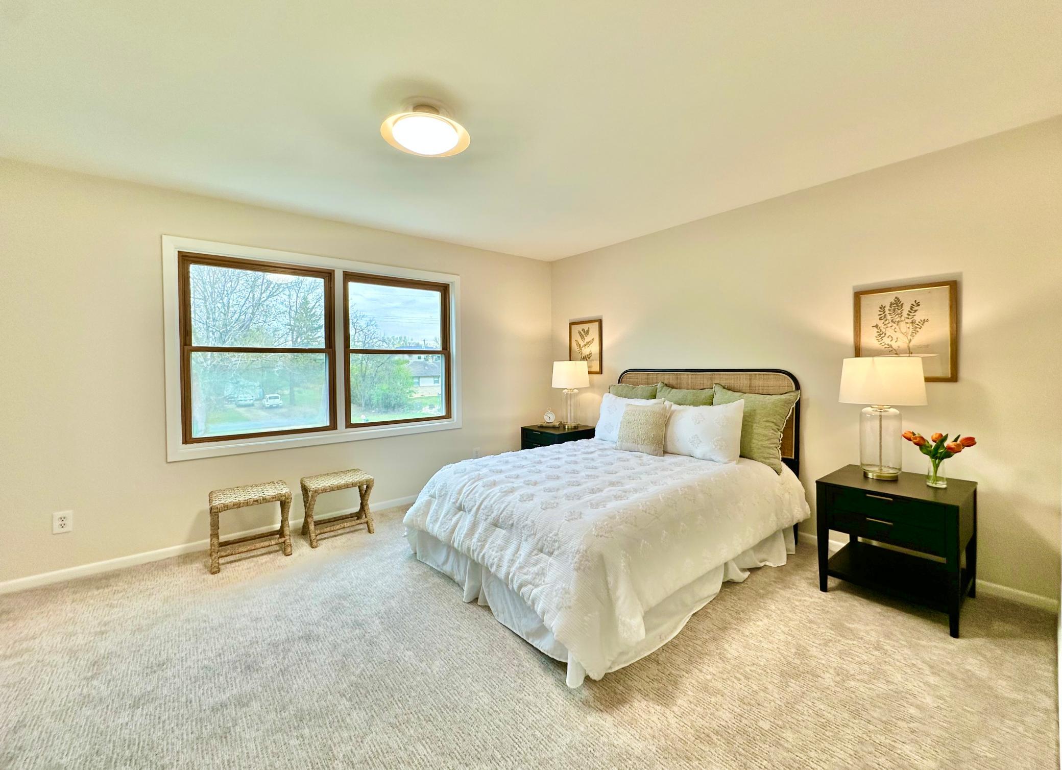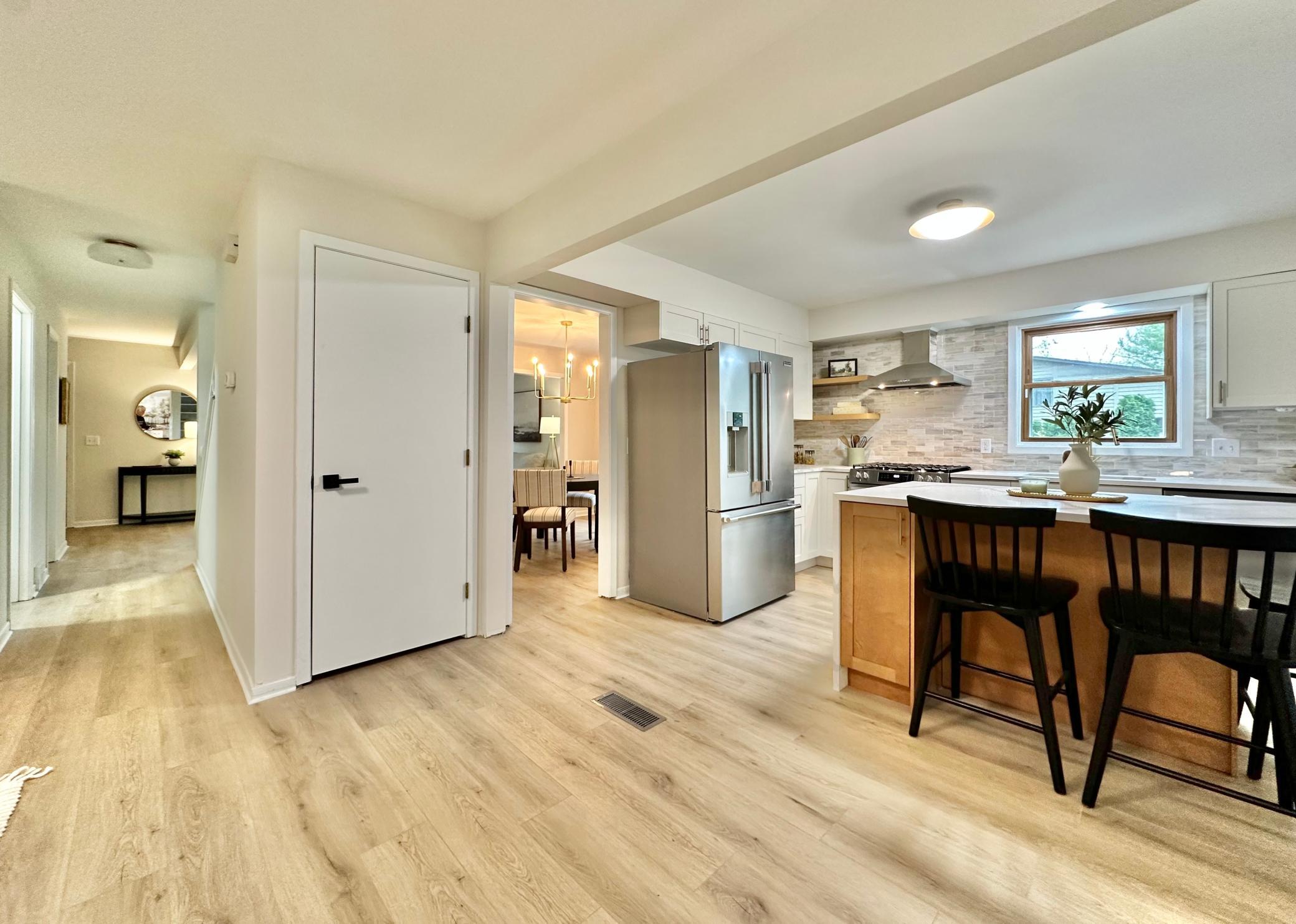 This spectacular home is an entertainer's dream, and is nestled on a private 1/3 acre lot in an exceptional Mendota Heights location; just steps from Rogers Lake and Mendakota Country Club! Curb appeal to spare, you are greeted by a lovely sitting porch as you drive up. Spacious main level features a chef's kitchen with two-toned custom cabinets, waterfall quartz counters, custom backsplash, center island with bar seating, and high-end SS appliance suite. Open concept has this area opening into a family room with a fireplace. This area also opens up to a massive screened in porch (all screens just replaced!) with vaulted ceilings ... PERFECT for summer gatherings. There is another large family room towards the front of the house, along with a formal dining room off the kitchen, as well as main floor powder room. Upstairs features 4 spacious bedrooms, including a wonderful primary suite with luxurious 3/4 bath and walk-in closet with custom closet solution. A spacious full bathroom is also on this level, with double vanity. Basement features 8 foot ceilings, and includes a rec room, additional bedroom, and full bathroom with jetted soaking tub. Laundry/utility area is finished and spacious, and can double as an exercise area, more storage, etc! Luxury plank flooring/new carpet throughout. Exceptional garage with epoxy floor, heater, and windows. Flat, functional yard with fire pit, with backyard fully fenced, and the side yard as flat/open area for games, etc! Updated roof, updated vinyl windows, updated waterheater ... just move in and enjoy!