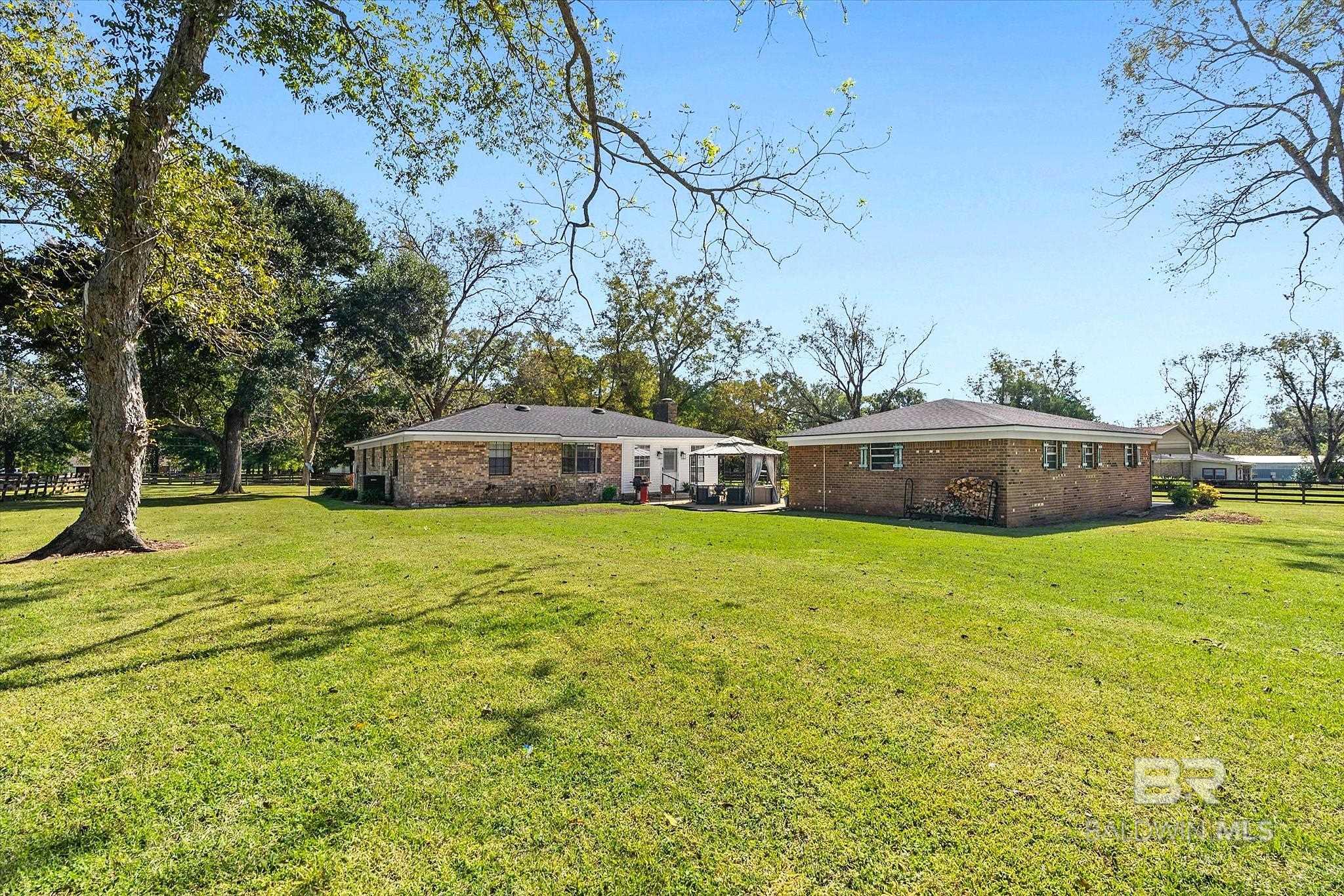 Enjoy the best of peaceful country living with the convenience of quick interstate access. Situated on a flat, fenced and cross-fenced property, this setting is ideal for horses or starting your own homestead. Mature pecan trees add charm and shade. Behind the electric gate, the extended driveway and patio with gazebo create a great space for relaxing or entertaining outdoors. This 3 bedroom, 2 bath ranch-style home features low-maintenance brick and vinyl siding and a comfortable, functional layout. The living room offers built-ins and a wood burning fireplace, with electric blower- creating a cozy focal point. An added sunroom provides extra living space filled with natural lightperfect for a sitting area, office, or hobby room. The kitchen includes a breakfast nook for seating and painted cabinets. The primary bedroom features an ensuite bath and walk-in closet. Additional highlights include a double garage with double roll up doors, a separate workshop area, and 220-amp electrical servicegreat for projects, tools, or hobby equipment. Major updates have already been completed, including a Roof replaced in 2021, Gas Water Heater in 2020 and HVAC installed in 2023. The home also carries a termite bond with Cooks Pest Control. Buyer to verify all information during due diligence.