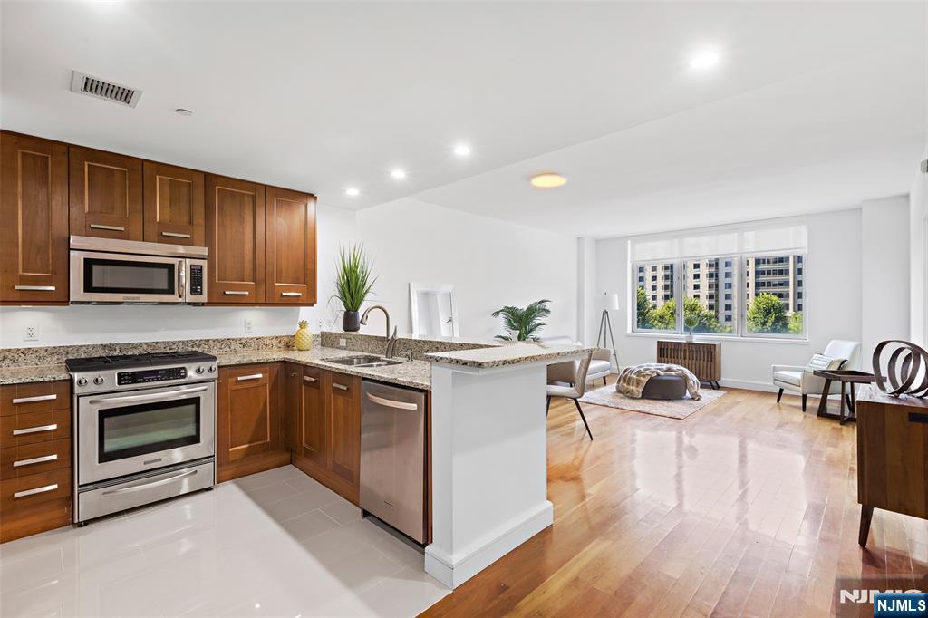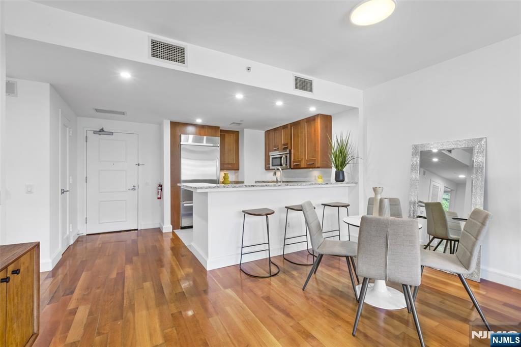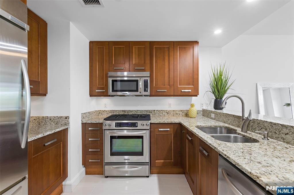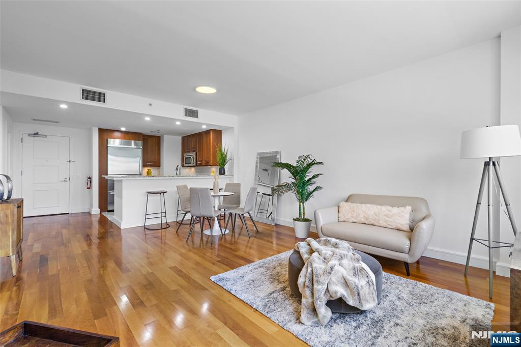 Luxury at its best! SOUTHEAST MIDTOWN MANHATTAN views! 9 ft ceilings,1269 SF, Corner unit, wood floors in Living room, Kitchen Aid stainless steel appliances, Master Bath w/ 2 vanities, large soaking tub, separate glass enclosed shower, lined in creamy marble. Full Amenities include 2 pools (indoor/outdoor), health club, saunas, cinema room, golf simulator, business center, events room, playroom, 2 hotel guest suites + much more! Gas, hot water, 1 in-building garage space and use of amenities included in rent. Private complimentary shuttle to NY Waterway. NJ Transit bus only steps away to Lincoln Tunnel, GWB, Hudson Lightrail/ NY Waterway ferry. Dream commute to NYC.