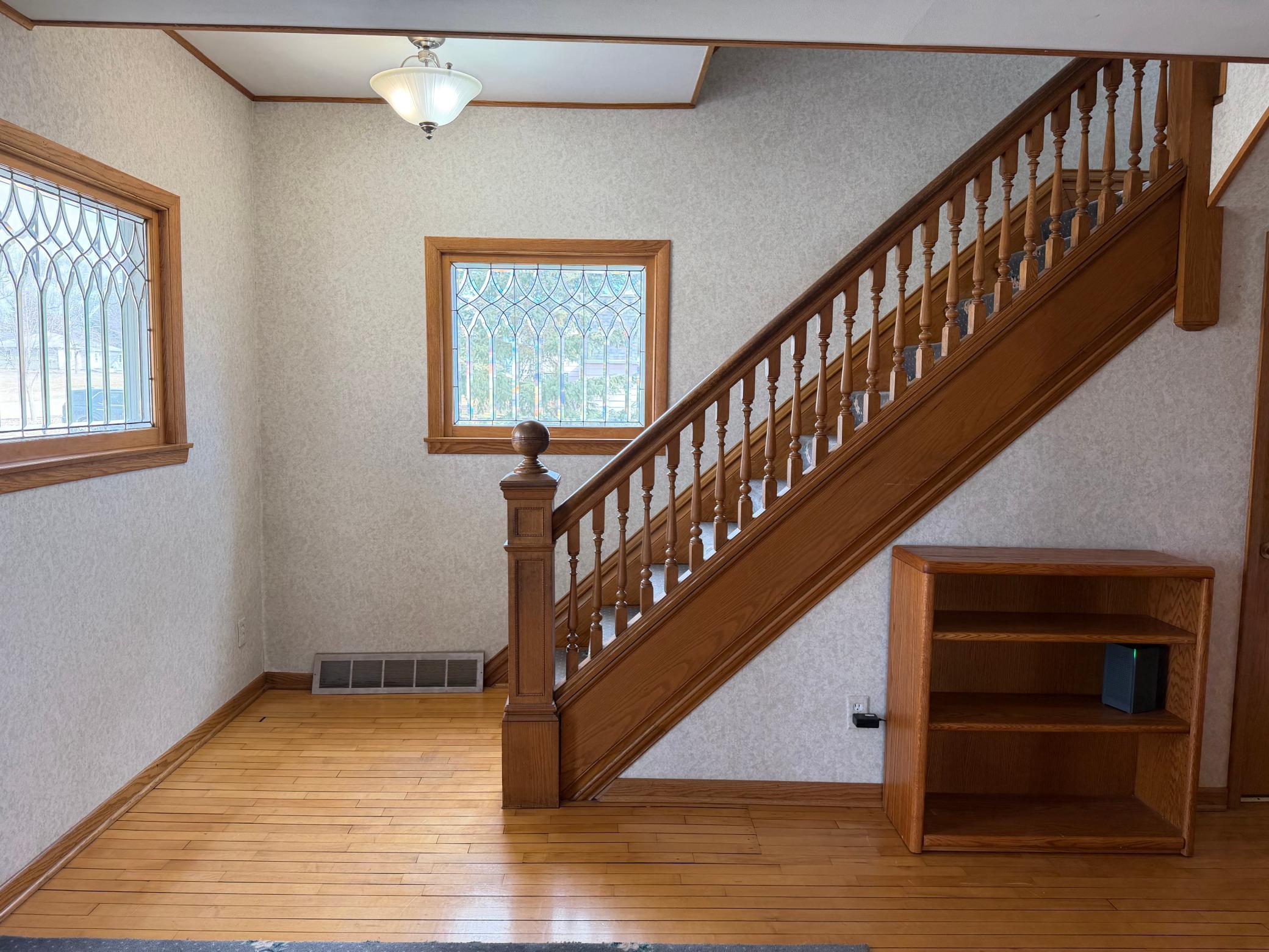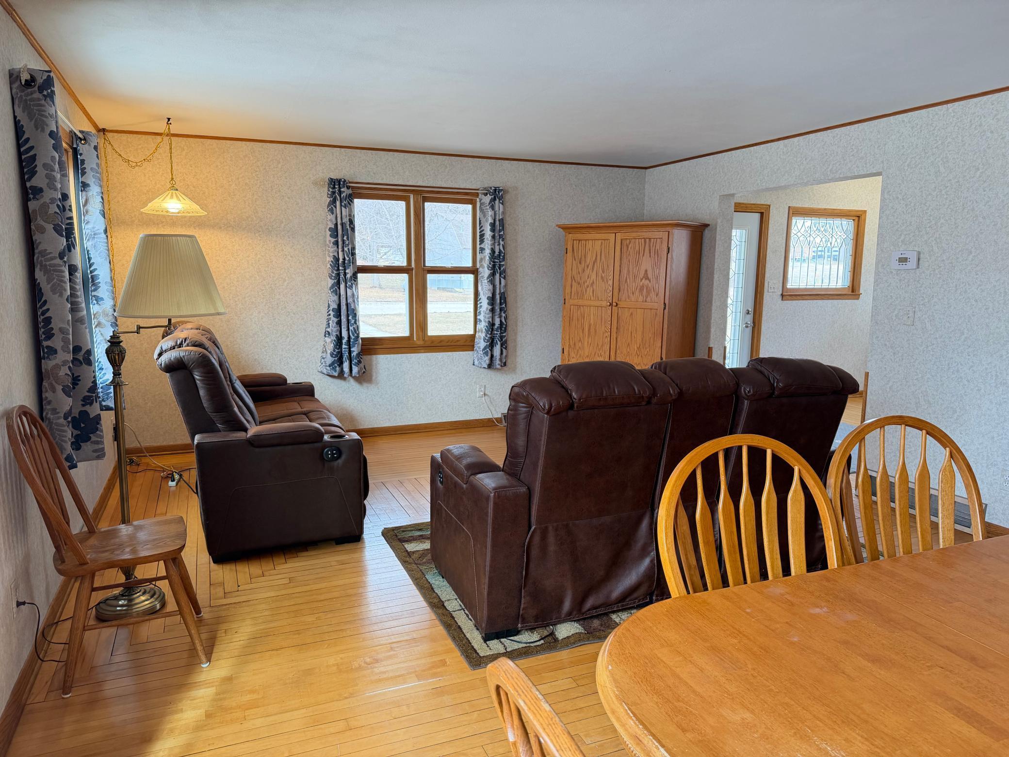Welcome to this well-maintained 4 bedroom, 2 bathroom home full of character and functional space. The inviting foyer features beautiful leaded glass windows and door, creating a warm first impression.This home has been carefully updated with steel siding, updated windows, and a durable steel roof for long-term peace of mind. The remodeled kitchen offers custom cabinetry and countertops, providing both style and practicality for everyday living.Enjoy multiple living spaces including an extra living room with plenty of room to relax or entertain, along with additional attic storage space. The home also features hardwood floors in the dining room, living room, flex room, bedroom, and foyer, adding timeless charm throughout.The flex room currently features a custom lego play area and could also easily serve as a home office, hobby space, or playroom.Step outside to a cement pad with vinyl fencing, perfect for entertaining, relaxing, or even adding an above-ground swimming pool. Additional outdoor features include a utility shed for storage and a swing set that stays with the property.This move-in ready home offers space, updates, and versatility both inside and out.