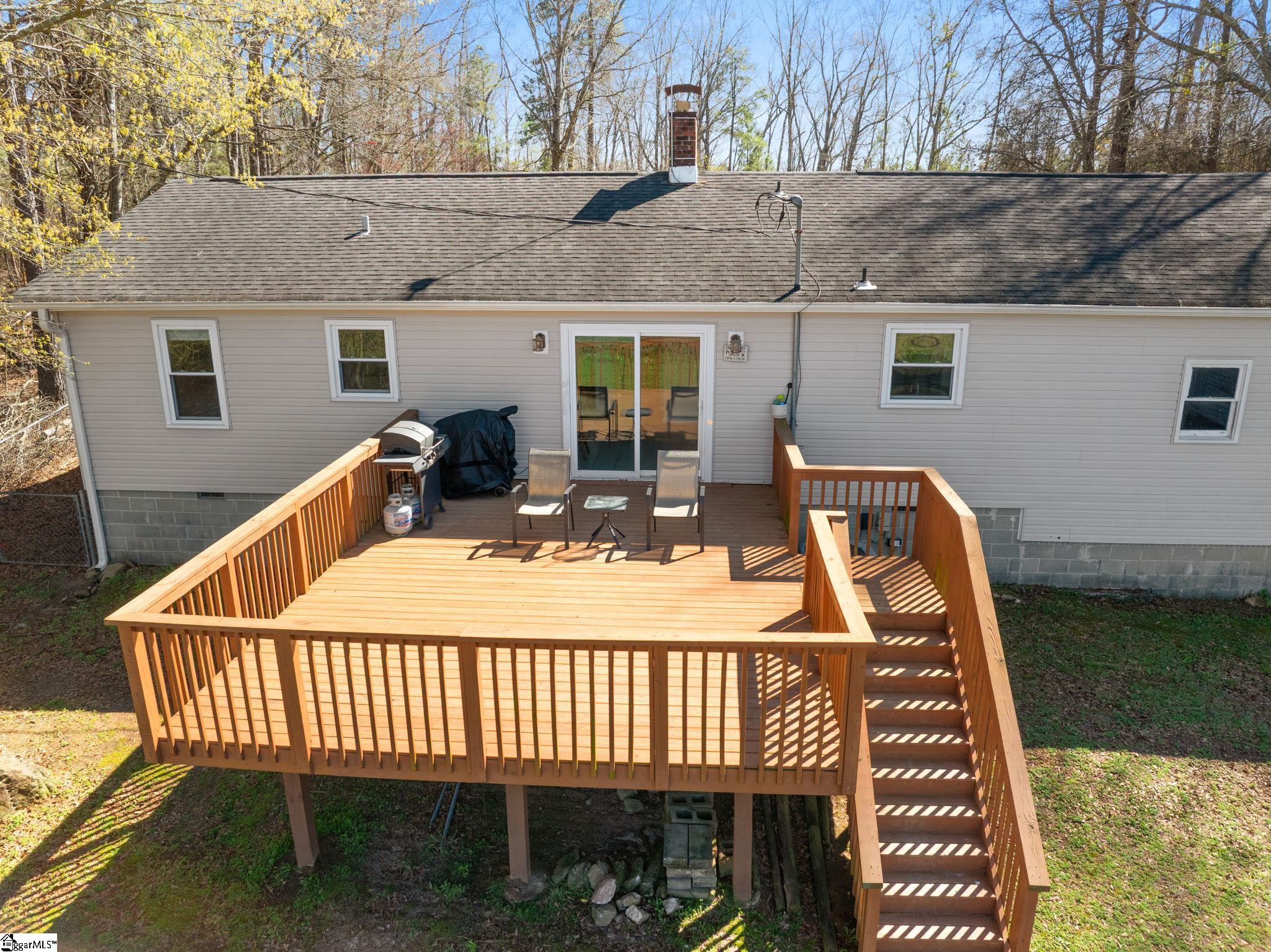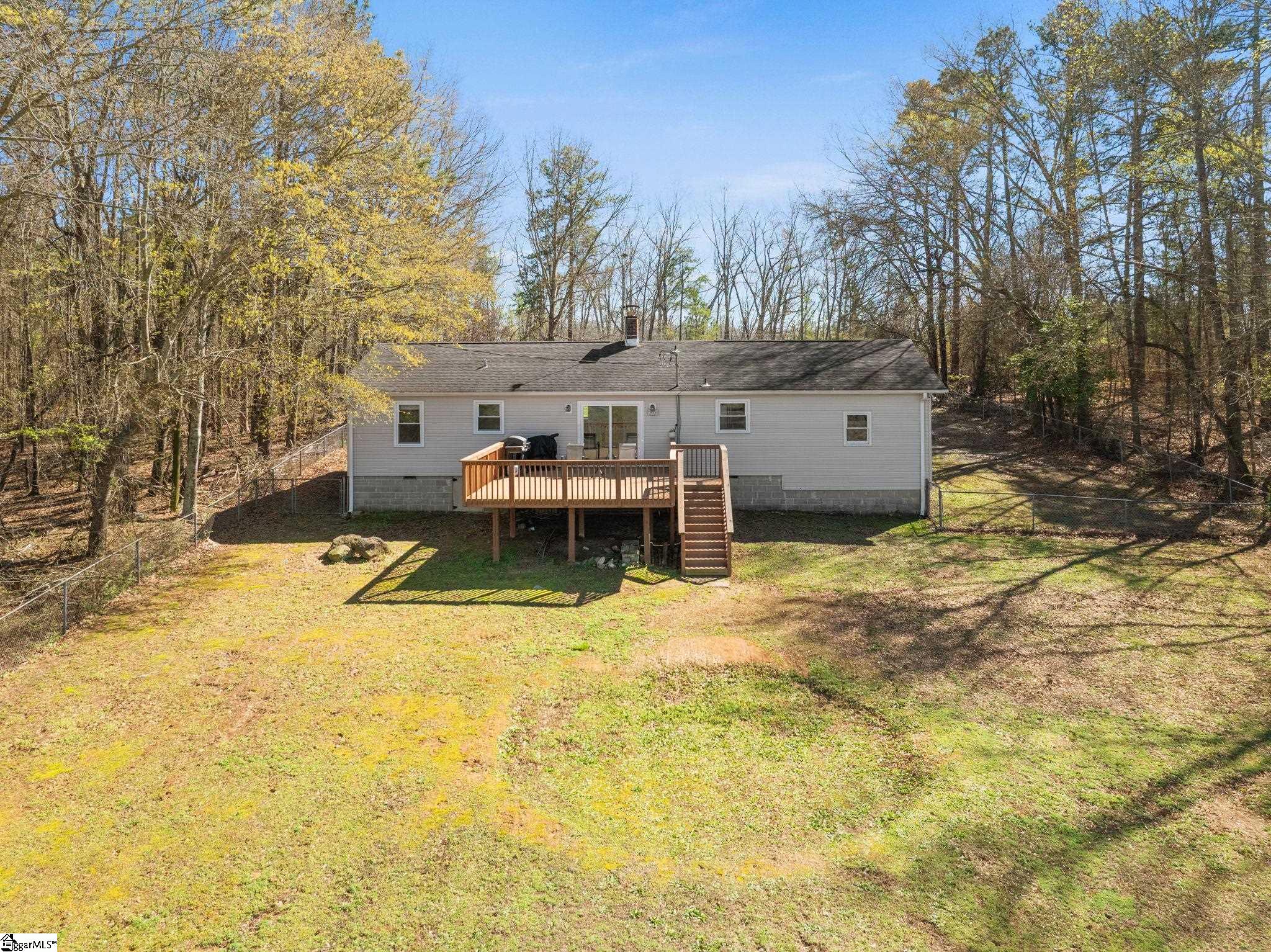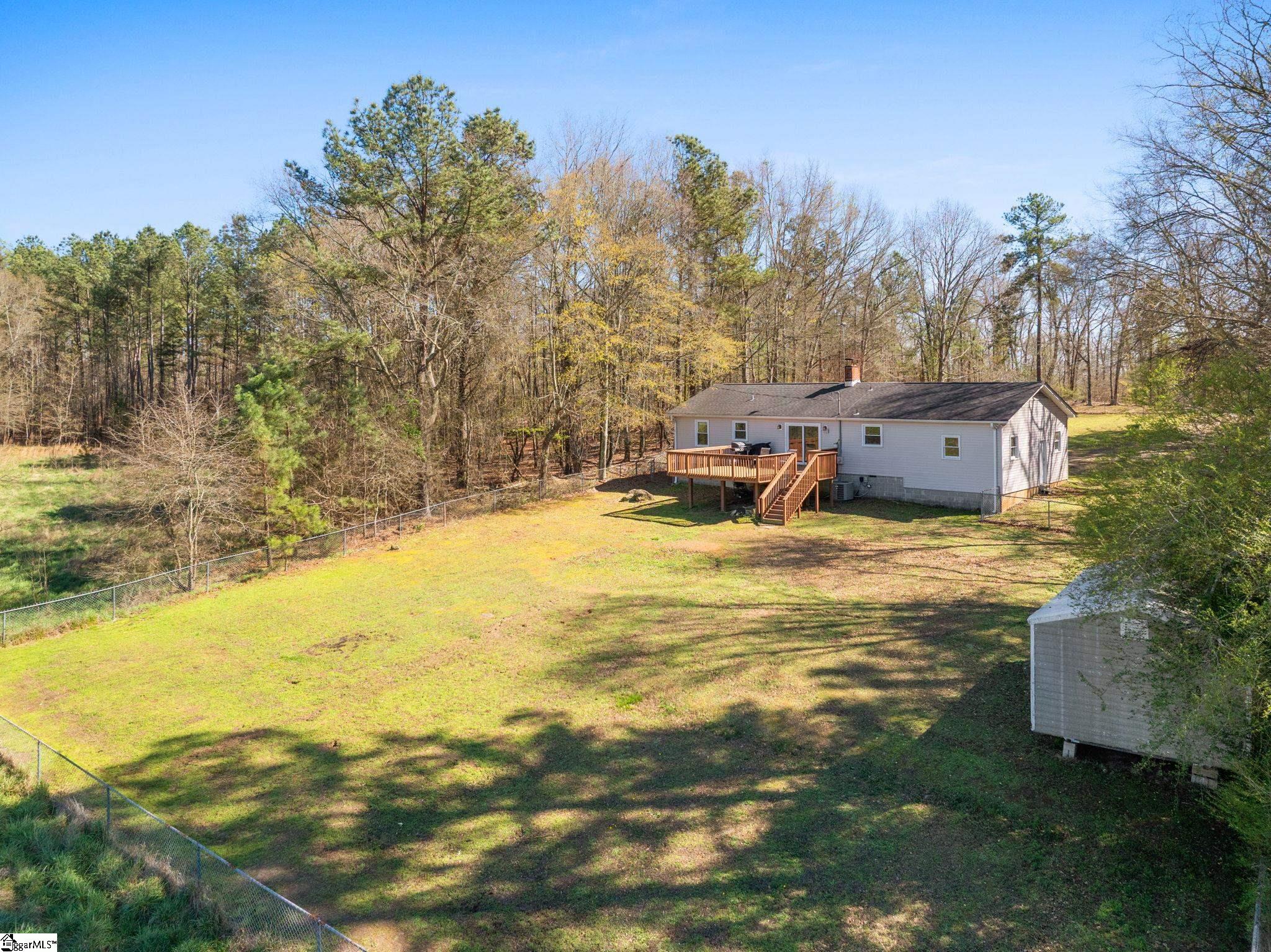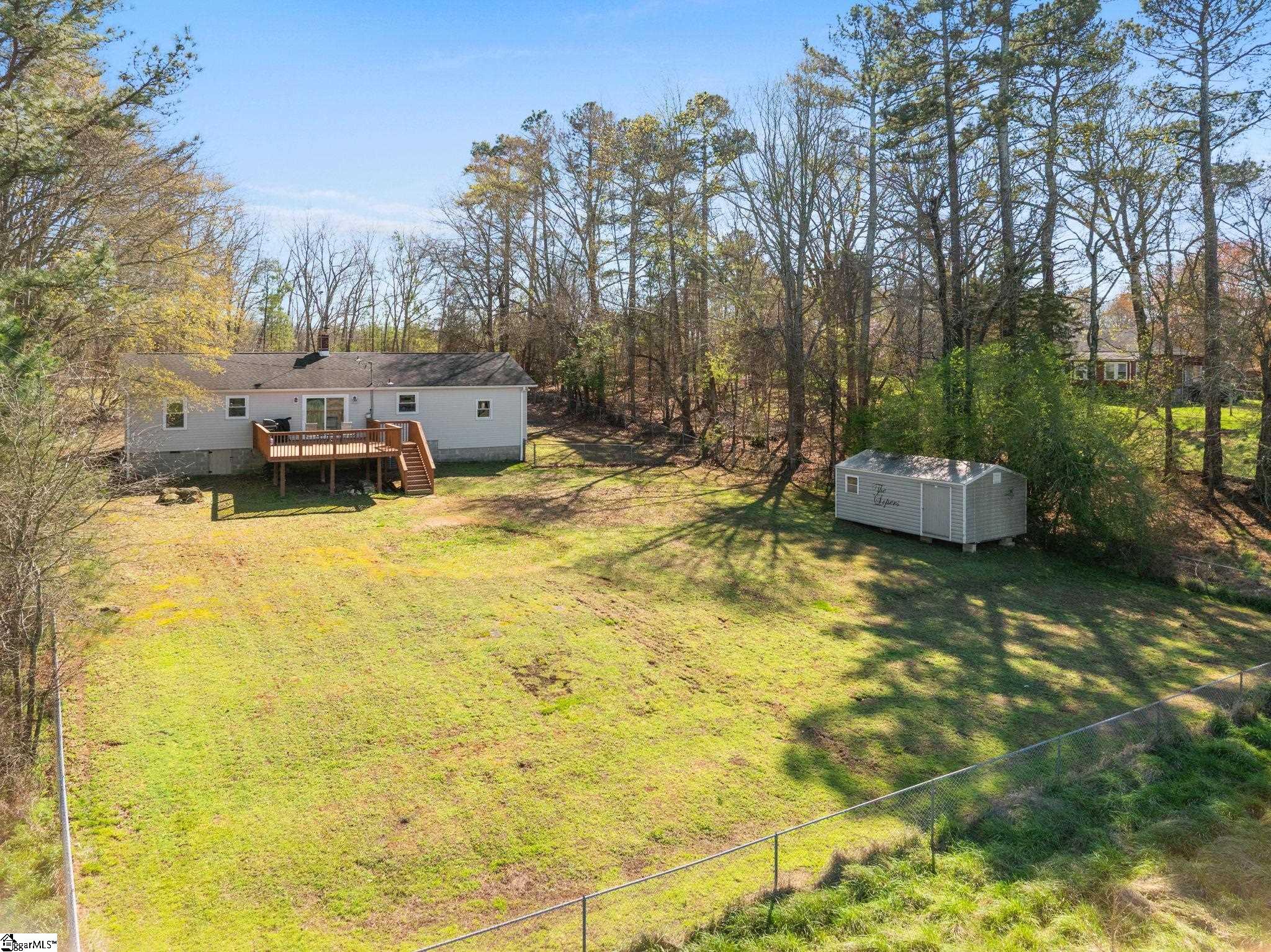 If peace and privacy have been calling your name this is what you've been waiting for - 814 Jenkins Bridge Road. This gorgeous 2/1 home, set on over half an acre, is surrounded by nature. This beautifully refreshed home offers a rare combination of quiet, space, and everyday convenience all just minutes from downtown Simpsonville. The sellers have recently repainted and added fresh landscaping so all you have to do is move in! The kitchen features freshly painted cabinets, granite countertops, stainless steel appliances, and a spacious dining area overlooking the great outdoors. This is one of the largest living rooms that you will find at this price point. The large window allows natural light to pour in. Step outside and it only gets better. The large deck is the perfect spot for morning coffee, weekend hangouts, or simply enjoying the peace and quiet of your own backyard. When it comes to storage, you'll be pleasantly surprised by what you can fit inside the one-car garage. The detached 10x20 shed has power, giving you flexibility for storage, hobbies, or a future workshop. If youve been searching for your first home or a place where you can finally live without the hassle of HOA restrictions book your showing today!