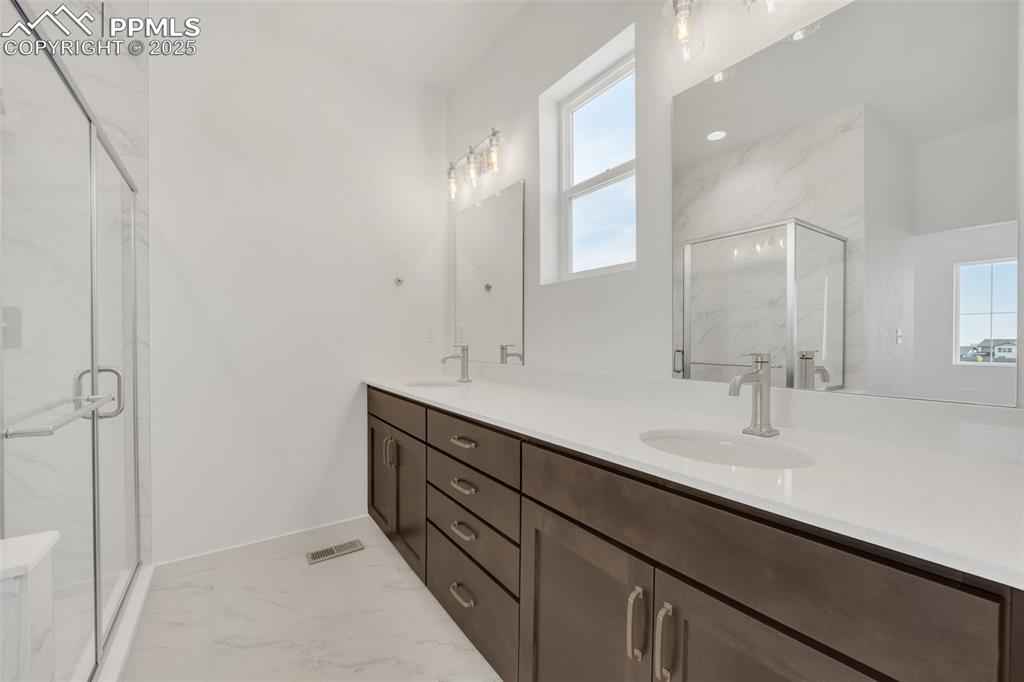 Beautiful Fully Landscaped Home with a 38' Tandem Garage in Sterling Ranch!xD;xA;xD;xA;Discover the Merionx2014;a thoughtfully designed paired home that brings together modern finishes, open living spaces, and exceptional functionality. The main level features a bright, open-concept layout with a spacious kitchen showcasing a center island and a window over the sink that fills the space with natural light. The dining and living areas flow seamlessly, highlighted by a rear wall of glass that opens to the beautifully landscaped outdoor space. A convenient powder bath is located near the patio for easy indoorx2013;outdoor access. Upstairs, the primary suite offers a spa-inspired 4-piece bathroom and a walk-in closet. Two secondary bedrooms share a well-appointed hall bath with double sinks. A dedicated study area and a full laundry room add everyday convenience. Designed for effortless living, this low-maintenance home blends modern sophistication with thoughtfully curated spaces that let you enjoy comfort without the upkeep.xD;xA;xD;xA;The impressive 38' tandem garage provides outstanding space for vehicles, storage, or hobby equipment. With landscaping included and taxes currently based on land only, this home presents an excellent opportunity.xD;xA;xD;xA;Measurements and square footage are approximate and may vary. Information deemed reliable but not guaranteed. Contains Virtually staged photos