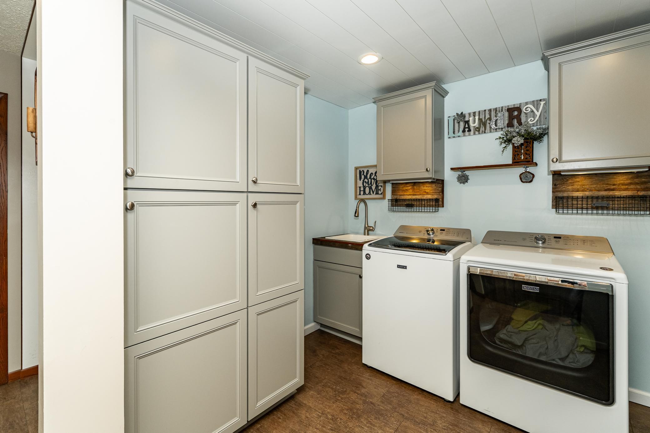 Step inside and feel instantly at home. Completely remodeled and thoughtfully upgraded, this move-inready gem offers the comfort of true main-floor living with three bedrooms, two bathrooms, and aperfectly placed powder room off the garage - ideal for those quick "wash-up" moments before heading intothe heart of the home. The kitchen and laundry room were beautifully renovated in 2018. The kitchenitself is a standout. Modern appliances, smart layout, and effortless flow make it perfect for weeknight dinners . Slide open the doors from either the kitchen or living room and step onto the expansive 30' x14' composite deck - a true outdoor retreat. The two-car garage is a year-round workspace or hobby havenwith a gas heater, fresh drywall, and durable PolyTek flooring. Outside, major upgrades completed in 2020- LP SmartSide siding, Pella windows with integrated blackout shades, and a newer roof. Head downstairsto the finished lower level, completed in 2023. A generous family room invites movie nights and gamedays, while the stylish kitchenette (with refrigerator, microwave, and sink) makes entertaining a breeze. A spacious bedroom with walk-in closet and a spa-inspired bathroom featuring heated floors and anoversized walk-in shower create the perfect guest suite or multi-generational living. Comfort is truly built into this home. The 2019 HVAC system includes all new ductwork, a furnace with whole-house air exchanger, humidifier, dehumidifier, and central A/C. Step outside and enjoy a beautifully landscaped yard filled with perennials, ornamental grasses, and a row of 15-20 ft Norway Spruce trees that will grow into a natural privacy wall surrounding the backyard. Throughout the home, authentic barn wood adds a touch of rustic character. With abundant storage and a layout designed for modern living, this home doesn't just check the boxes - it fills them with style, comfort, and heart.