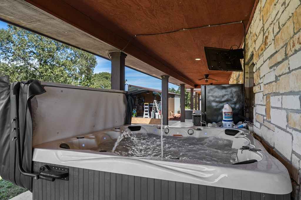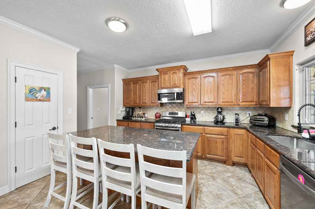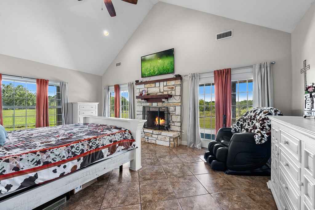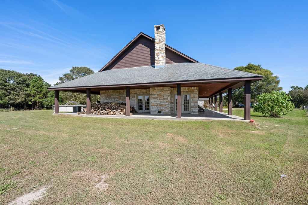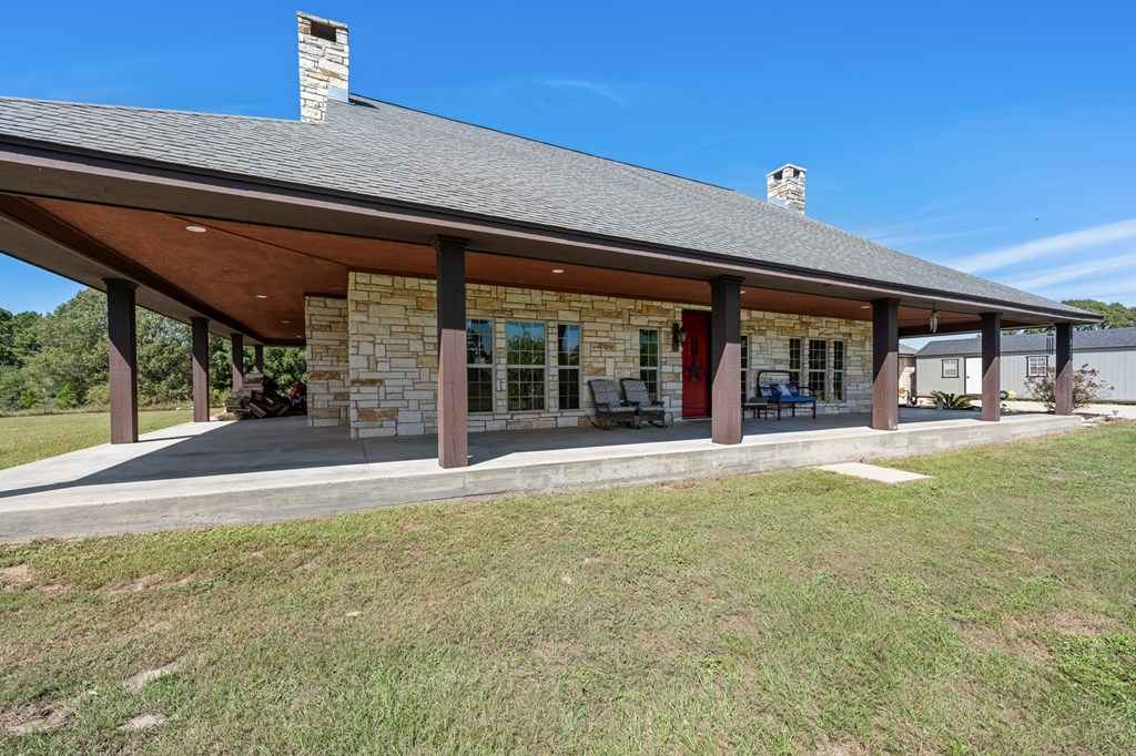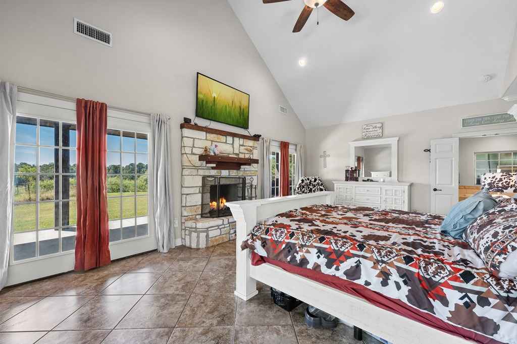 Set on 11 acres of open and wooded land, this 3-story ranch-style home features an expansive wrap-around porch, vaulted cathedral ceiling, and stone fireplace in the living area. The kitchen offers abundant cabinet storage, a walk-in pantry, and a large dining area with breakfast bar seating. The primary suite includes an ensuite bath and fireplace. Two laundry areasupstairs and downstairsfor convenience. Tile floors on the main level and new 25-year Stainmaster carpet upstairs. Outdoor bar, above-ground salt-water pool, and hot tub for relaxation. Large metal workshop with power, 3-space carport, and multiple electric/water hookups for RVs or mobile homes. Wooded back area with deer feeders provides space for hunting and livestock.