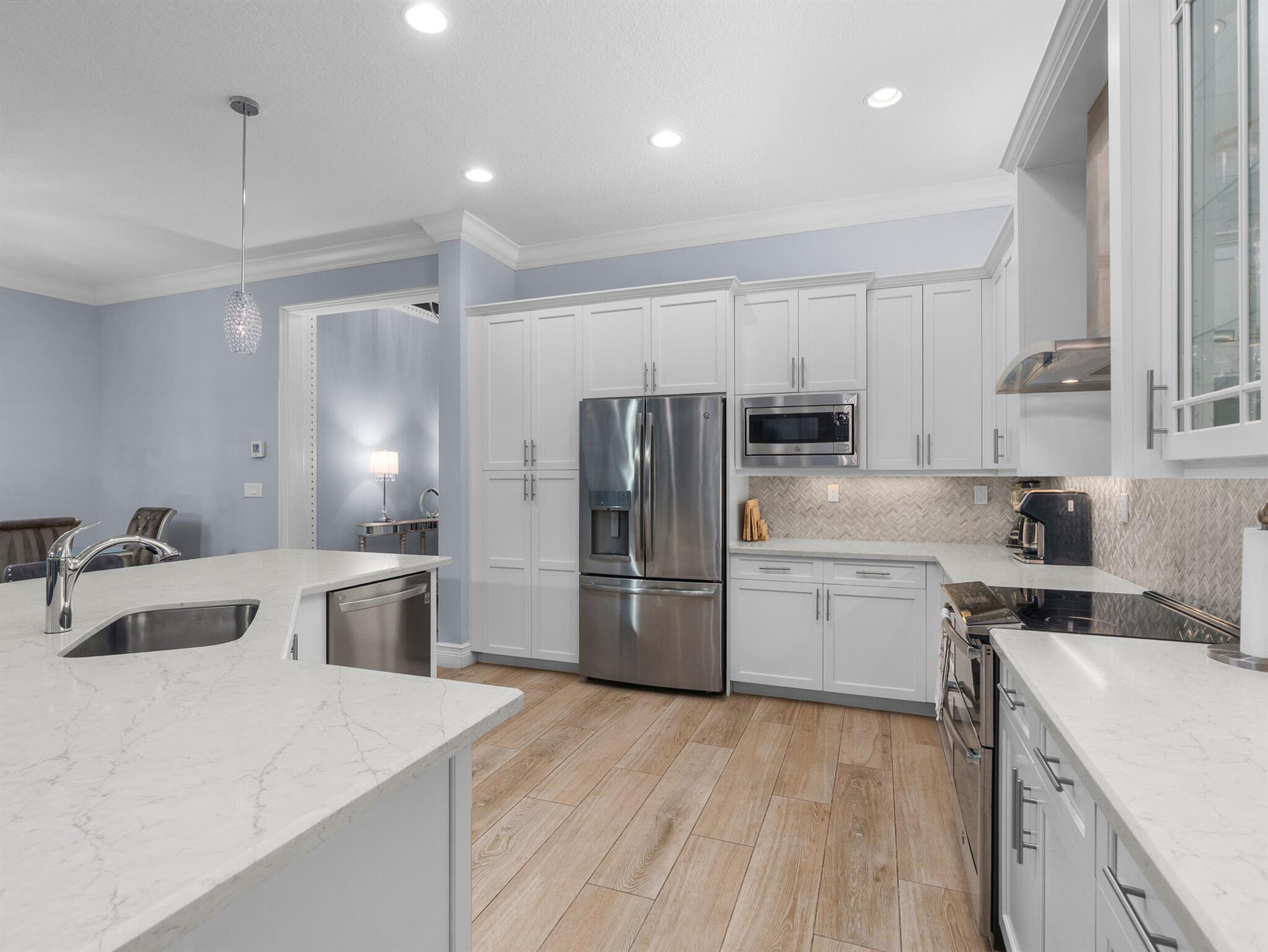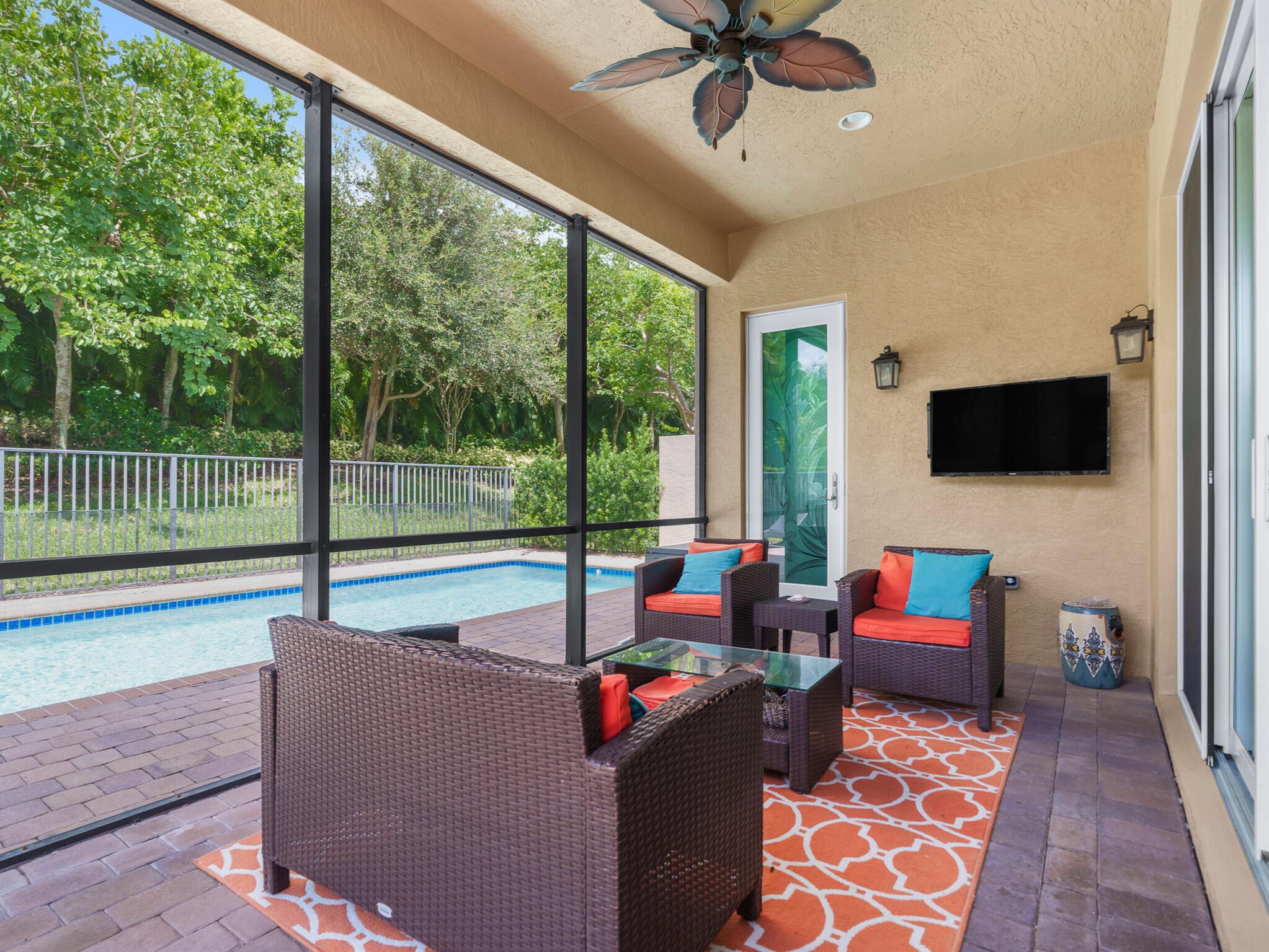 This beautiful custom home is 3002 total sf, and 2009 sf of living space, 3 bedroom, 3 full bath + Den/office, or 4th bedroom, 2 car garage, The Bimini model sits on a private lot. Includes impact windows, open floor plan, all custom floors, recessed lights with custom light package and custom trim package . The gourmet kitchen w quartz countertops, custom backsplash, built-in pantry cabinet, stainless steel appliances and under cabinet lighting. Breakfast area, dining room . Can be sold furnished or unfurnished. Screened Patio, heated pool. New ultra quiet generator, with buried LP Tank, fenced yard. HOA provides Lawn, all garden maintenance, sprinklers basic cable, clubhouse amenities.