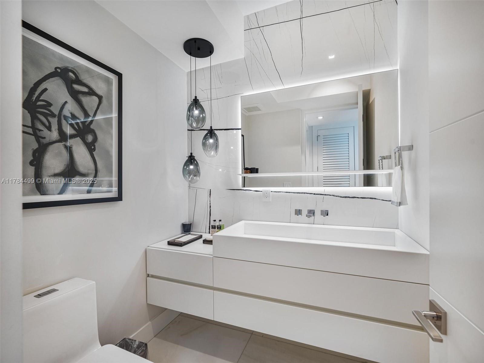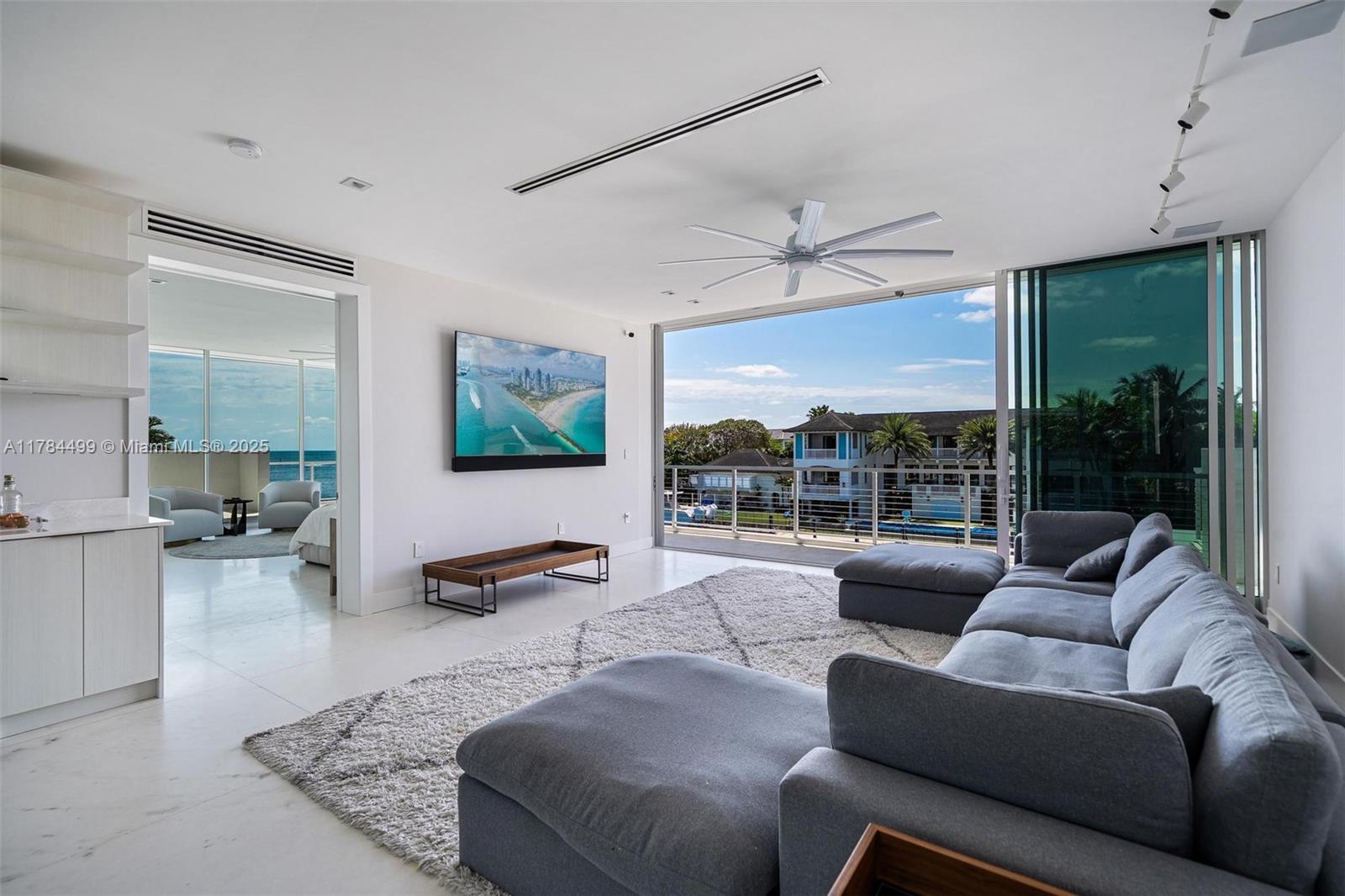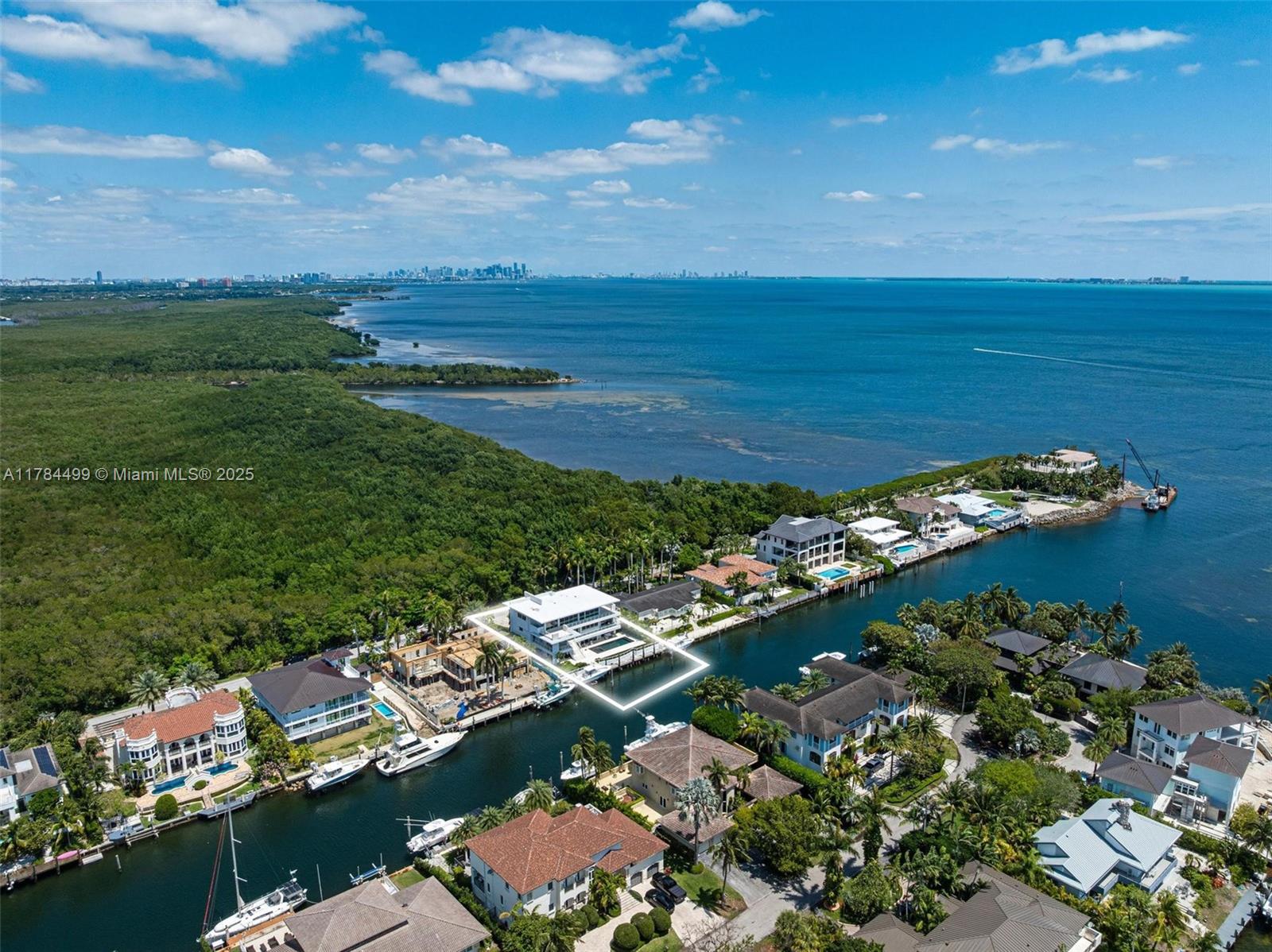 Waterfront luxury reimagined with 100 of frontage & a 15,000 lb boat lift for up to a 40 vessel. This 3-story, 9,911 SF smart home blends sleek Italian design with cutting-edge tech. The first floor features a private staff suite, gym, steam spa, staff kitchen, bar, full bath, and a 2,500-bottle wine cellar. The second level stuns with 48x48 marble floors, chefs kitchen with Miele, Subzero, Italian glass cabinetry, 2 dishwashers, 325-bottle wine cellar, plus office, laundry, and ensuite bedrooms. Upstairs, the primary suite is joined by two additional ensuite bedrooms and a second living room. Fully automated smart home with Control4, 19 security cameras, Trane A/C, ESW impact windows, electric blinds, custom closets, dual kitchens, dual laundries, and A/C 2-car garage. Open Bay Views!