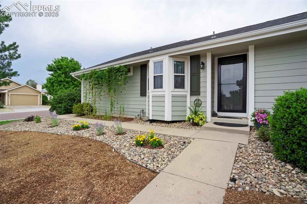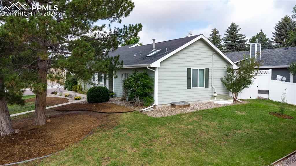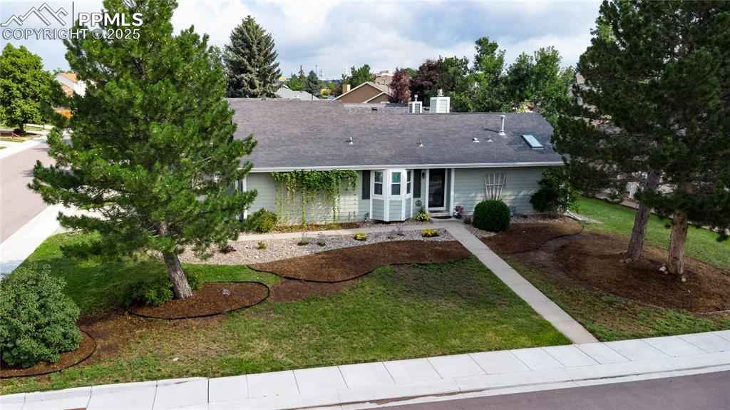 Ideally located on a corner lot in one of Briargate's most popular neighborhoods, this Fairfax rancher offers a thoughtful layout with functional main- level living & room to grow in the partially finished basement! Beautiful natural wood flooring & vaulted ceilings create an open, welcoming vibe the moment you enter. The great room is enhanced by a gas fireplace with a solid wood mantle, flowing seamlessly into the dining area with walk-out access to a lovely private back yard & patio; perfect for blending indoor & outdoor living! The spacious kitchen stands out with abundant cabinet space, & a bay window with a charming window seat that adds character & smart storage for larger appliances! With a pantry, breakfast bar, & generous prep space, the kitchen is the hub of this incredible home! The primary ensuite is tucked away for a private retreat & offers dual closets, dual sinks, a newly tiled shower, & a skylight that fills the space with natural light. The main level is complete with an additional bedroom & full bath on the opposite side of the home, plus a conveniently located laundry area near the primary suite (washer & dryer included). The basement provides added living space featuring a third bedroom with a spacious walk-in closet, & another full bathroom. The expansive unfinished area provides flex space for recreation, hobbies, workspace, home gym, storage or anything you envision; a blank canvas ready to meet your needs! Additional highlights include central air conditioning, an automatic sprinkler system, a radon mitigation system, & updated windows, exterior paint & mechanicals, all within the past 10 years. Finally, to top it all off (pun intended), a brand NEW roof offers enhanced peace of mind & added value for the next homeowner! This incredible home is move-in ready & a rare find! Located near D-20 schools, parks, a walking path, shopping & entertainment, & with NO HOA, all this home needs is a NEW owner & that - should be YOU!