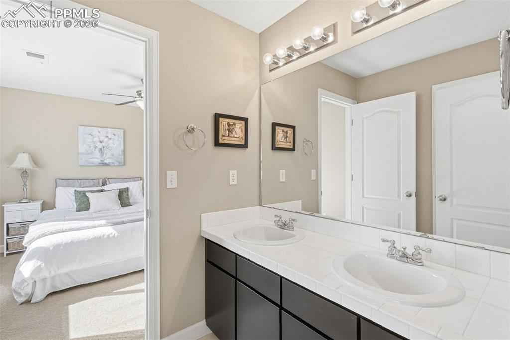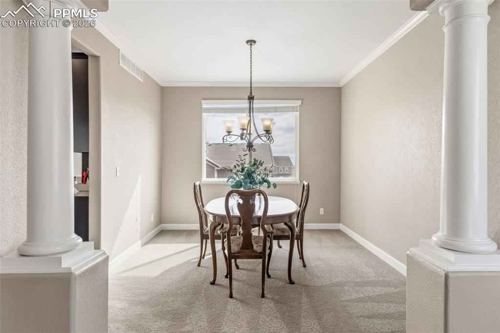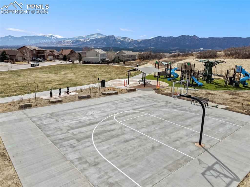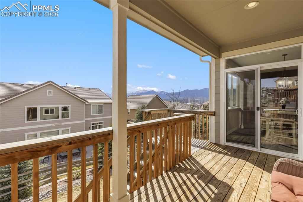 Highly Desirable Northgate home with Pikes Peak Mountain views in top rated D-20 schools just minutes away from the Air Force Academy, Neighborhood Park, Ford Amphitheater, I-25 access, premier shopping, dining, and entertainment, making this home a perfect blend of comfort, convenience and Colorado Living. Upon Entry you'll take in the grand staircase 18-foot ceilings and French doors to the vaulted ceiling, bay windowed office and the rustic elegance of the engineered expresso hardwood floors. The large kitchen has granite countertops, double ovens, stainless steel appliances a heated water dispenser, working desk space with outlet to charge your phone or computer, it's open to the Living room that has a gas fireplace and check out that view from the walk out deck. The large Primary bedroom has a tray ceiling and is attached to a large 5-piece bathroom and walk in closet, the toilet seat is heated and has water access like a duvet. Every bedroom has private access to a bathroom and a ceiling fan. The unfinished walk out basement has unlimited potential to create your dream space.