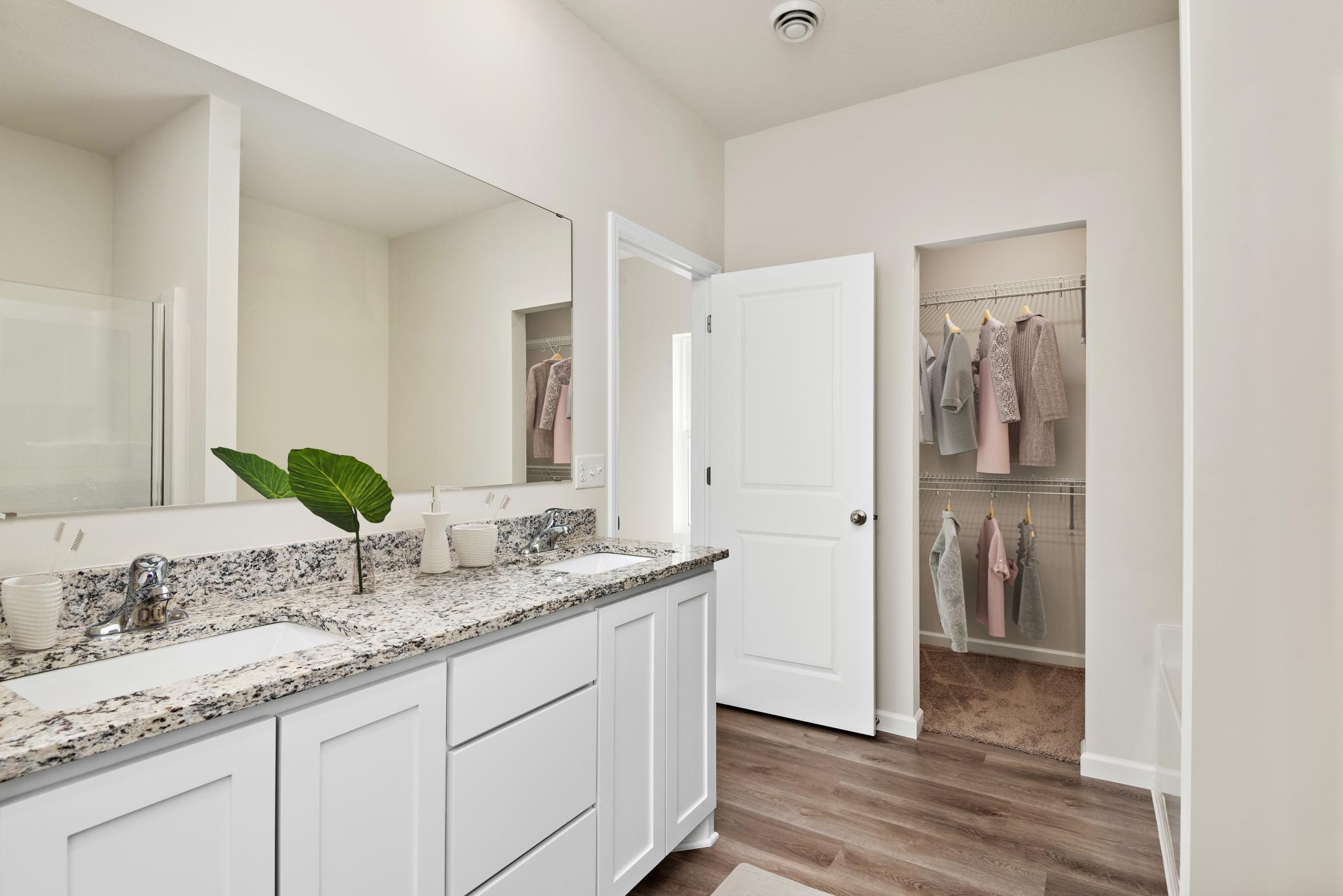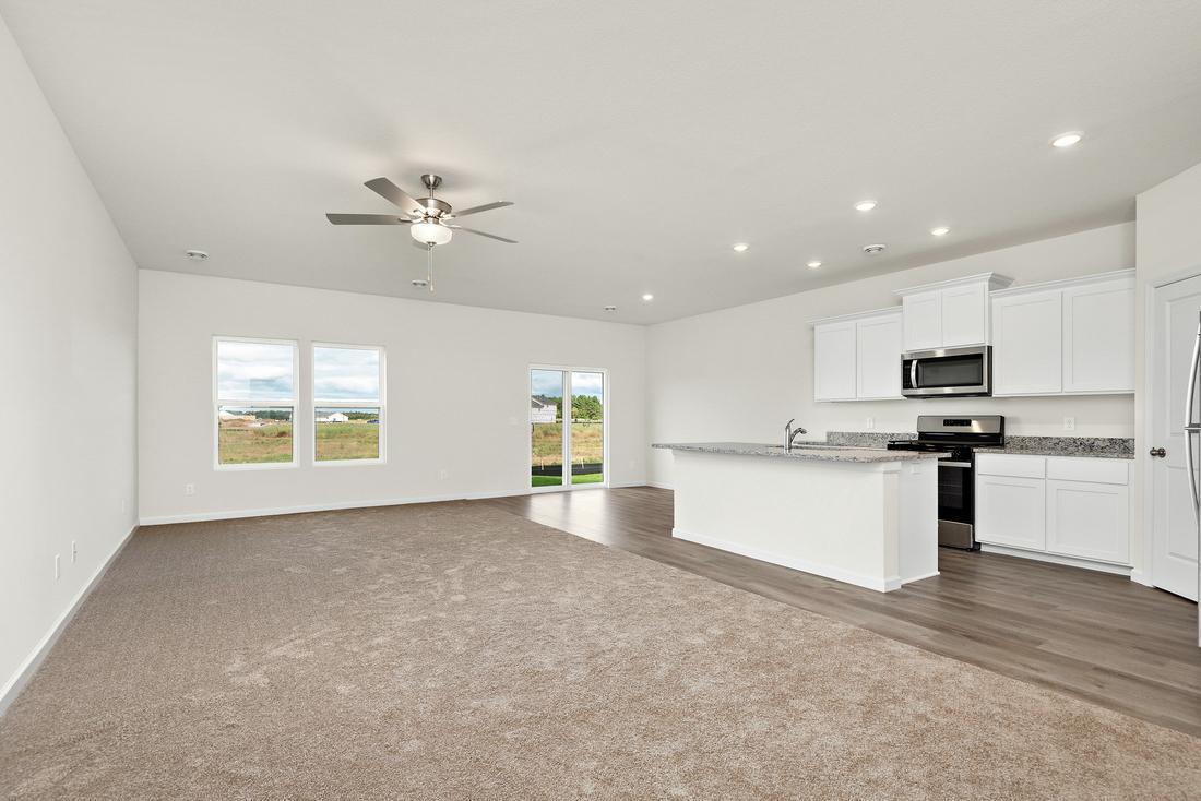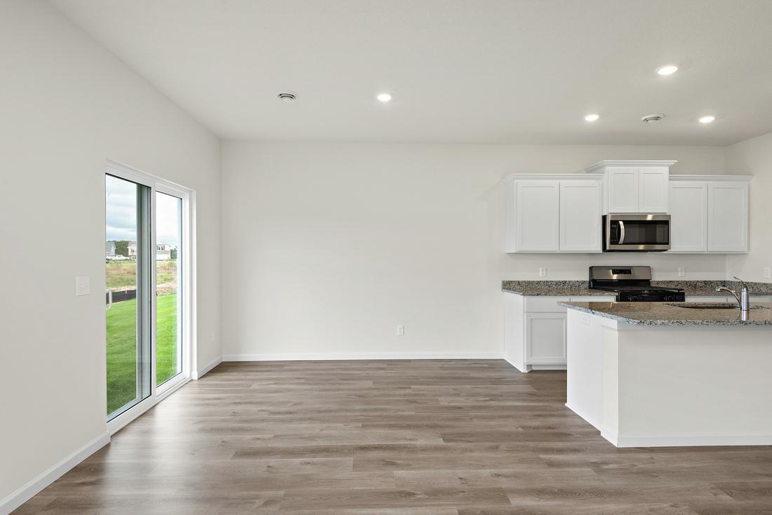 The Noble by LGI Homes offers one level luxury living with three bedrooms, two bathrooms, a flex room, and a super spacious entertainment area all on the same floor. The open family and dining area allows you and your guests plenty of room to relax and enjoy time together. The kitchen showcases many homeowner favorite upgrades such as luxury vinyl plank flooring, granite countertops, handcrafted wood cabinets, island with undermount sink, stainless steel Whirlpool appliances, and more, all included in the price of the home. The large master suite with walk-in closet is complete with an En-suite master bathroom boasting a double sink vanity and separate shower and soaking tub. Two additional bedrooms and a flex room with French doors make this home ready for whatever needs you have! Let the Noble show you what one level luxury living really looks like! The cherry on top: This home is located on a large corner lot with a nice private backyard that includes some beautiful, mature trees, and a fantastic sunset view over the field at night!