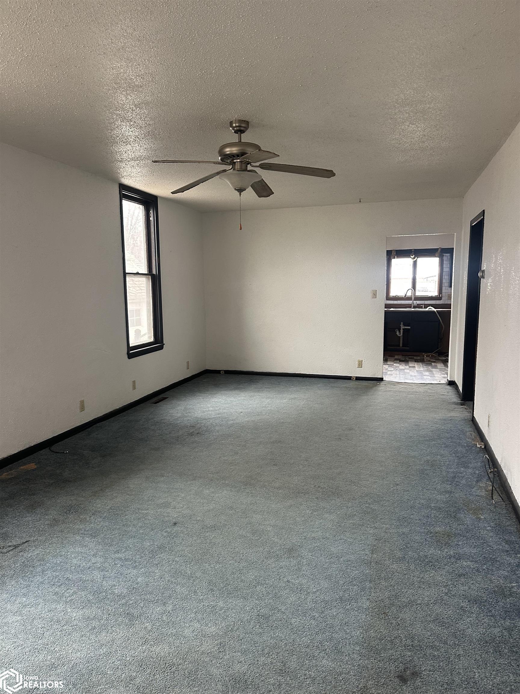 Two bedroom home with open front porch and two car detached garage. Open living/dining room. Main floor laundry.