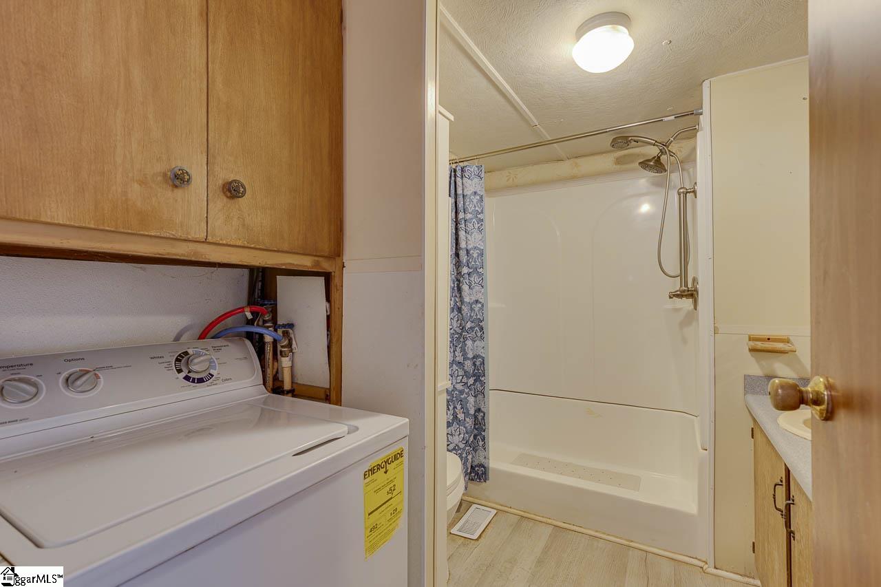 Great find on a half acre and close to downtown Easley! Looking for space, privacy and a great location? You found it! This could also be a great investment property. This 3 bedroom, 1 bath detitled mobile home has so much to offer, including an extra room that is perfect for a home office guest space or playroom. Some of the features you will love is a big family room addition for extra living space, roof added, half acre of gorgeous land with mature trees, outbuilding with parking and workshop area, lean-to on the side for your boat or RV, and just minutes from downtown Easley to be close to shopping, dining and more. Tons of potential and priced to move! Homes like this do not last long. P/O