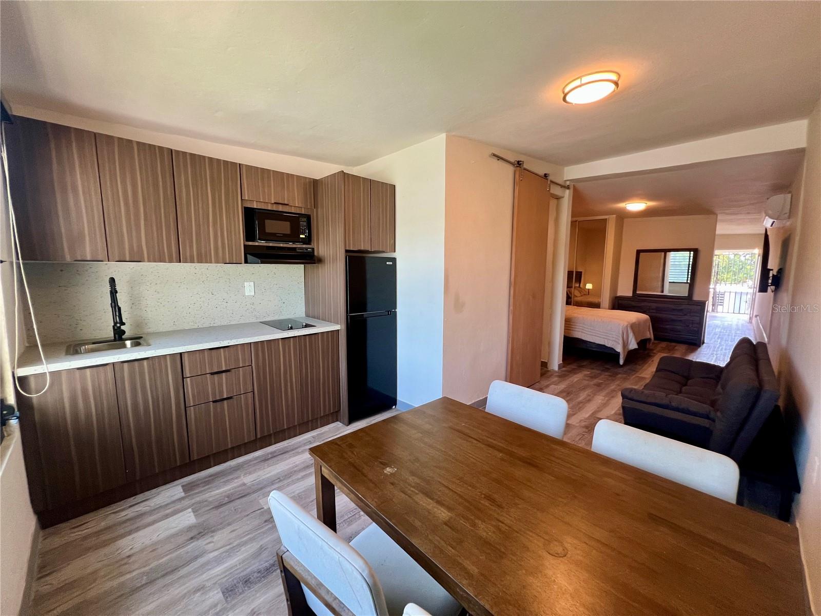 I present to you this beautiful and cozy studio between Plaza del Sol and Ro Hondo, ideal for those who wish to live in comfort and privacy from day one. Upon entering, you are greeted by a furnished living room that connects to a terrace perfect for relaxing. The bedroom area comes equipped with a bed, dresser, nightstand, closet with organizers and mirrored doors, plus a 50 TV. The kitchen is perfectly functional and modern, with PVC cabinets, a stove, range hood, refrigerator, and a dining area ready for you to enjoy your meals. And the best part everything is included! Water, electricity, and AeroNet high-speed internet. The studio is located on a quiet cul-de-sac, offering peace and privacy, and includes one parking space. You'll be minutes from the Hyatt Hotel, Plaza del Sol, Science Park, Sams Club, Ro Hondo, and the expressway.Appliances included: Refrigerator, stove, microwave, electric water heater, split air conditioner.Furniture included: Sofa, dining set, bedroom set, TV, TV stand, curtains, and decor.
