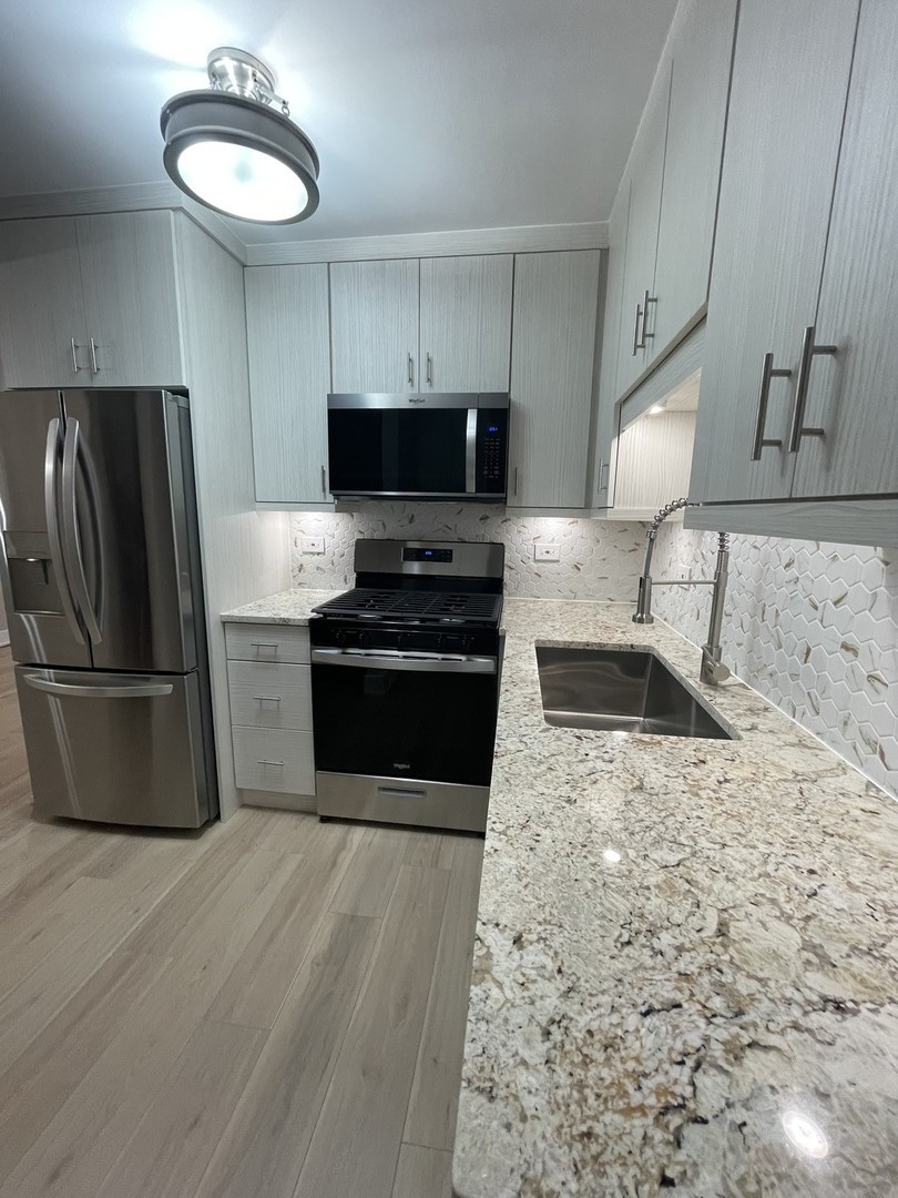 Your clients will love this gut beautiful, gut rehabbed, 3 bed / 1.5 bath single family home with: A new, custom kitchen with granite countertops, white cabinets and stainless steel appliances, including a dishwasher & microwave! A great layout with a living room, family room and laundry room, but not that large (1,200 estimate). Beautiful new bathroom with custom tile work! New flooring, new woodwork and windows! Your own washer and dryer! A good sized backyard! Great Burbank location (85th and Central Ave), quiet residential street, near restaurants, shopping and ample street parking! Quick commute to Midway!