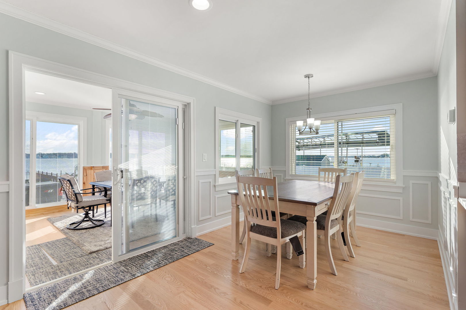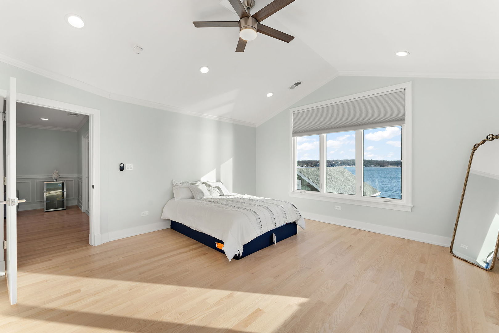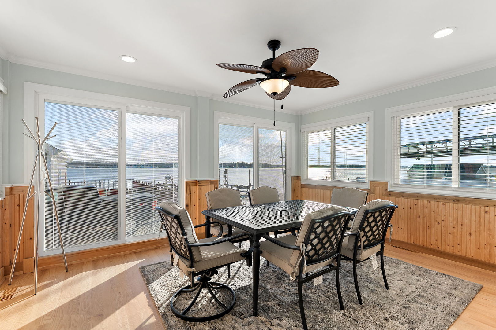 Experience lakefront living at its finest on beautiful Cedar Lake. This gated 3 bedroom, 4 bath residence offers breathtaking panoramic water views and a seamless open-concept layout designed for both everyday comfort and effortless entertaining. Walls of windows frame the lake from the main living spaces, filling the home with natural light and capturing stunning sunrise and sunset vistas. The spacious living and dining areas flow directly onto a large patio featuring a fully equipped outdoor kitchen --perfect for hosting summer gatherings by the water. A charming sunroom provides year-round enjoyment and opens to a private balcony overlooking the lake. The oversized garage includes a convenient ramp leading directly to the water, offering easy access for lake activities. With lake rights and a private pier, you can enjoy boating, fishing and waterfront relaxation just steps from your door. This exceptional property combines orivacy, security and unmatched views in one remarkable setting.