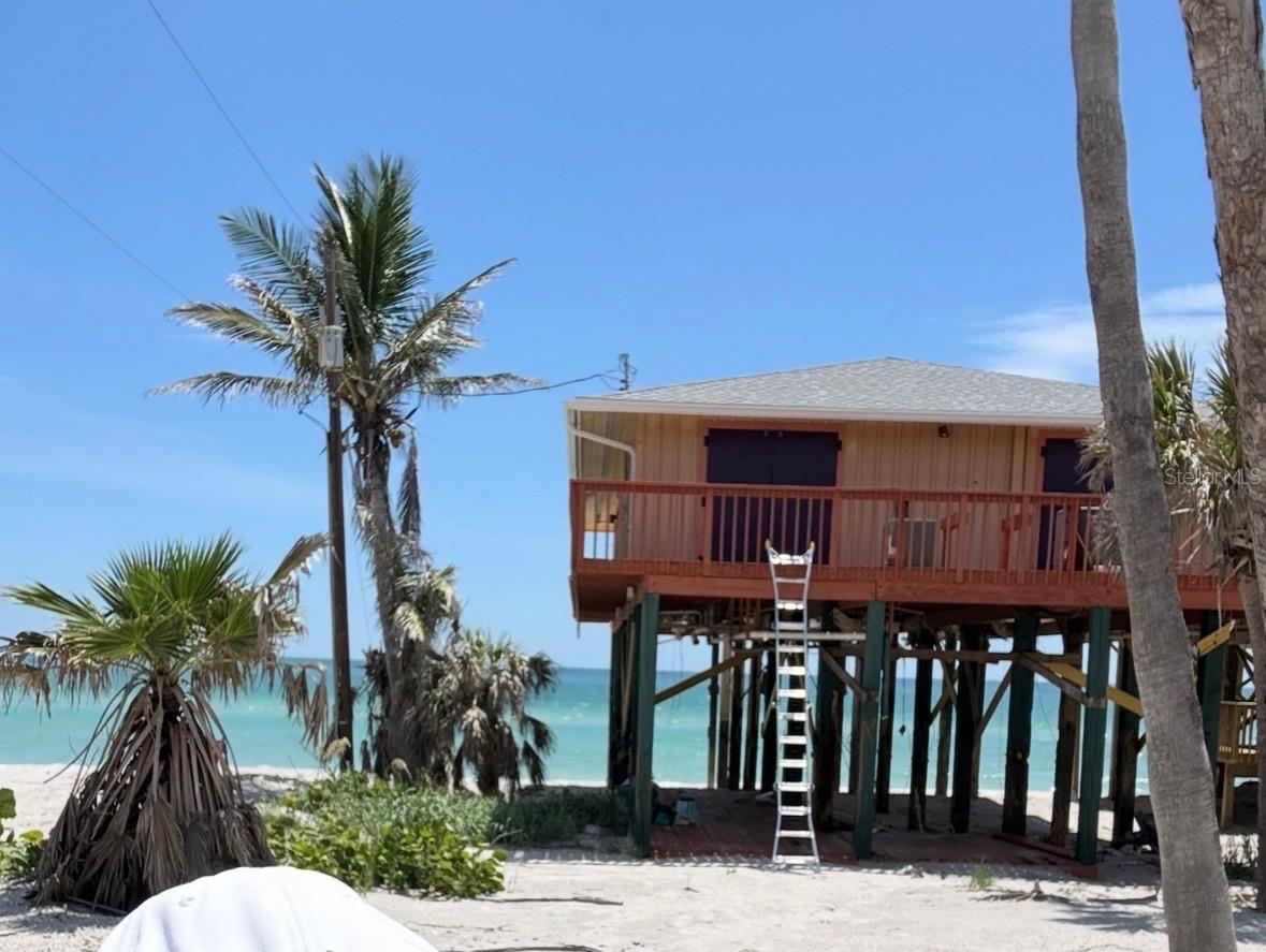 Escape to the quiet, unspoiled beauty of Little Gasparilla Island where sandy paths replace roads, golf carts replace cars, and the Gulf of Mexico becomes your backyard. Located directly on the beach, this stilt home sits on a prime stretch of shoreline offering sweeping water views, sea breezes, and the rare privacy only a boat-access barrier island can provide. You will soon be naming the dolphins and sea birds as they become a part of your everyday routine. If you enjoy watersports, you will never have to go far to set sail on the kayaks, wave runners or the Grady White. The dock is conveniently located and available for a minimal annual fee. The sunsets here are unlike all others. Breathtaking. The island is known for its remote, laid-back lifestyleno bridges, no crowds, just miles of beach, wildlife, and the rhythm of the tides. Accessible by private boat or water taxi, this is Old Florida at its most authentic. Contact details provided for the water taxi service and on island golf cart rental. The existing elevated home has sustained damage to the lower level. Property is being sold strictly for land value. Seller makes no warranties or representations regarding condition, repairs, or improvements. Buyers should conduct their own due diligence. This offering presents an opportunity for those looking to renovate, rebuild, or create a custom island retreat on a coveted Gulf-front parcel. There are no steps or lifts to the second floor. Bring your imagination along with your contractor. If youve been waiting for a chance to own a slice of Little Gasparillas secluded beachfront, this is your canvas.