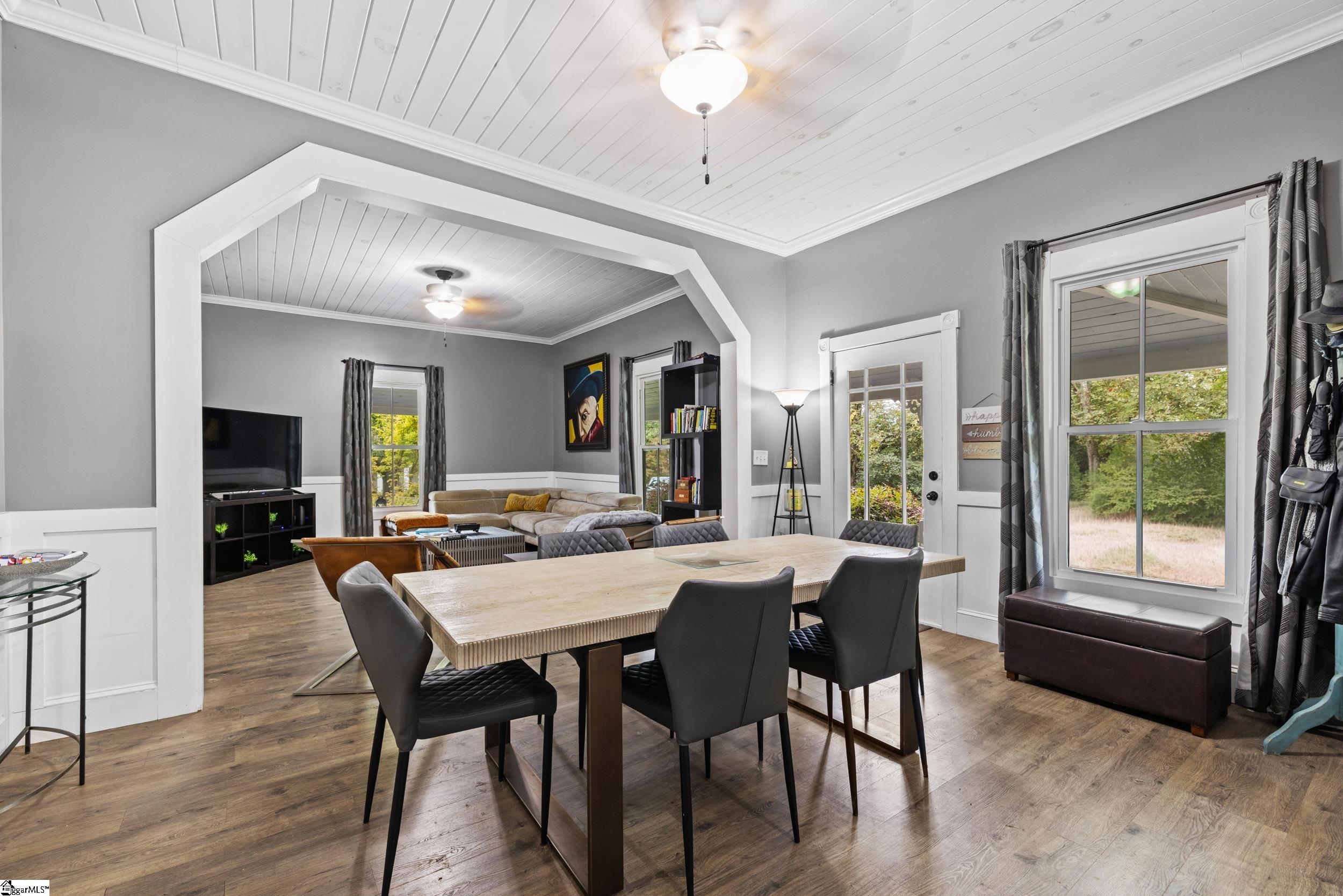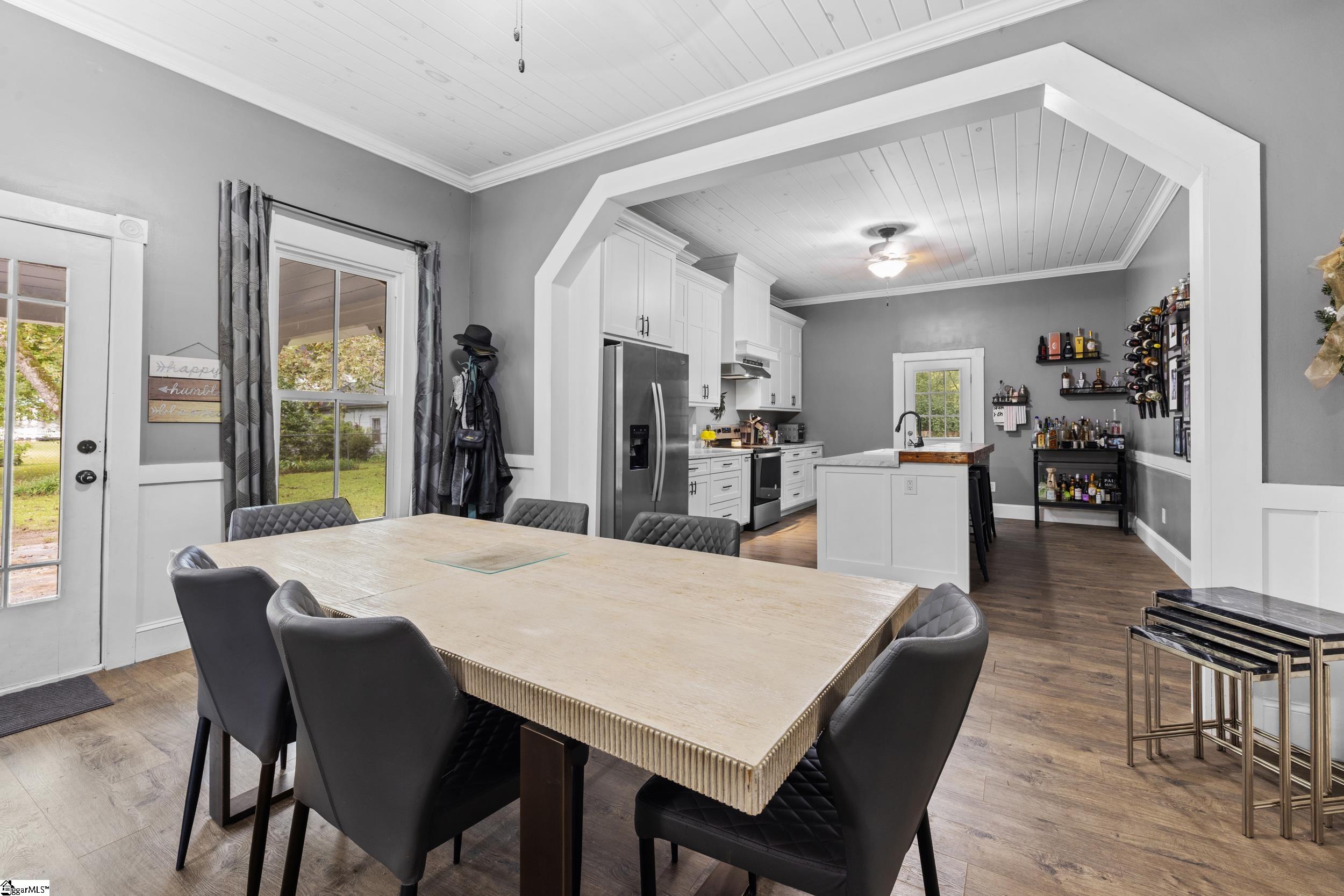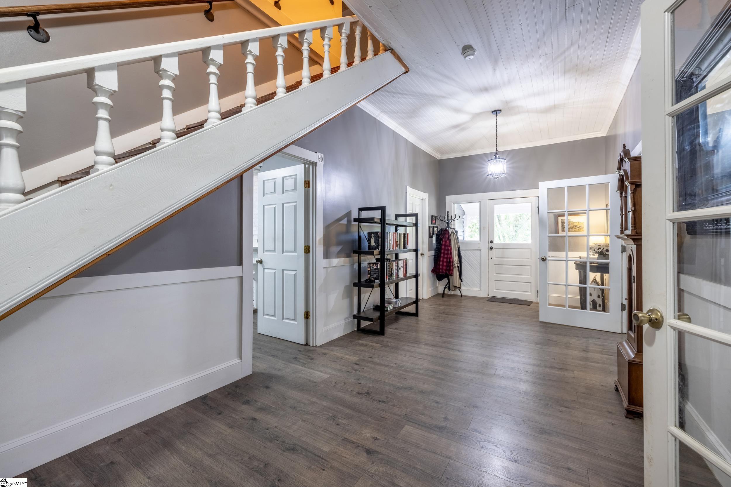 Enjoy the best of both worlds in this beautifully restored 1908 Southern farmhouse, renovated from the ground up in 2020 to preserve its classic character while adding todays modern comforts. One of the original homes in the area, this historic gem has been meticulously rebuilt to showcase early 20th-century craftsmanship alongside modern efficiency and style. Set on nearly a full acre in the heart of Townville, this home offers the tranquility of small-town living with easy access to I-85, and just a short drive to Anderson, Seneca, Clemson, and the scenic Cashiers, Lake Keowee, and Highlands areas. During the extensive renovation, Cox Builders added all-new electrical, HVAC, plumbing, cabinetry, lighting, windows, and applianceswhile repurposing much of the homes original wood into a striking staircase, accent walls, and a handcrafted bar that spans the length of the kitchen island. Outside, the home retains its timeless Southern charm with fresh exterior paint, decorative gable trim, and a welcoming wrap-around porchperfect for morning coffee or sunset views. The level lot is shaded by mature hardwoods and enclosed with a privacy-fenced backyard ideal for pets or gatherings. Step inside to discover high ceilings, spacious rooms, and an open floor plan that blends period details with new finishes throughout. Luxury vinyl and tile flooring highlight the main level, while the upstairs offers carpeted comfort in the bonus room and third bedroom. The primary suite features two large closets with built-in organizers and a private bath, while a central foyer provides an elegant space for heirloom furniture or art displays. Less than two miles from a public Lake Hartwell boat ramp, this property is a rare findoffering small-town charm, modern efficiency, and quick access to recreation and amenities.