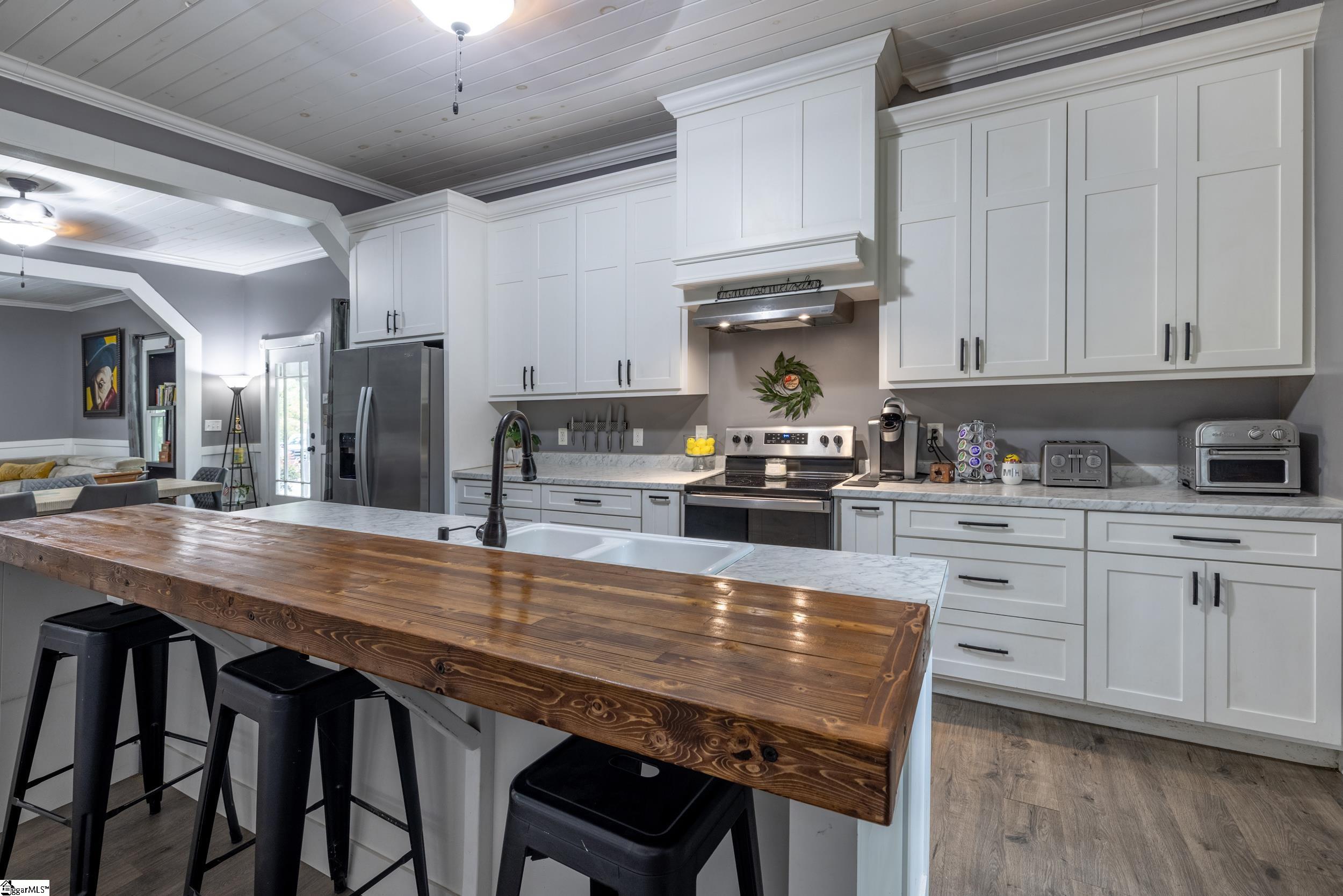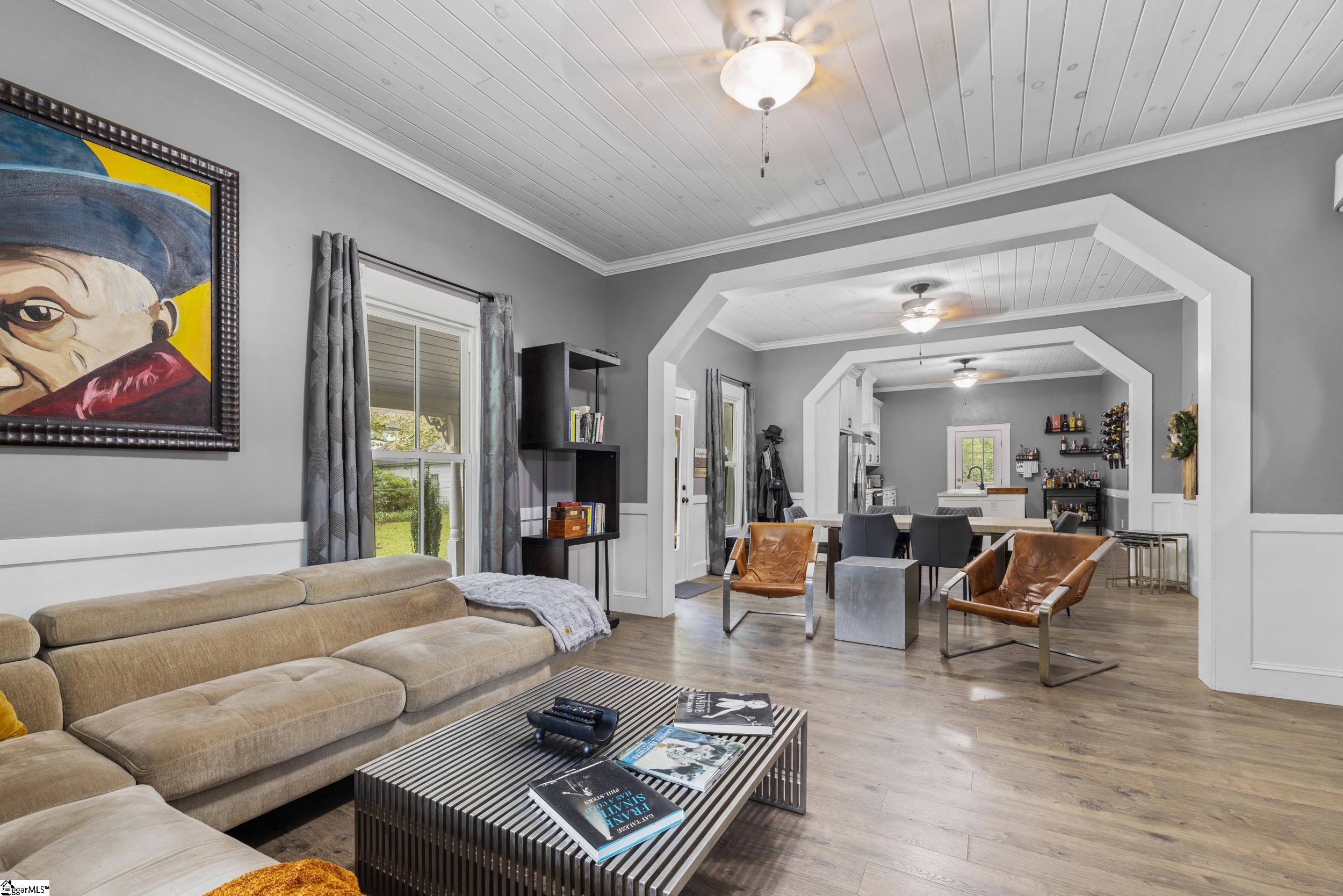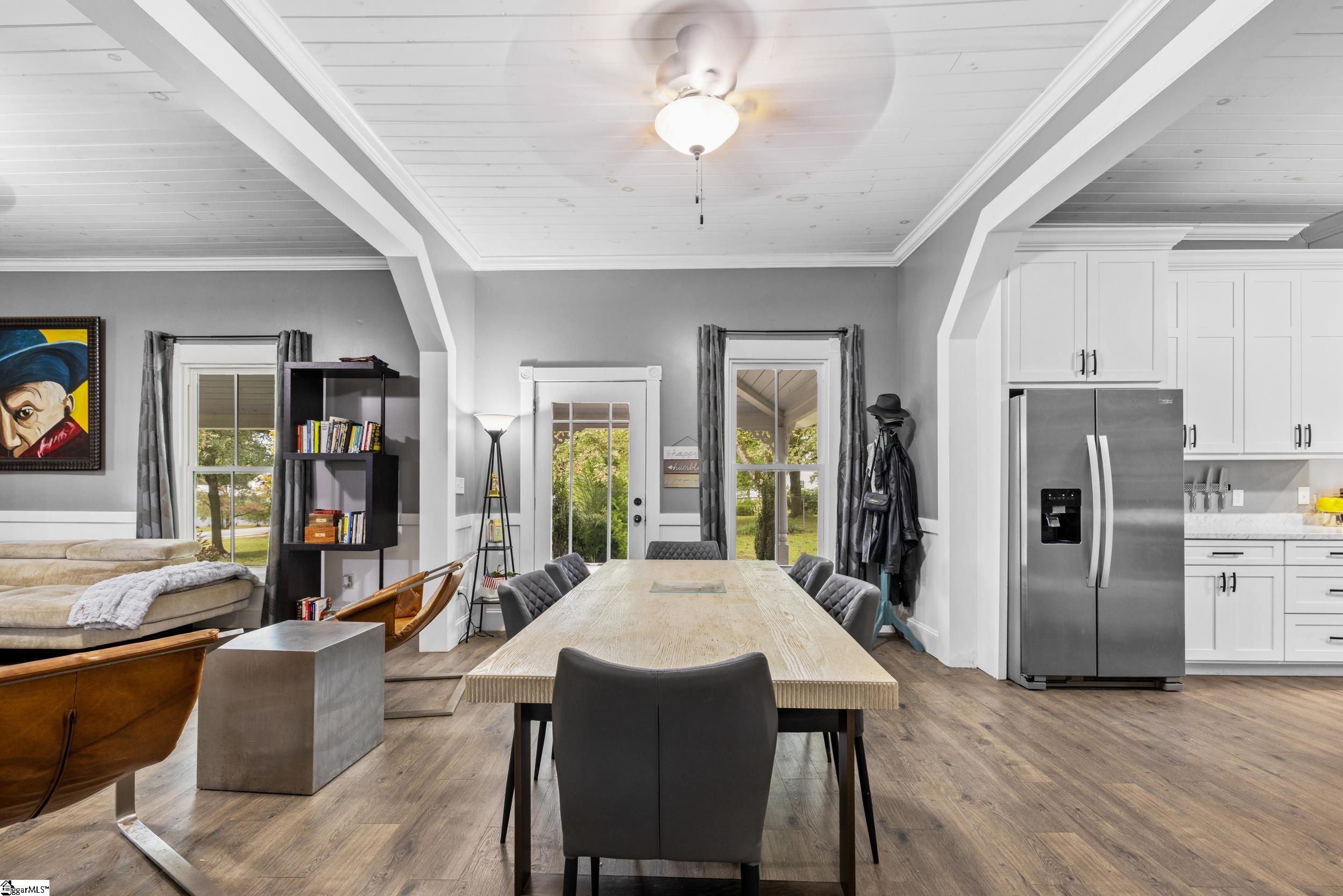 Enjoy the best of both worlds in this beautifully restored 1908 Southern farmhouse, renovated from the ground up in 2020 to preserve its classic character while adding todays modern comforts. One of the original homes in the area, this historic gem has been meticulously rebuilt to showcase early 20th-century craftsmanship alongside modern efficiency and style. Set on nearly a full acre in the heart of Townville, this home offers the tranquility of small-town living with easy access to I-85, and just a short drive to Anderson, Seneca, Clemson, and the scenic Cashiers, Lake Keowee, and Highlands areas. During the extensive renovation, Cox Builders added all-new electrical, HVAC, plumbing, cabinetry, lighting, windows, and applianceswhile repurposing much of the homes original wood into a striking staircase, accent walls, and a handcrafted bar that spans the length of the kitchen island. Outside, the home retains its timeless Southern charm with fresh exterior paint, decorative gable trim, and a welcoming wrap-around porchperfect for morning coffee or sunset views. The level lot is shaded by mature hardwoods and enclosed with a privacy-fenced backyard ideal for pets or gatherings. Step inside to discover high ceilings, spacious rooms, and an open floor plan that blends period details with new finishes throughout. Luxury vinyl and tile flooring highlight the main level, while the upstairs offers carpeted comfort in the bonus room and third bedroom. The primary suite features two large closets with built-in organizers and a private bath, while a central foyer provides an elegant space for heirloom furniture or art displays. Less than two miles from a public Lake Hartwell boat ramp, this property is a rare findoffering small-town charm, modern efficiency, and quick access to recreation and amenities.