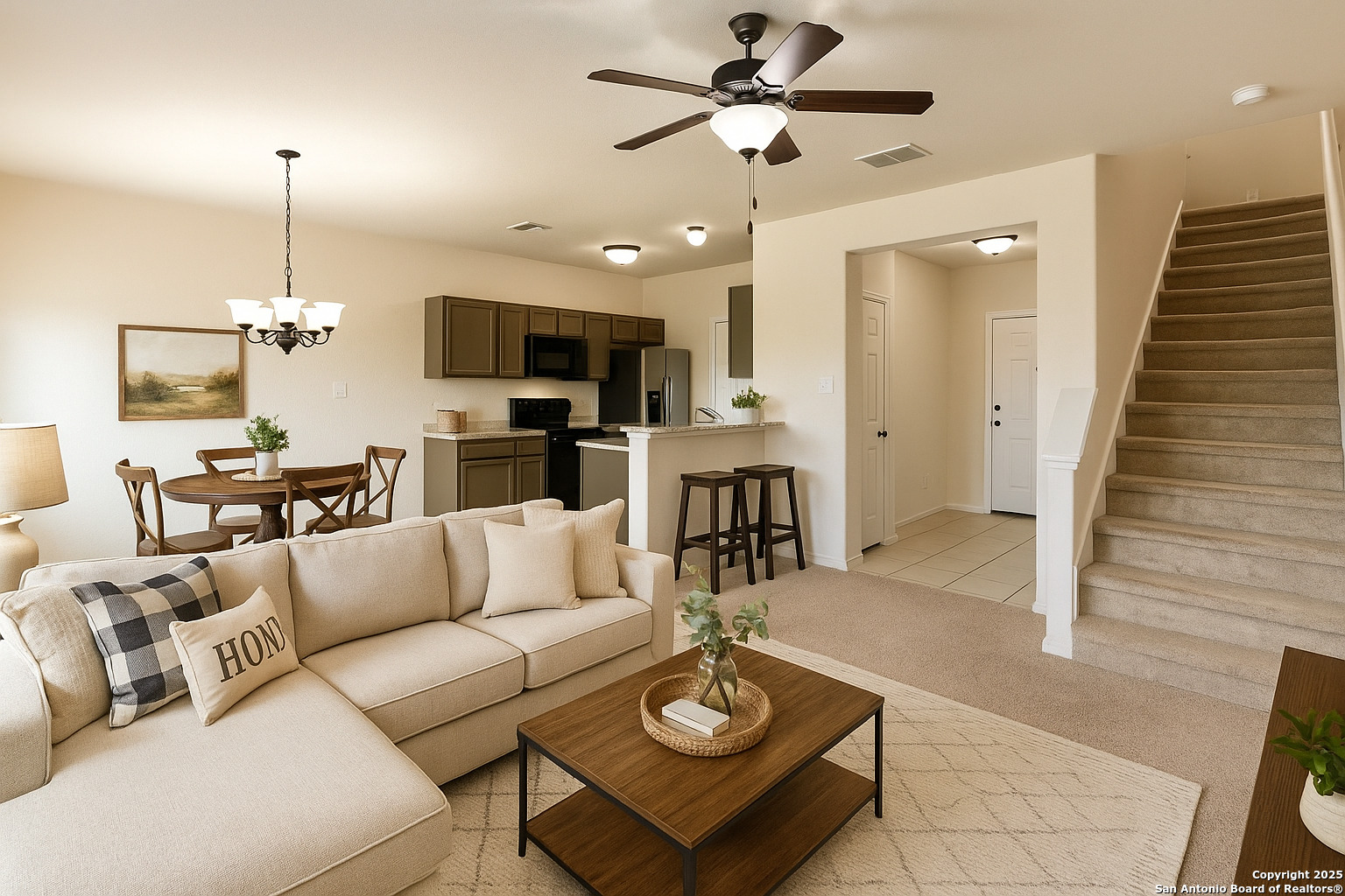Nice duplex featuring a light & bright open floor plan. Unit features 3 bedrooms (all upstairs), 2 full bathrooms, and 1/2 bath downstairs. Range, overhead microwave, & dishwasher included. Ceramic tile floors in entry, kitchen, and bathrooms, with carpet in living & bedrooms. Great location close to nearby Randolph Air Force Base, shopping, restaurants and minutes to Ft. Sam Houston.