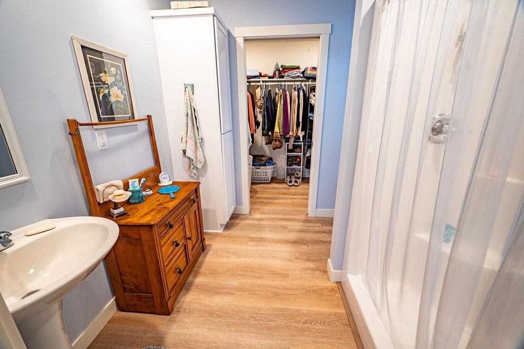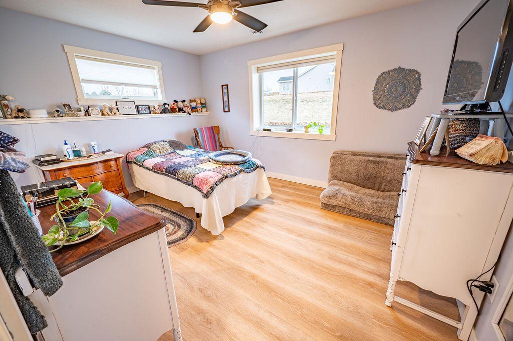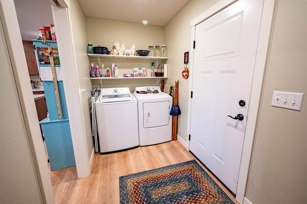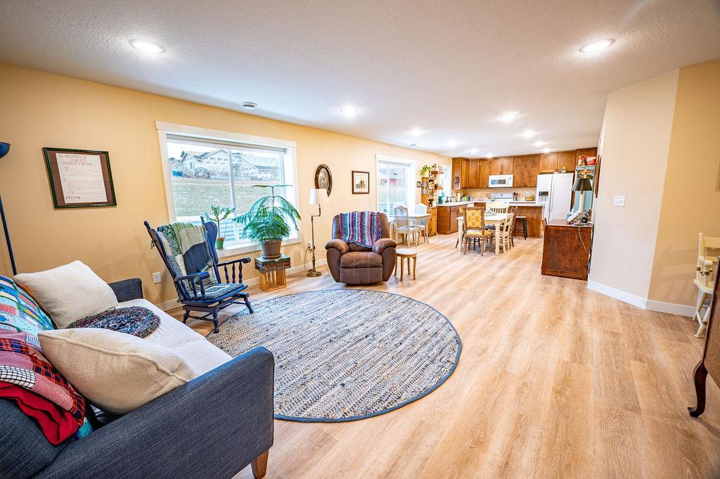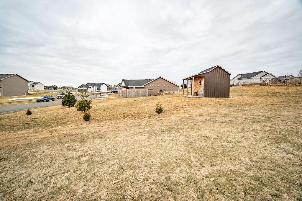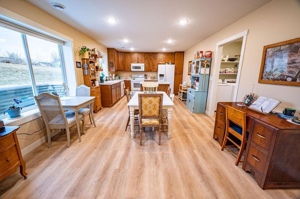 One Level Living Home with additional Corner Lot!!! Open Concept boasts Recess Lighting & Vinyl Flooring w/In-Floor Heat throughout!! Kitchen features Center Island & 42' Upper Cabinets. Master Bedroom offers large Walk-in Closet & 3/4 Bath! Finished Two Car Attached Garage has In-Floor Heat as well & Concrete Driveway. Yard Shed included w/covered sitting area for enjoying the fresh air, as well as a Fruit Garden with a delightful bounty of Strawberries, Rhubarb & Elderberries! This Home provides both Comfort & Functionality in a great location just outside of Town!!