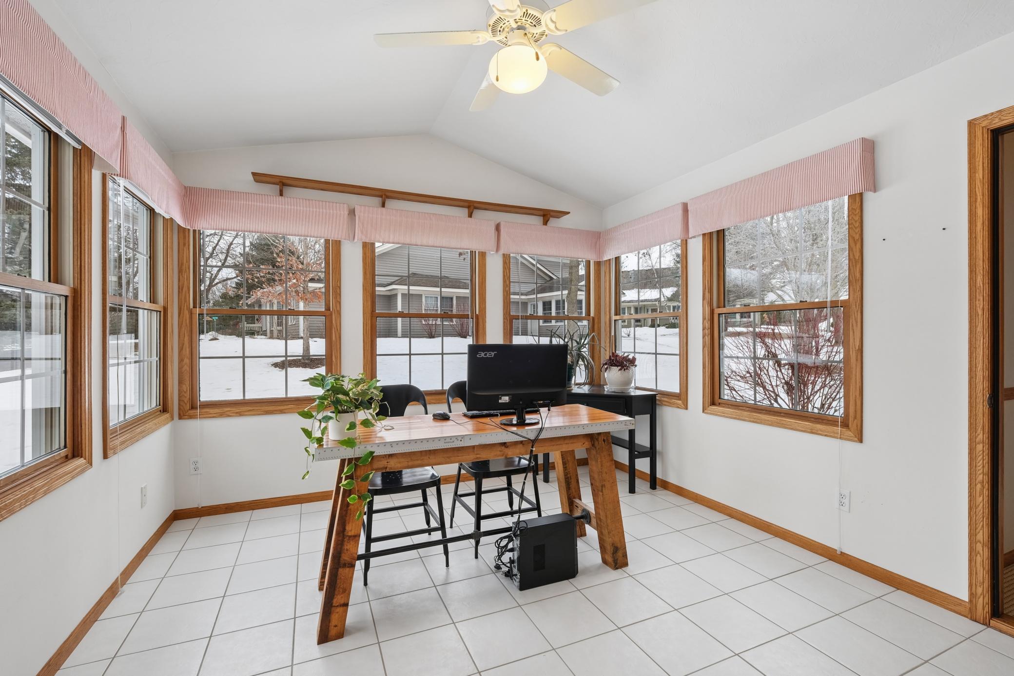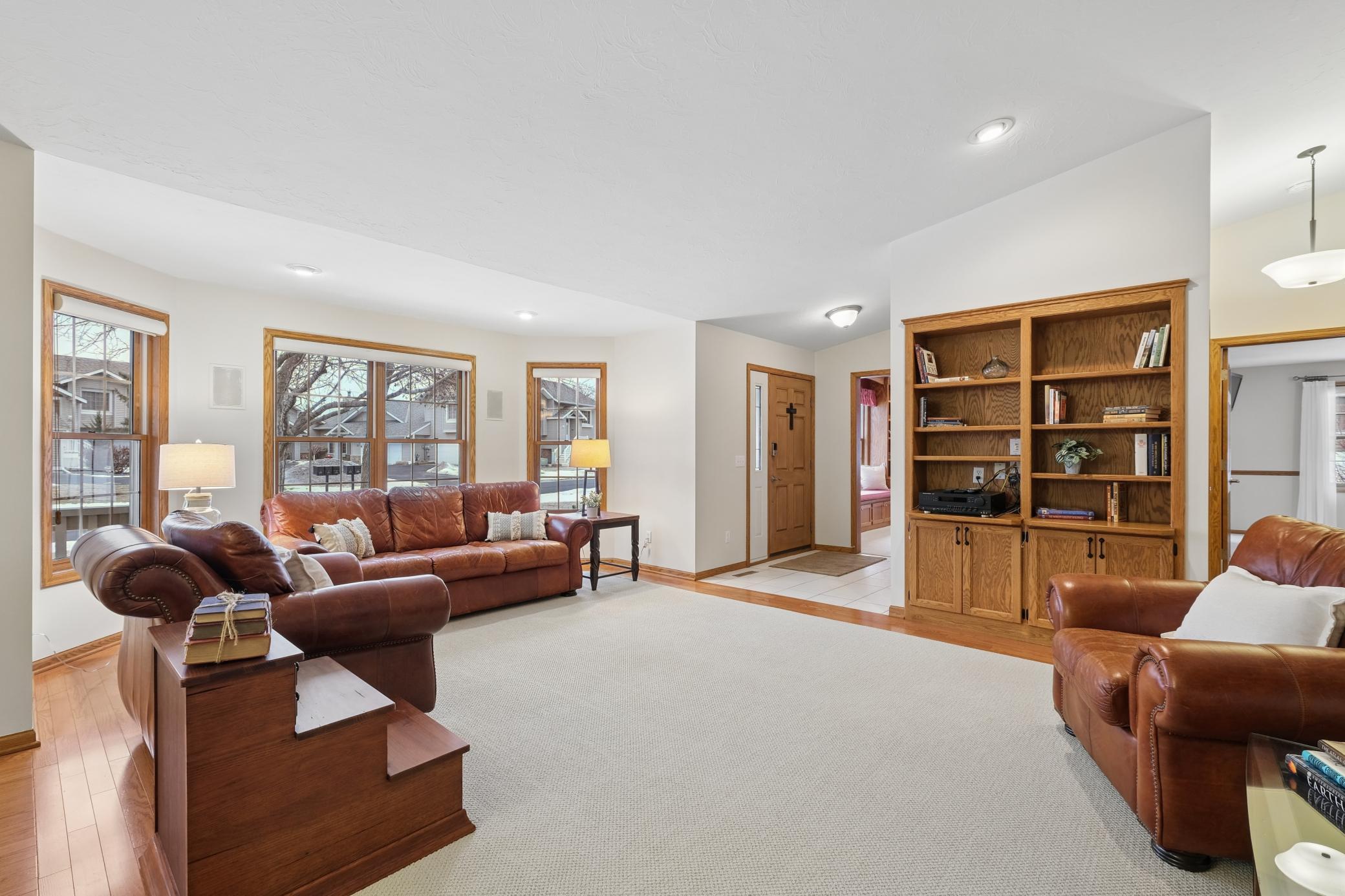 Offered for the first time by the family of the original owners, this one-level corner-unit townhome reflects decades of thoughtful care, pride of ownership, and meaningful memories made within its walls. Designed for both everyday comfort and easy gathering, the layout offers generous, light-filled spaces that flow effortlessly from room to room.The spacious primary suite provides a true retreat, complete with a recently updated bathroom thoughtfully adapted for wheelchair accessibility. An eat-in kitchen opens to a separate dining area, while the inviting living room and den offer flexible spaces for relaxing, hosting, or quiet routines. A bright sunroom extends the living space and invites you to enjoy views of mature trees and well-maintained gardens throughout the seasons.A rare heated three-car garage adds exceptional convenience and storage, while the private patio with wood fencing offers a peaceful outdoor escape. Set within a sought-after Eagan community known for its strong association, the neighborhood is currently undergoing a coordinated residing project, with this home slated for 20272028.Surrounded by established landscaping, large trees, and easy access to neighborhood amenities, this home is a beautiful blend of care, comfort, and simplicity, ready to welcome its next chapter.