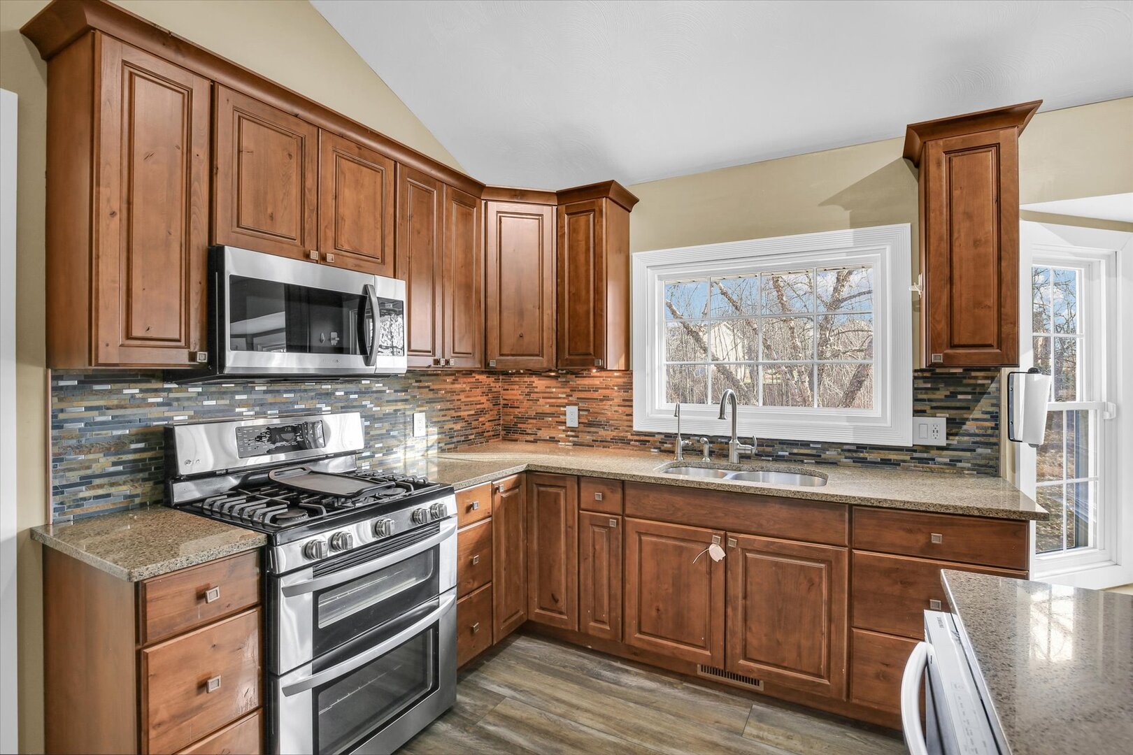 Beautiful 3100sf+ tri-level with 4 bedrooms, 2.5 bathrooms, and a finished basement. Equipped with stainless steel appliances, soft close drawers, and granite countertops. Master bedroom has vaulted ceilings, walk-in closet, and a large master bath with two sinks and a skylight. Family room has a gas fireplace. Attached garage with space for two cars plus additional storage space.