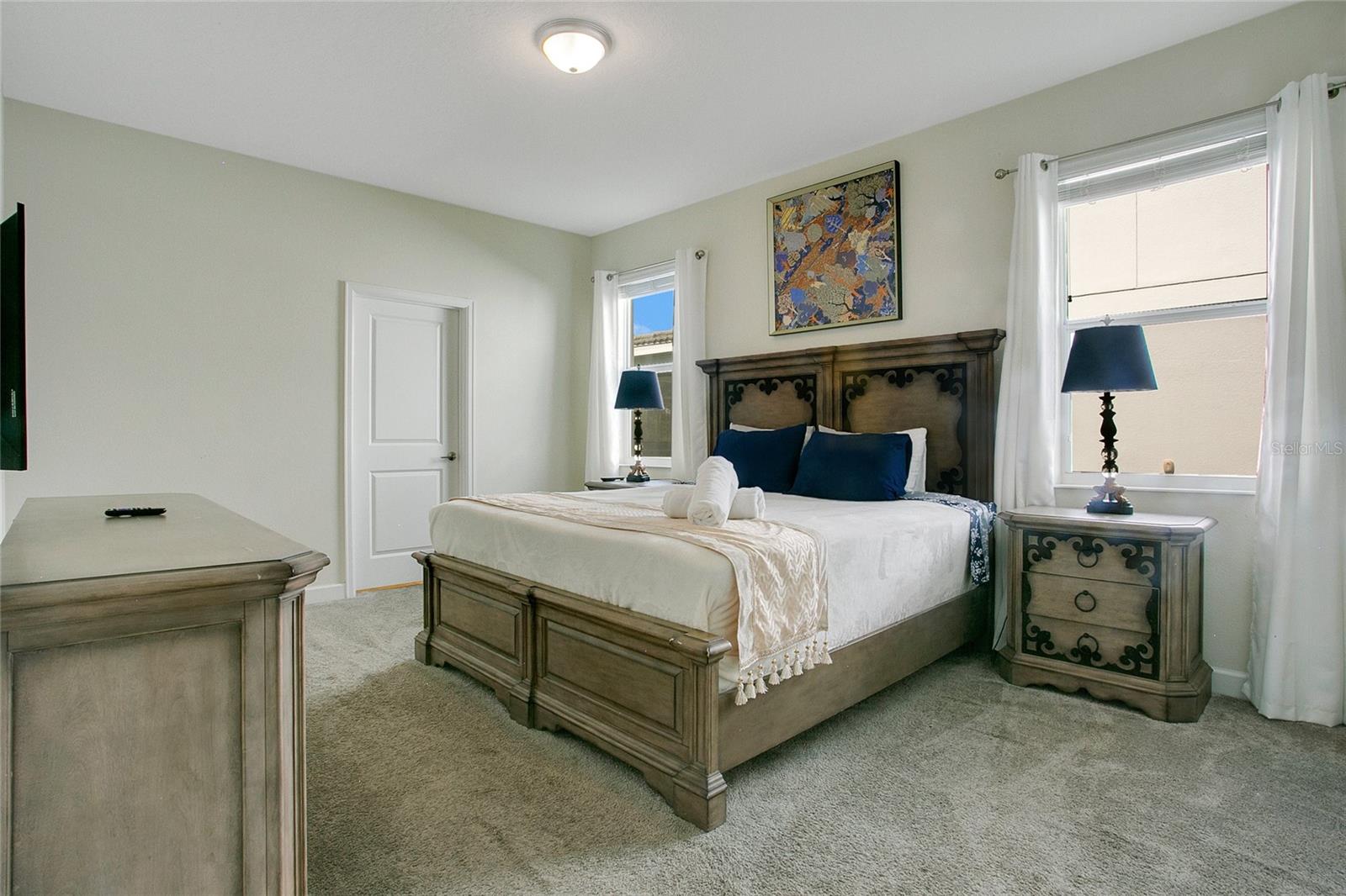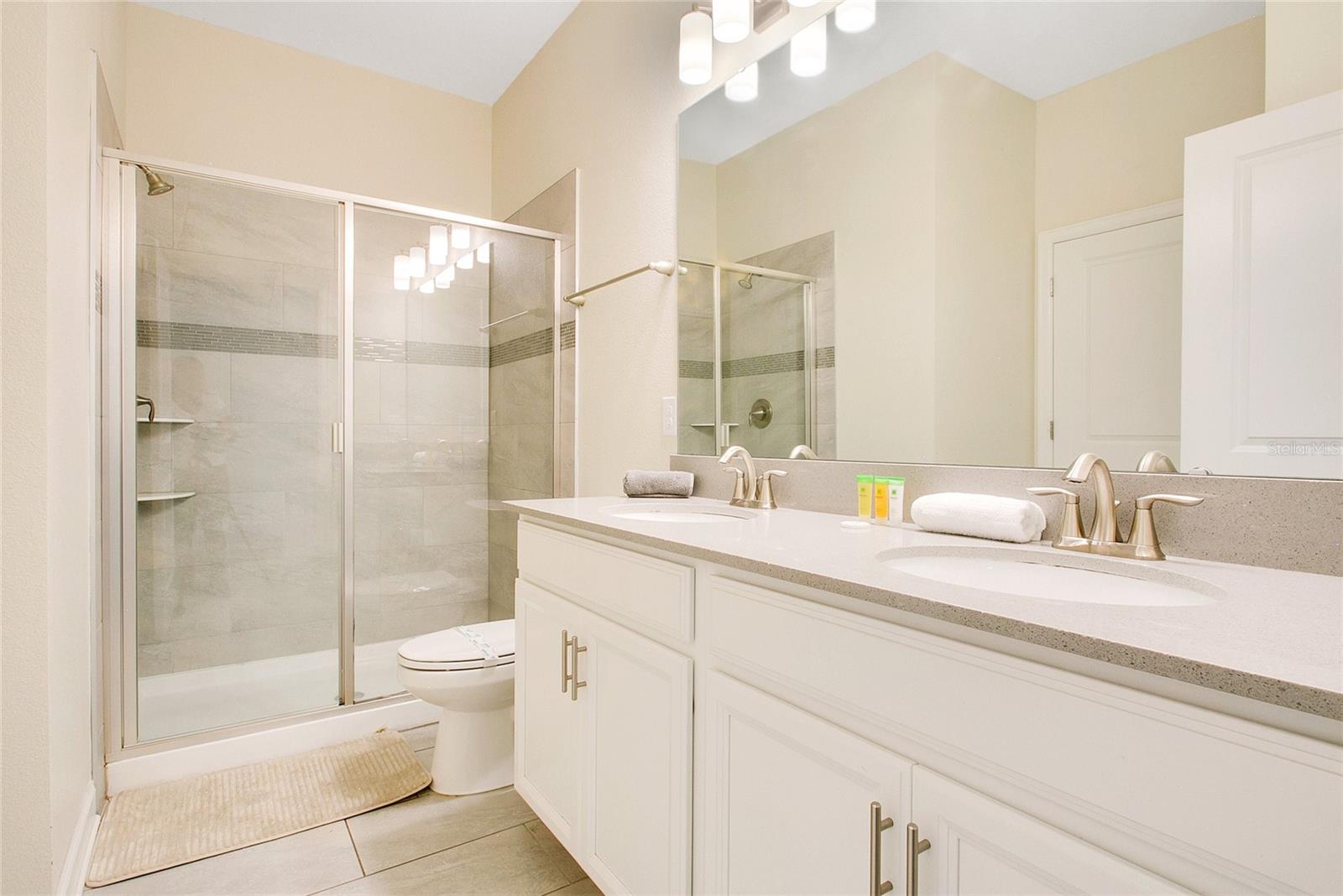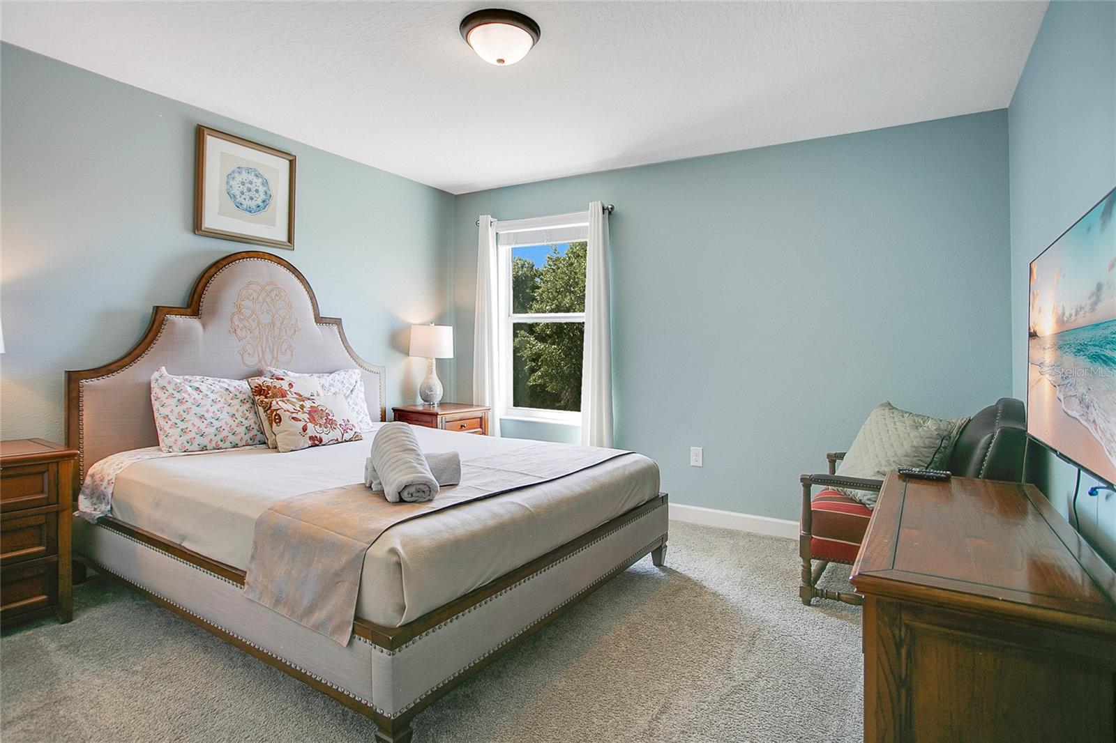GOLF VIEW! FULLY FURNISHED POOL HOME in 24-hour guarded gate, resort community - Champions Gate. Located at the end of a cul-de-sac with a golf view and no rear neighbors, this beautiful 8-bedroom, 5-bathroom home offers an exquisite living experience. The well-appointed kitchen opens to a spacious gathering room and dining area, with sliding doors leading to a large covered lanai. The lanai opens to a fully screened, heated pool and spa, perfect for relaxation and entertainment. The primary suite and an additional guest suite are conveniently located on the first floor for easy access. Upstairs, you'll find two sets of Jack-and-Jill bedrooms, two guest rooms and a bathroom, an oversized loft, and an elegant theater, making this home a perfect fit for the whole family. The garage has been beautifully converted into a large game room. This gated golf resort community features an over 10,000 sq ft clubhouse with a fitness center, theater, pool, cabanas, waterslide, lazy river, volleyball court, tennis courts, a play zone with lots of activities, a tiki bar, and much more! The HOA includes lawn maintenance, internet, cable, and daily valet trash service in this 24-hour gated community. Minutes away from shopping, dining, and world-renowned attractions! Rent includes pool maintenance, lawn care, internet, cable, and daily trash pickup.