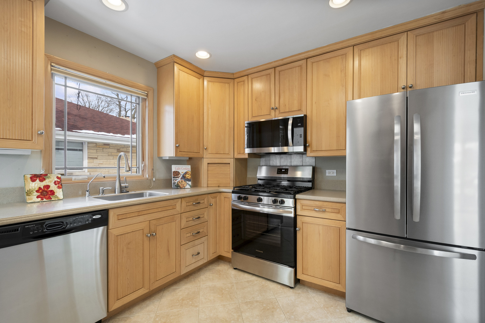 Beautifully maintained bi-level home in sought-after School Districts 70 & 219, serving Park View Elementary and Niles West High School. Long-time owners have taken exceptional care of this move-in-ready property. The updated kitchen features 42" maple cabinetry and newer appliances (2024). Major improvements include HVAC (2019), new sidewalks and stoops (2020), main sewer line replacement (2024), front fiberglass entry door (2020), blown-in insulation (2016), roof, gutters, and siding (2010-2011). Battery back up sump pump in crawl space (new pump 2026). Hardwood flooring lies beneath the carpeting. The finished lower level offers great additional living space with a dry bar, decorative sterno fireplace, built-in bookshelves, recessed lighting, and a mix of clay tile flooring and carpeting. Enjoy outdoor living with a patio and a 2.5-car detached garage featuring a convenient party door and paved alley access. Additional highlights include a Ring doorbell, exterior camera, Nest thermostat, chest freezer, beverage refrigerator, and a new dining room light fixture. Freshly painted throughout-just move right in!