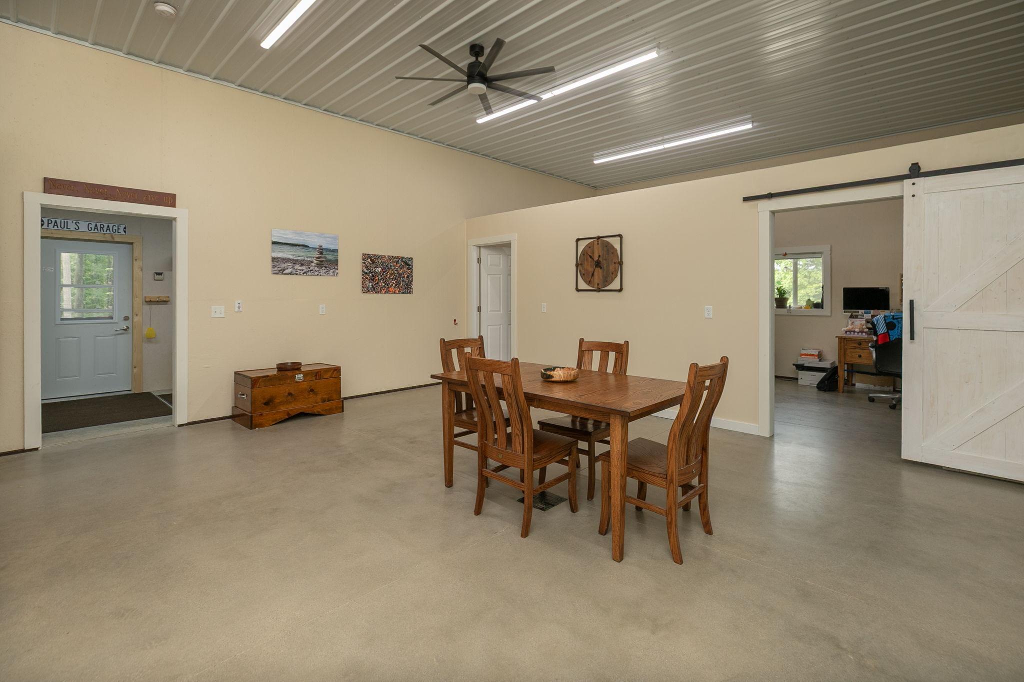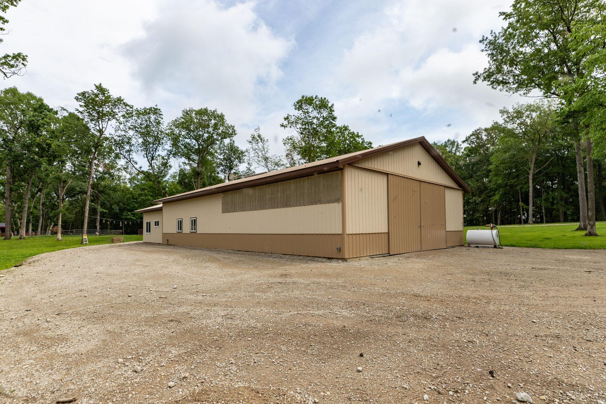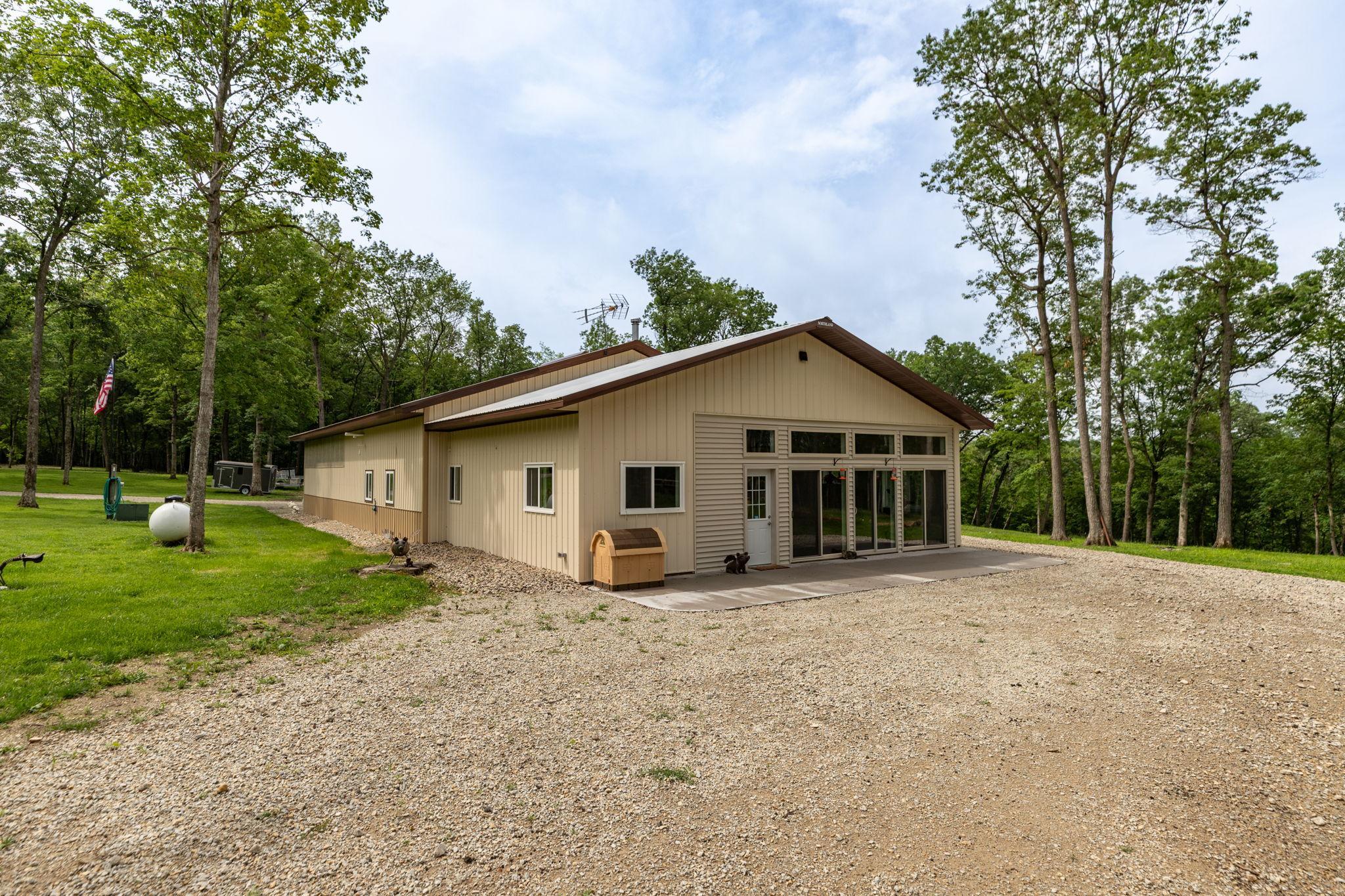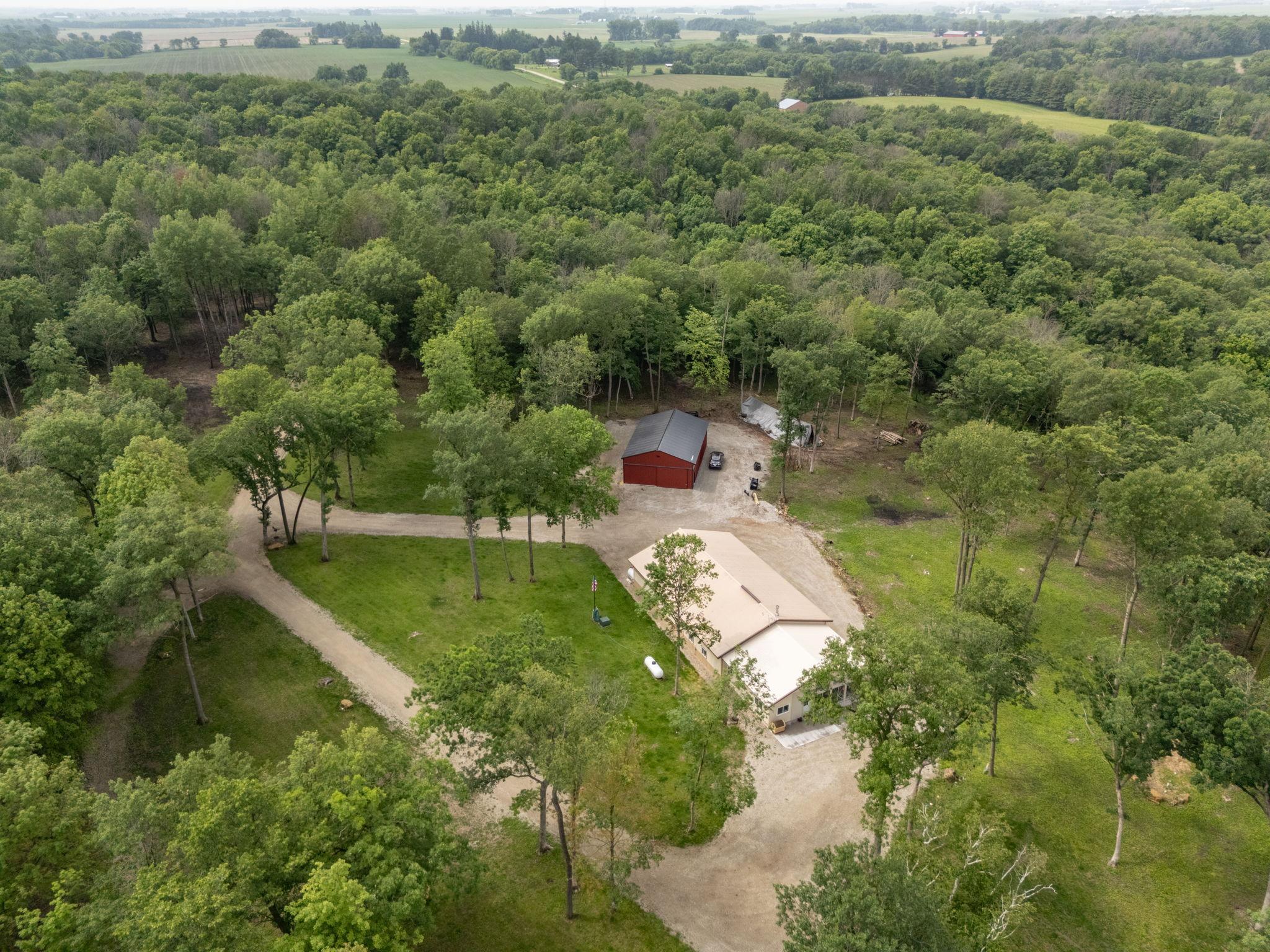 Nestled deep within 60 acres of pristine woodland just 15 minutes from Rochester, this home offers a rare fusion of comfort, utility, and untouched natural beauty. This 1,908 sq ft Shouse-style Barndominium is ideal for those who crave peace, privacy, and possibilities. With rich Hickory cabinets, sleek stainless steel appliances, and cozy in-floor heat throughout, the home exudes rustic charm with modern conveniences.Currently configured as a spacious 1-bedroom residence, this flexible floor plan allows easy conversion to 3 bedrooms by adding dividing walls. Step outside, and youll find the Root River flowing gently through your acreage perfect for fishing, kayaking, or simply enjoying the tranquil sounds of nature.Additional highlights include an extra sewer and water hookup for a camper or future second dwelling, a large outbuilding, gravel drives, and a location at the end of a private road. Whether you're an outdoor enthusiast, a hunter, or a remote worker craving serenity, this property is an unparalleled opportunity to live surrounded by natural beauty.