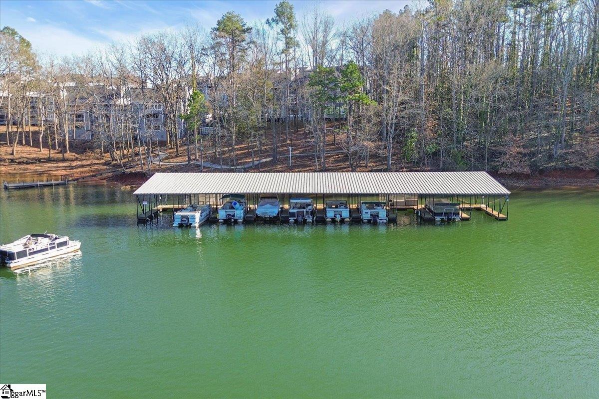 Experience maintenance-free condo living on beautiful Lake Hartwell! This desirable lower-level unit offers exceptional value with a wealth of amenities, including a clubhouse with an exercise room, tennis courts, a community pool, and both a boat dock and fishing dock providing direct access to the lake. Water and trash services are also included in the affordable $346/month HOA fee. Inside, the open-concept floor plan features laminate flooring throughout and an oversized combination living and dining areaperfect for everyday comfort or entertaining. The fully equipped kitchen comes complete with an electric range/oven, dishwasher, and refrigerator (all conveying as-is), plus ample cabinetry and counter space. A convenient pass-through opening keeps the cook connected with family and guests. This condo offers two generously sized bedrooms and two full baths, each recently updated with new sink vanities. Both bathrooms include a tub/shower combo and toilet. A dedicated laundry area is also included, with washer and dryer conveying as-is. Enjoy outdoor living on the spacious covered balcony, accessible from both the primary bedroom and the main living area, and take advantage of the attached storage closet for added convenience. Additional LVP flooring is located in the closet for future use. Located just minutes from the interstate, shopping, and dining, this condo is perfectly situated for easy living. With a great price point, its an ideal opportunity to personalize updates to your taste and make it truly your own. Don't miss your chance to call this Lake Hartwell condo home!