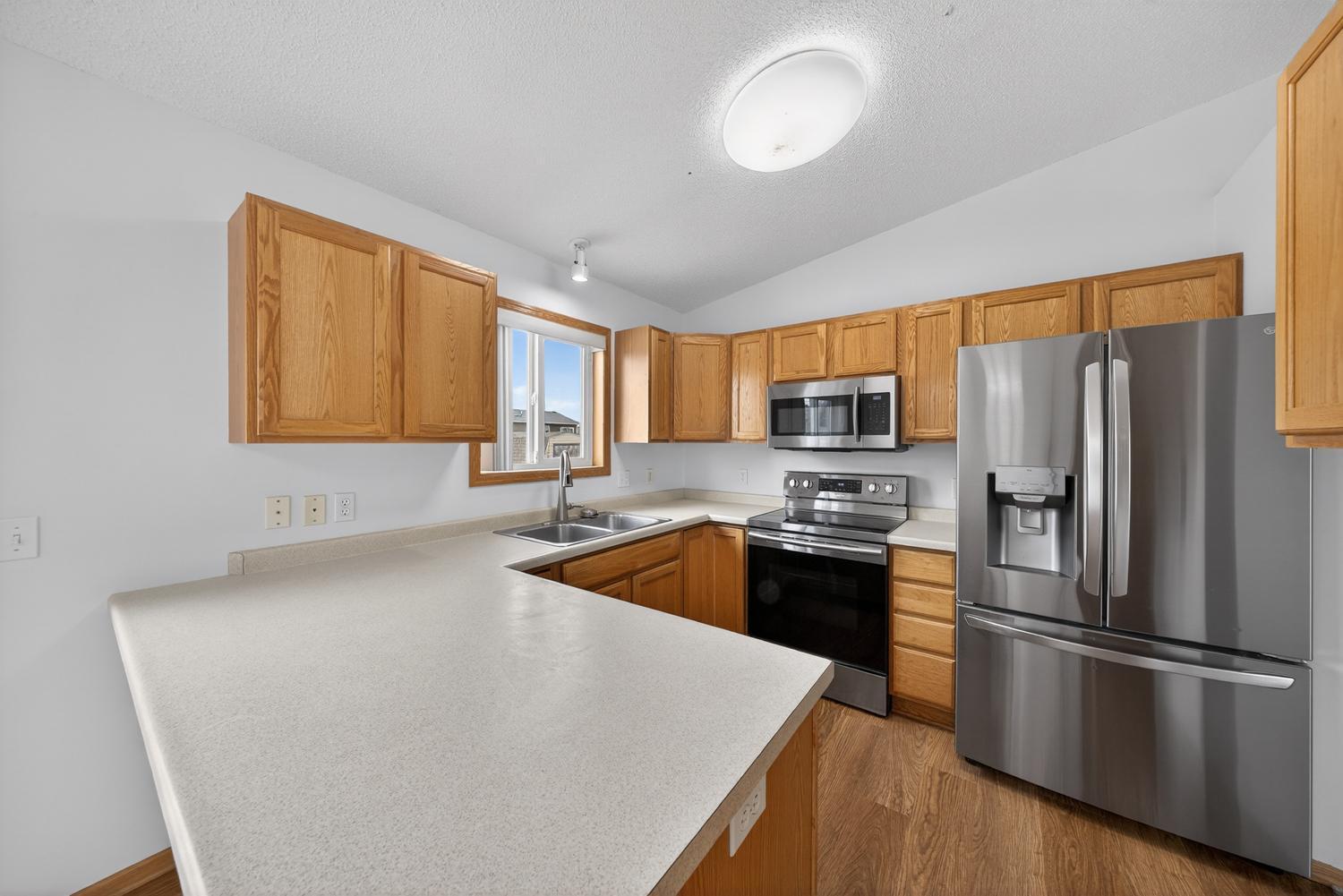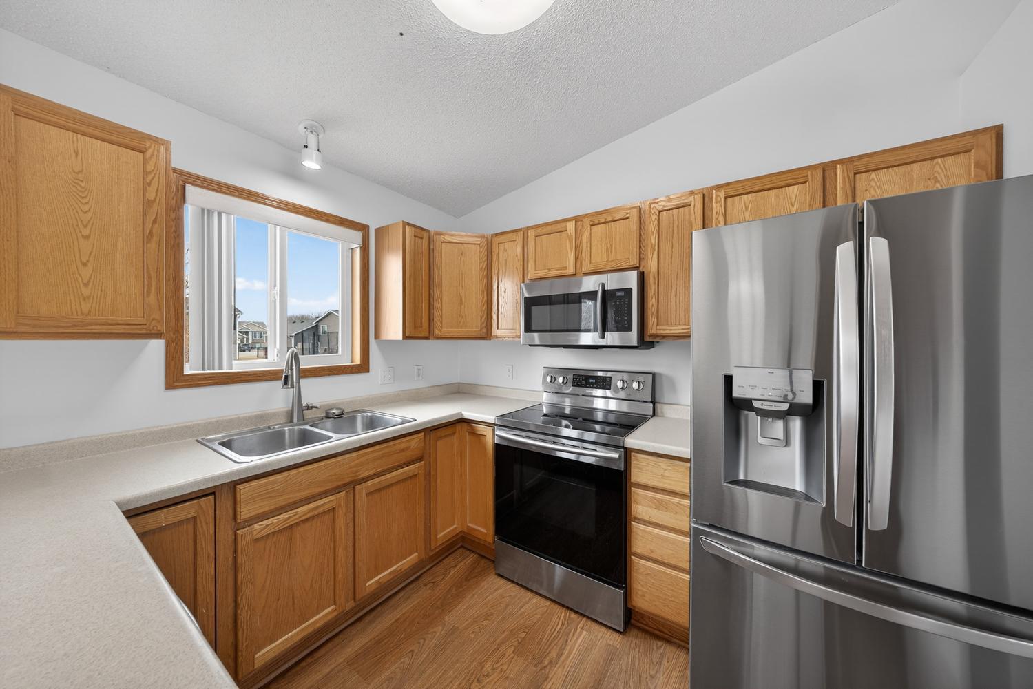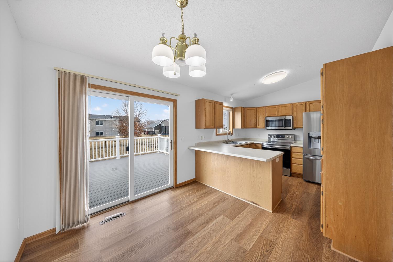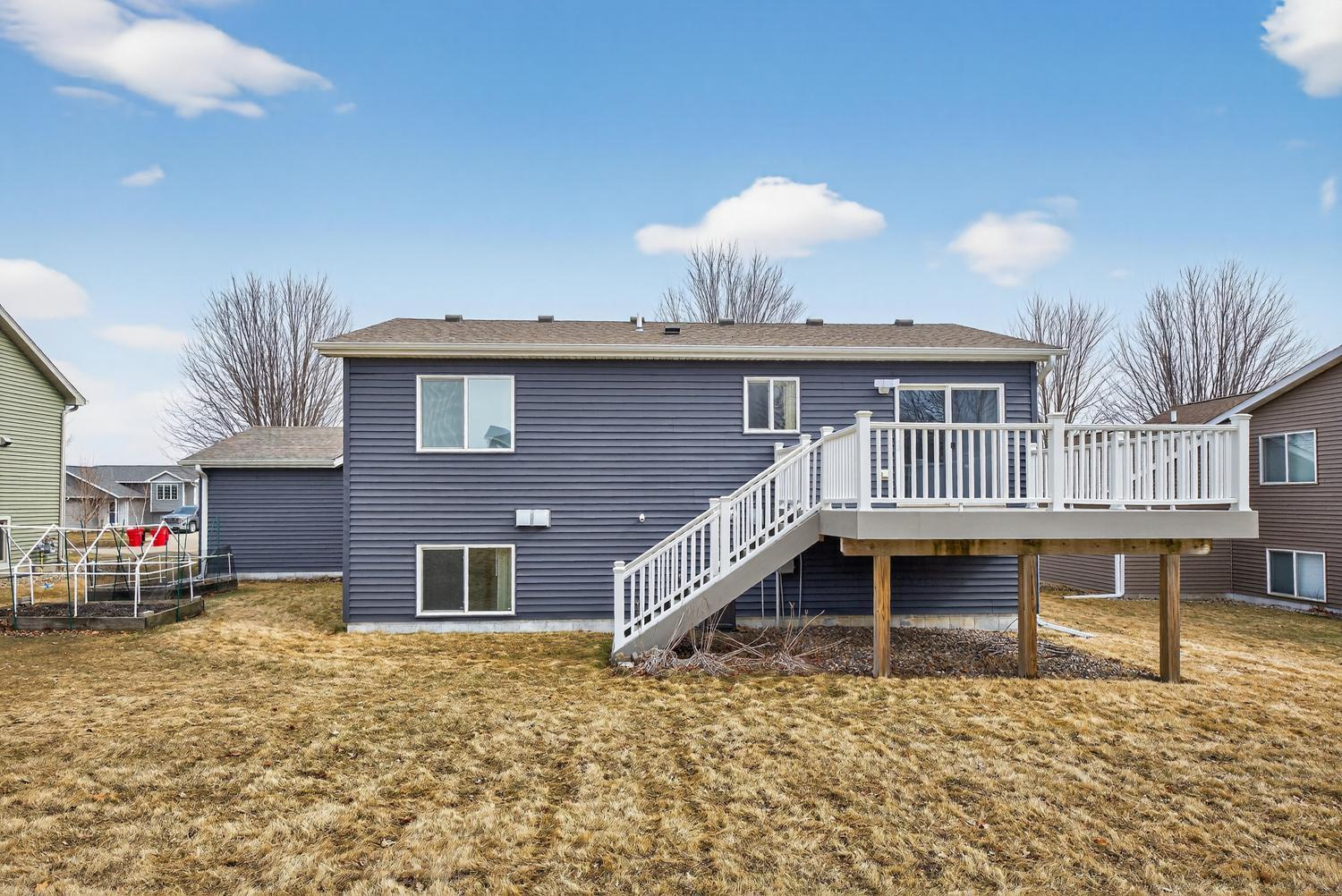 This beautifully updated home features 4 bedrooms, 2 full baths, and a spacious 3 car garage - perfect for families and hobbyists alike. The kitchen boasts stainless steel appliances and flows out to a maintenance-free deck, ideal for entertaining or relaxing outdoors. Inside, you'll find brand-new flooring and fresh paint throughout the entire house, giving it a fresh, modern feel. The backyard includes a shed on a concrete pad for extra storage or workshop space. Recent upgrades also include newer vinyl siding and a newer roof, providing peace of mind and low maintenance. Located in the friendly, small town of Kasson, Minnesota, this home combines comfort, style, and convenience.