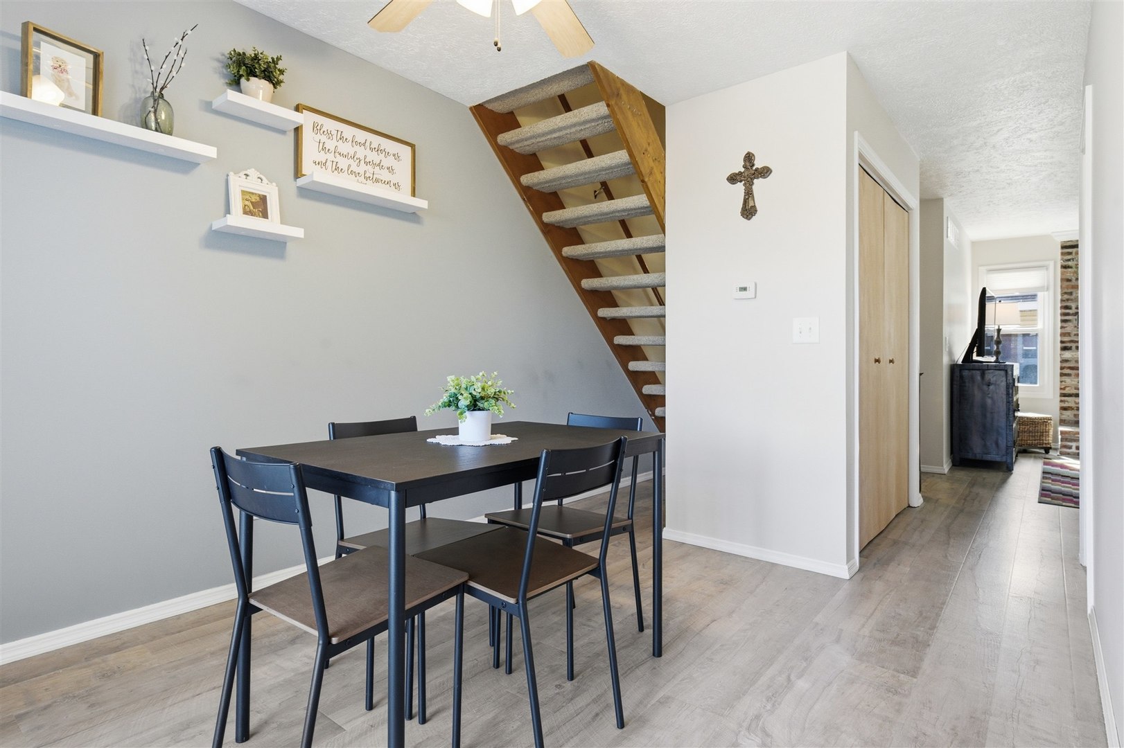 Welcome to this adorable first floor condo with 2 bedrooms upstairs and 1.5 bathrooms, the laundry room is just off the half bathroom on the first floor. This home is IMMACULATE and shows pride of ownership, 2022 all kitchen cabinets were refaced, new electric stove, and a new dishwasher were added in 2022. The kitchen also has beautiful Samsung Staron hard surface kitchen countertops, with newer carpet upstairs and luxury laminate flooring on the main level you are already to move in! Enjoy the back deck with a view of the water and green space, this condo is near constitution trail, ISU and close to uptown Normal. This unit has an assigned carport right outside the front door. HOA is $175 per month plus $88.66 for an association assessment through 2029.