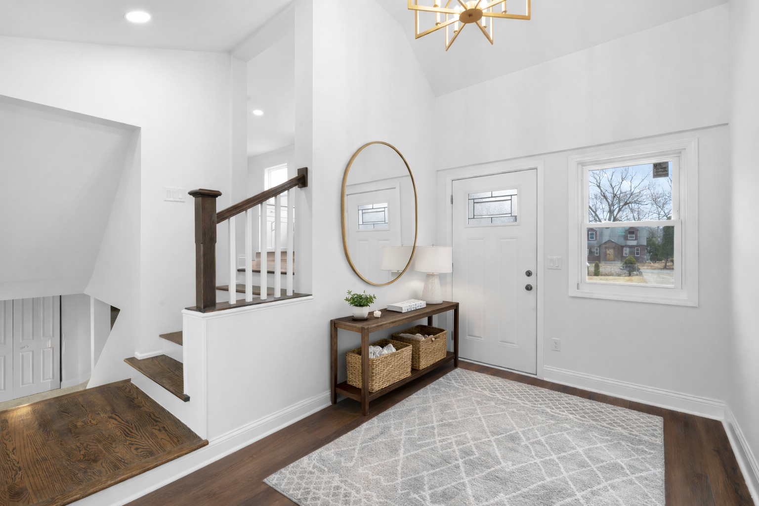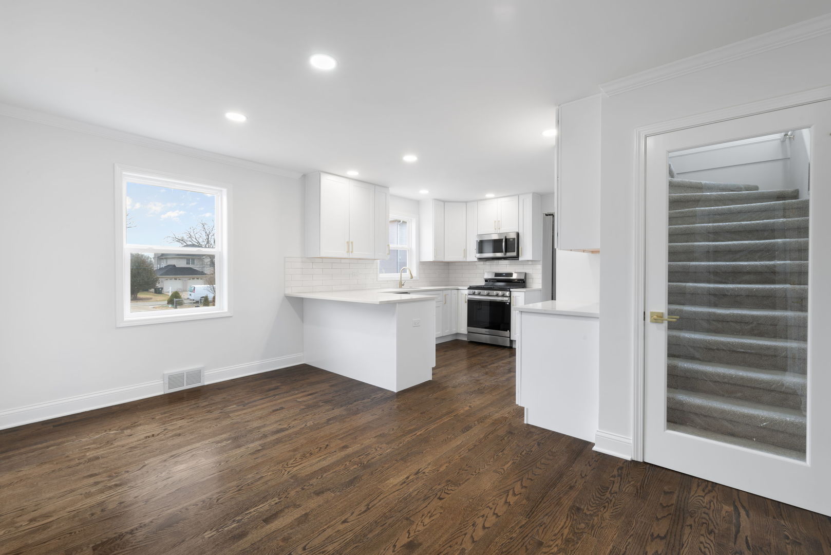 Welcome to the nicely renovated 4-bedroom, 2-bathroom home you've been waiting for-thoughtfully redesigned with premium materials and modern finishes throughout. Step into the spacious foyer with soaring ceilings that lead to an open-concept main floor featuring gleaming hardwoods, a bright living room with a contemporary electric fireplace, and a stunning kitchen with all-new cabinetry, quartz countertops, and stainless steel appliances. The kitchen flows seamlessly into the dining area-ideal for entertaining. Two bedrooms and a full bath are located on the main floor, along with access to a finished attic space perfect for a 5th bedroom, home office, gym, or playroom. The lower level offers incredible versatility, featuring a private primary suite, a second bedroom, a full bathroom, and a large family room-perfect for multi-generational living or added privacy. Enjoy peace of mind with all major updates completed:roof, HVAC, electric, plumbing, appliances, flooring, bathrooms, kitchen-even garage flooring. Nothing left to do but move in! Don't miss this turn-key gem-schedule your private showing today!.
