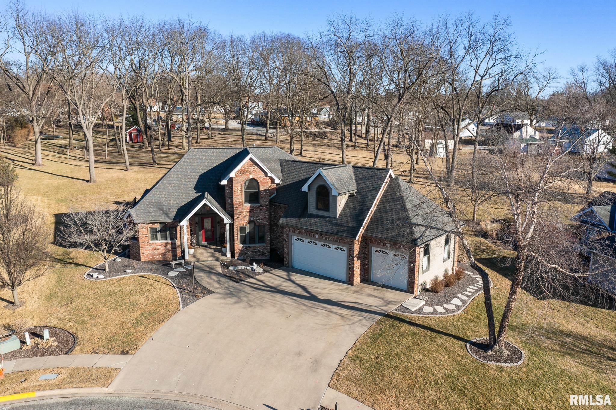 Welcome to this exceptional custom-built two-story home in the highly sought-after Dutchmans Landing Subdivision. Offering over 4,000 finished square feet of living space, features 5 spacious bedrooms, 3 full bathrooms, and 2 half bathrooms, all situated on a beautifully landscaped .7 ac wooded lot on a quite cul-de-sac. Enjoy your own private backyard retreat featuring a 20 x 40 in-ground saltwater pool with in-pool lighting, diving board, remote pool cover, solar remote outdoor lighting, large patio with gas line for grilling. The 60 x 50 fenced area provides added privacy. Inside, you'll find an inviting two story foyer, formal dining room, main-floor primary suite, laundry room, open concept living room with gas fireplace and kitchen. The kitchen features a large island, solid surface countertops, stylish backsplash, and custom Amish-built cabinetry. The primary suite offers private pool access, a walk-in closet, built-ins, and a spacious bath. Upstairs includes two generous bedrooms plus a private guest suite with its own entrance, full bath, vaulted ceiling and walk-in closet. The finished basement adds a large family room, second kitchen, half bath, fifth bedroom and ample storage. The three-car garage with tall ceilings and built-in storage completes the home. (car lift does not stay.) Many updates throughout property. Located within walking distance to Eureka Lake and trails, and less than 25 miles from Peoria or Bloomington. Schedule your private showing today!